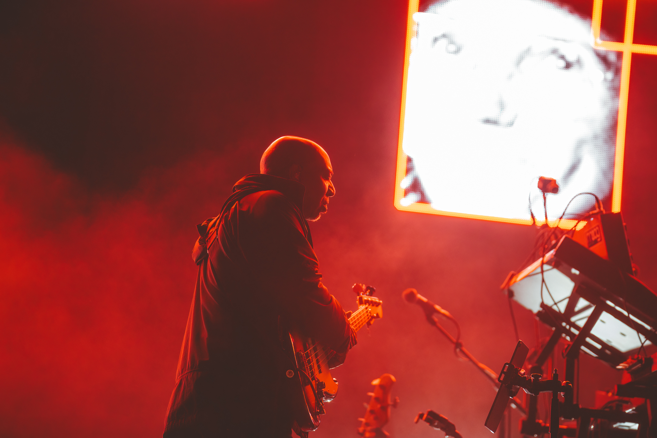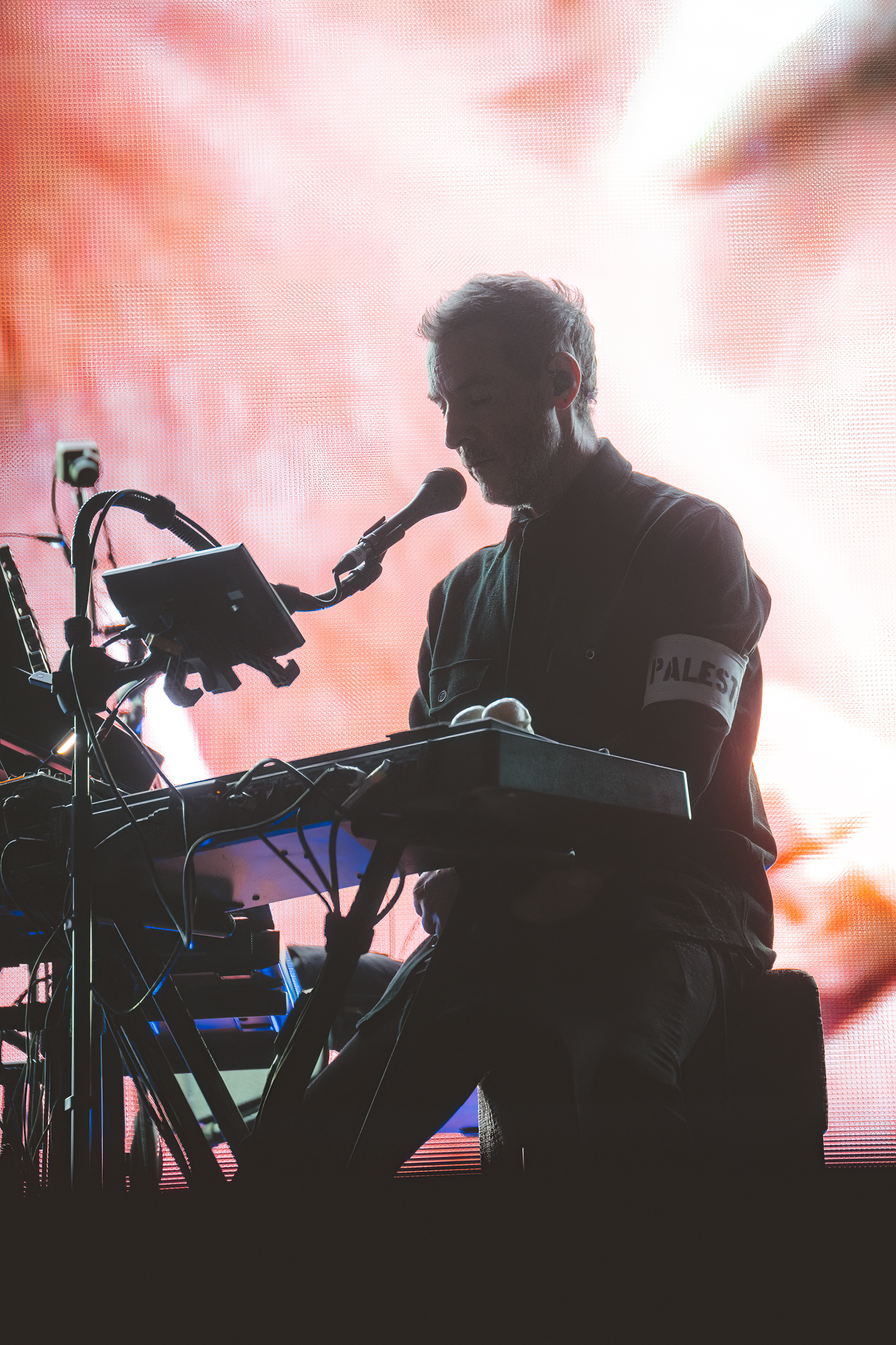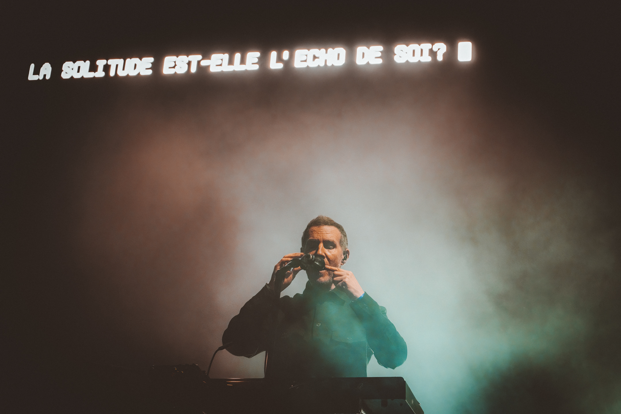 Mais comment ne pas faire de lien entre le concert de Massive Attack et les résultats de la soirée électorale découverts quelques heures plus tôt ? On sait le groupe très engagé politiquement – c’est un doux euphémisme – et 3D avait tweeté le matin même en français sur le compte du groupe un message de soutien à la France et de refus de l’extrême-droite. Il dira ainsi pendant le concert leur joie d’être là pour une soirée électorale avec un tel résultat.