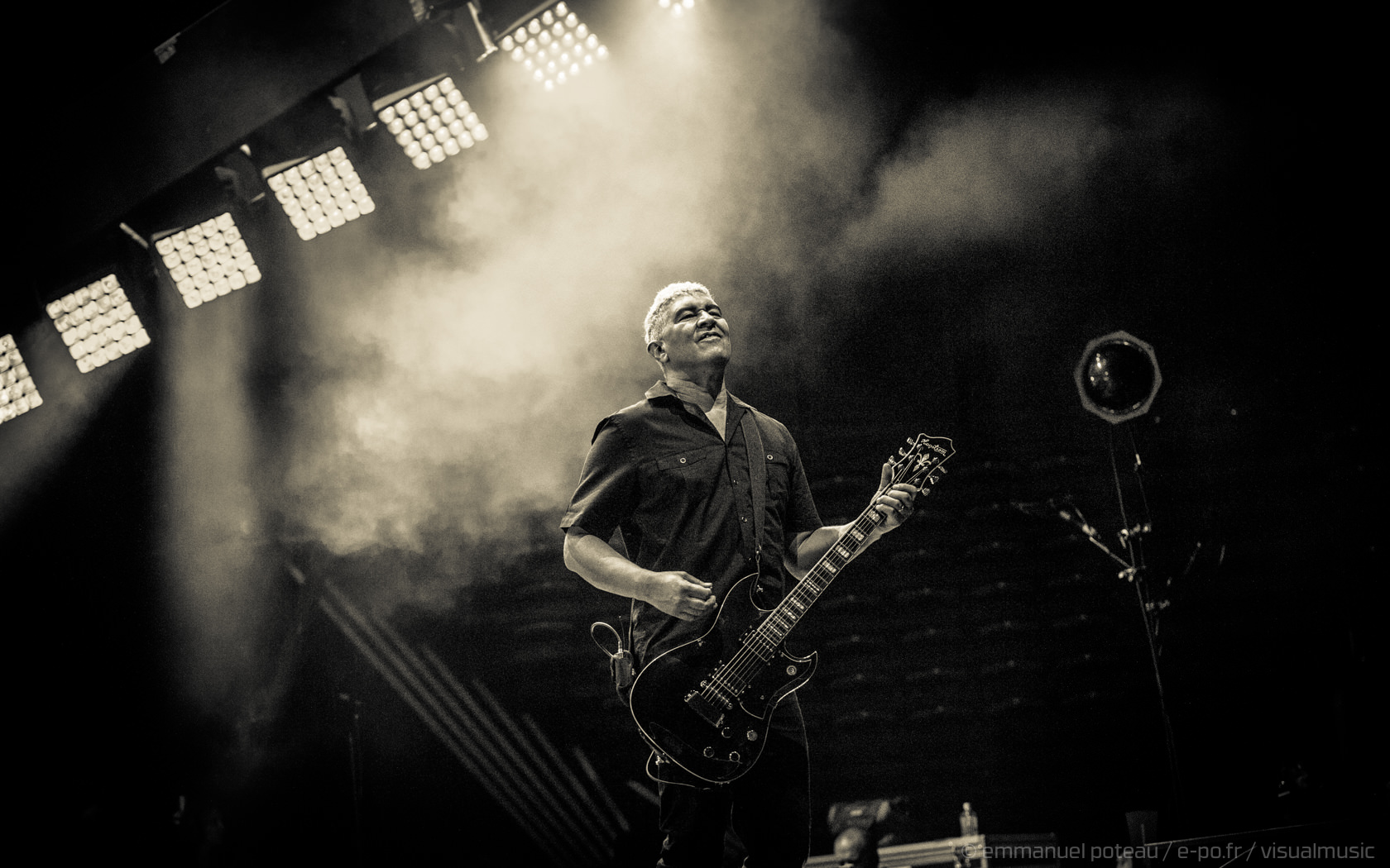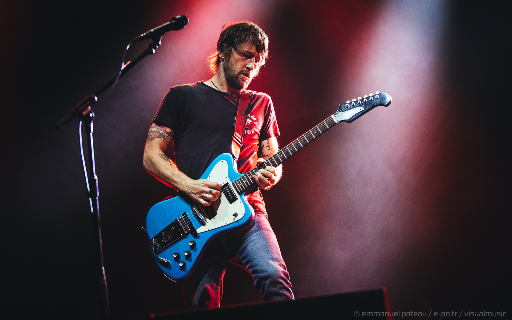 « It took us a while to come back, but we’ve been coming to this city for 22 years. I’ve been coming here since I was fuckin’ 18 years old. Actually I played the Rose Club when I was 18 years old. We played so many places in this city. We played the fuckin’ Tower Records down the street a long time ago, you weren’t there. We played that Rock en Seine festival, that was alright… One place that we’ve played a lot, I’m gonna sing this song right now tonight for that place. Cause some of our best shows were at the Bataclan. So tonight I’m gonna sing this last one for a couple of friends that came out to the show tonight. »