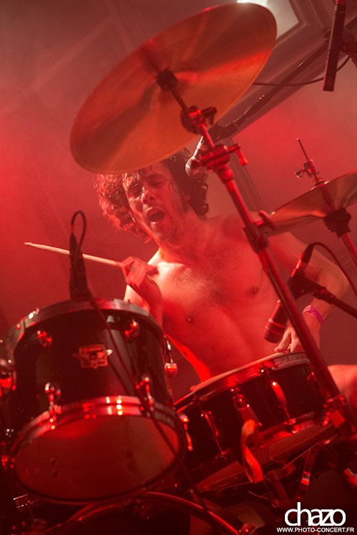 J’ai malheureusement eu seulement 20 minutes pour apprécier en direct l’énergie de Sofy Major, aucunement diminuée par rapport aux albums. J’ai entendu « planplan » comme adjectif après leur passage, je ne partage pas. Les français assurent avec détermination leurs titres sur la petite scène du Saint des Seins. C’est honnête et puissant, comme dans mes souvenirs. Ils ont apparemment fait face au syndrome des premiers rangs déserts en début de concert : en fin de set, le public est donc chaleureusement remercié pour s’être avancé. Tout ça intervient beaucoup trop tôt à mon goût et c’est déçu que je vois le groupe partir si vite.