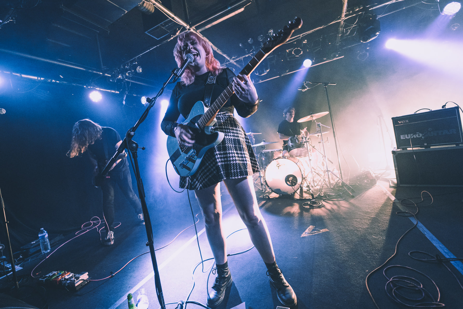 Je ne m’attendais pas néanmoins à un live de ce type. Les irlandais ne se ménagent pas même s’il est vrai qu’il est toujours plus difficile d’ouvrir sur une affiche qui reste, avant tout, une affiche de groupes en devenir ! Alors forcément, quand Karla Chubb, chanteuse du groupe, annonce, taquine et joueuse, que Paris était plus énergique que nous, ça pique au vif notre fierté provinciale ! Pas de mauvais esprit ici, juste l’envie de chauffer comme il se doit un public alors encore timide.