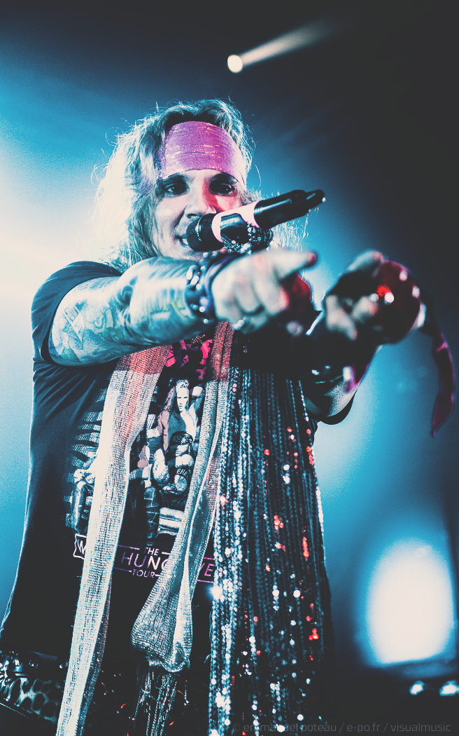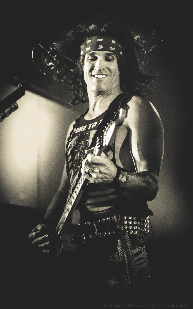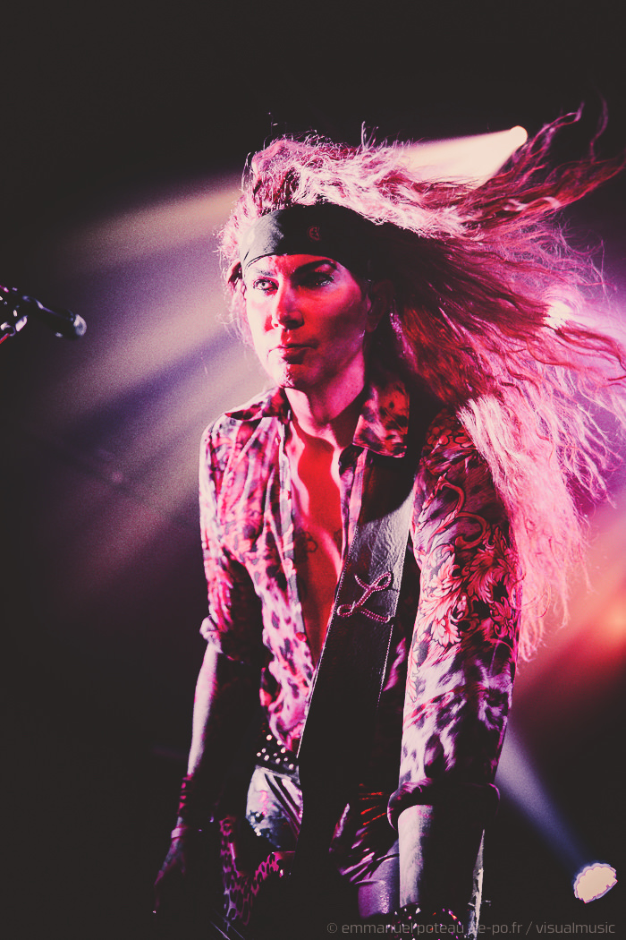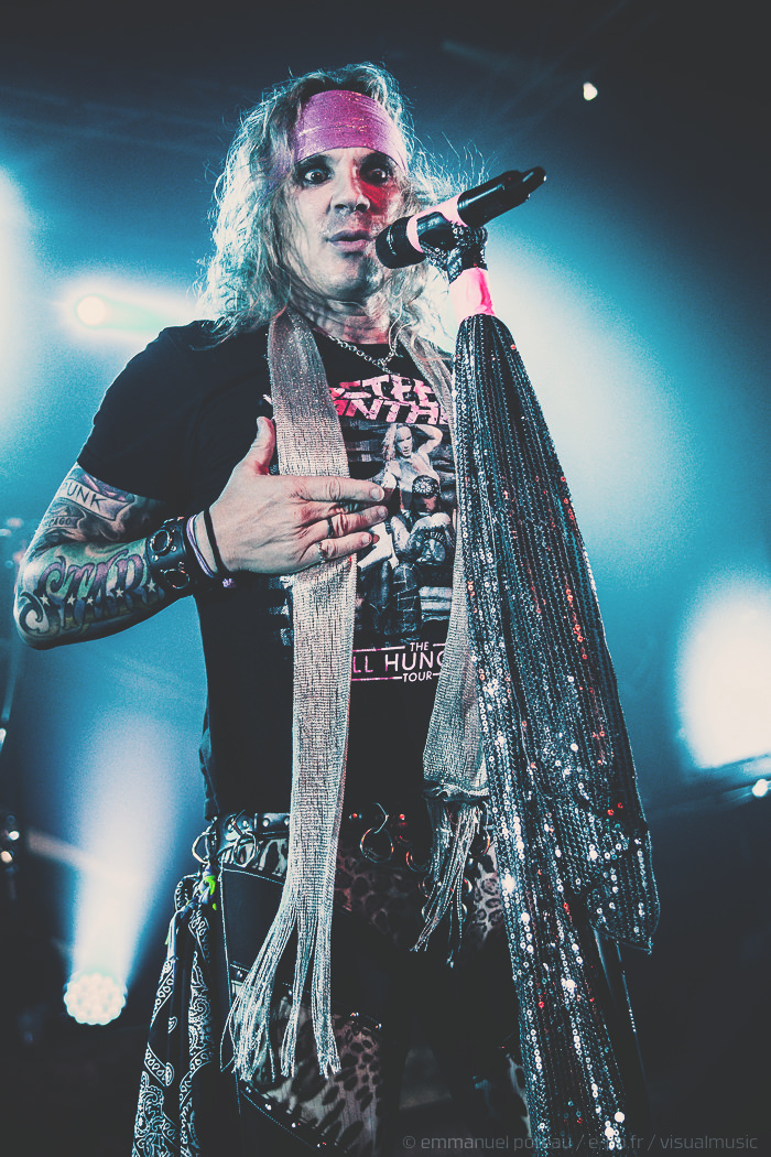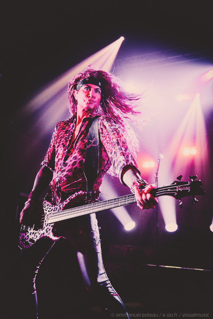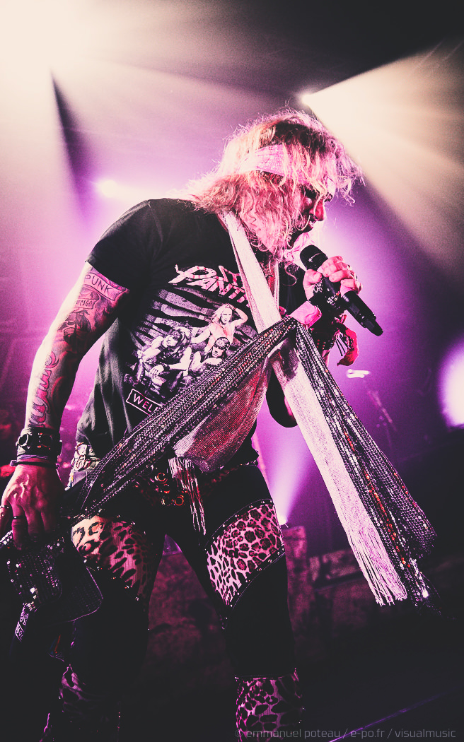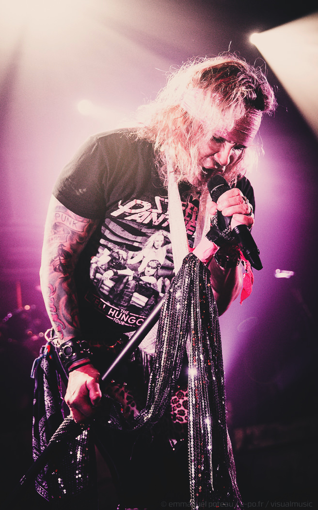 Les rigolades entre les musiciens durant les morceaux ne semblent pas feintes, et même si on se demande parfois qui assure les chœurs (une bande peut-être), le reste du concert se fait sans accroc et une énergie infaillible. Là où je reprocherai à Inglorious de nous faire revivre un hard rock éculé à base de vocalises, Steel Panther nous régale de ses tubes millimétrés aux refrains accrocheurs (coucou « Party Like Tomorrow Is The End Of The World ») sans le côté pénible de l’époque rejouée. En total délire, le groupe se permet même une sorte d’entracte laissant la vedette à Stachel, celui-ci enchainant les reprises à la guitare et… à la batterie. Se transformant en homme orchestre, celui-ci chauffe alors le public en reprenant de nombreux tubes sur ce medley mêlant Iron Maiden, Metallica ou encore Black Sabbath.