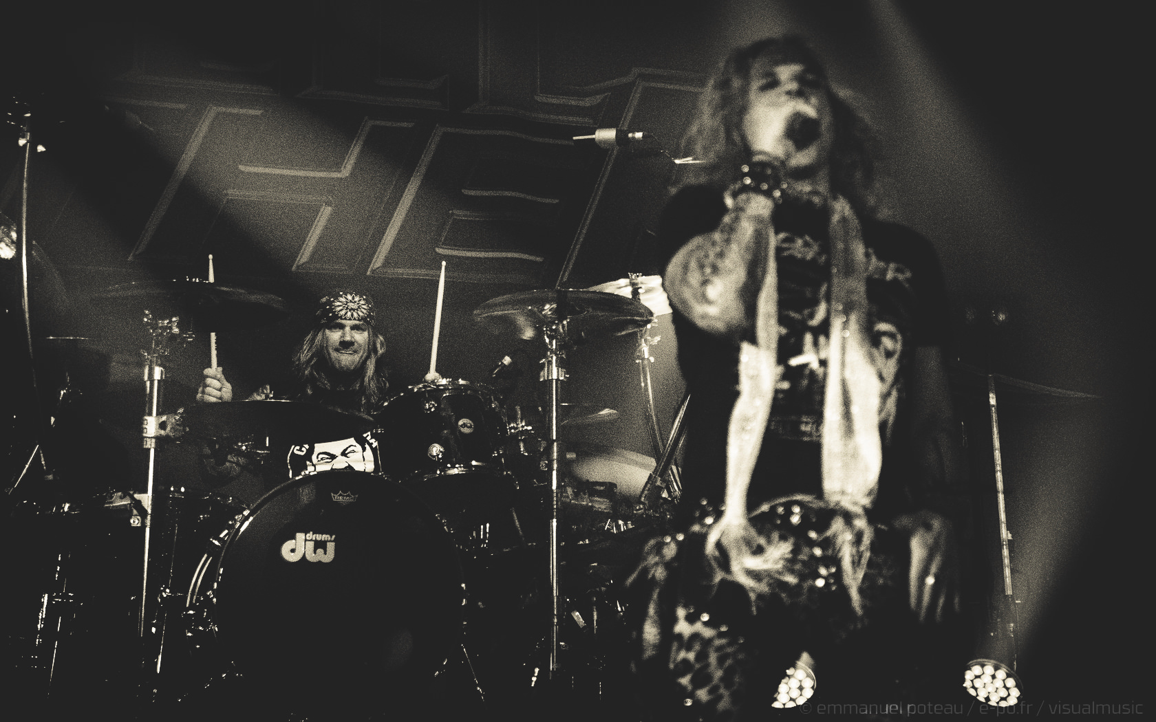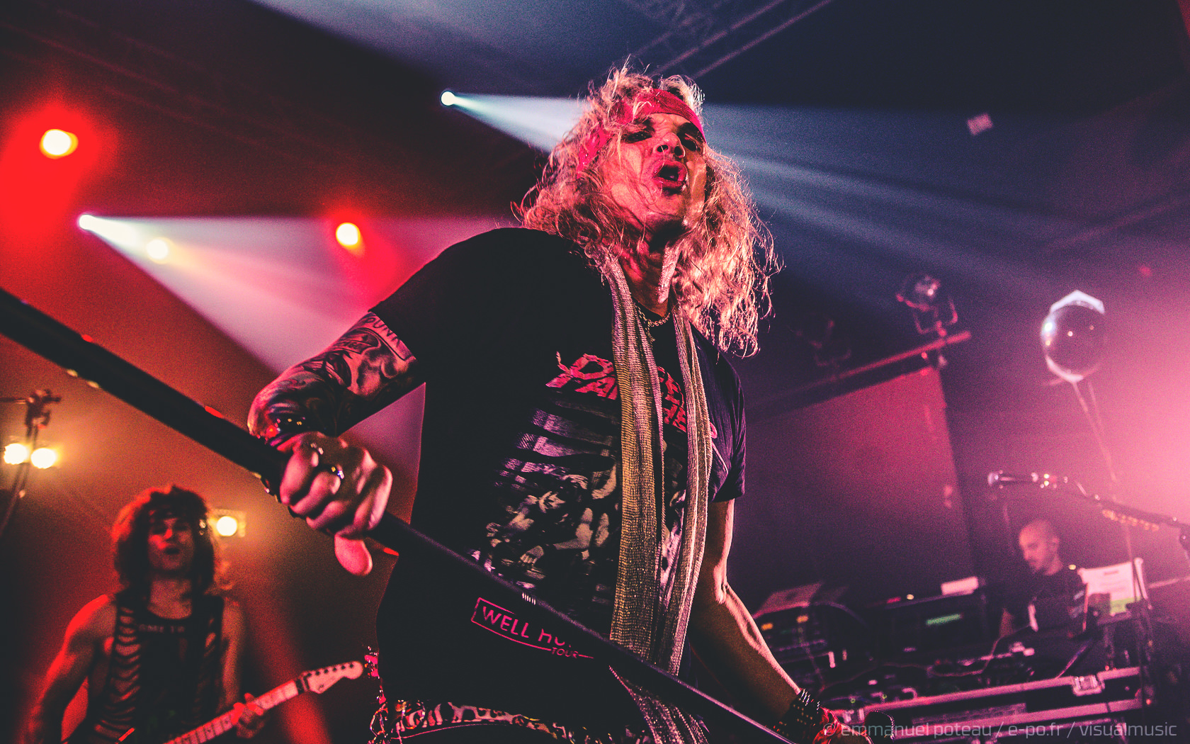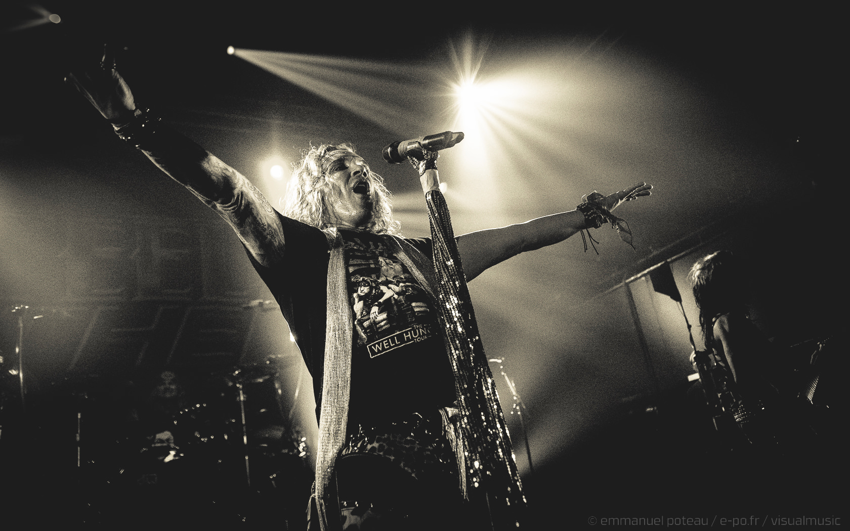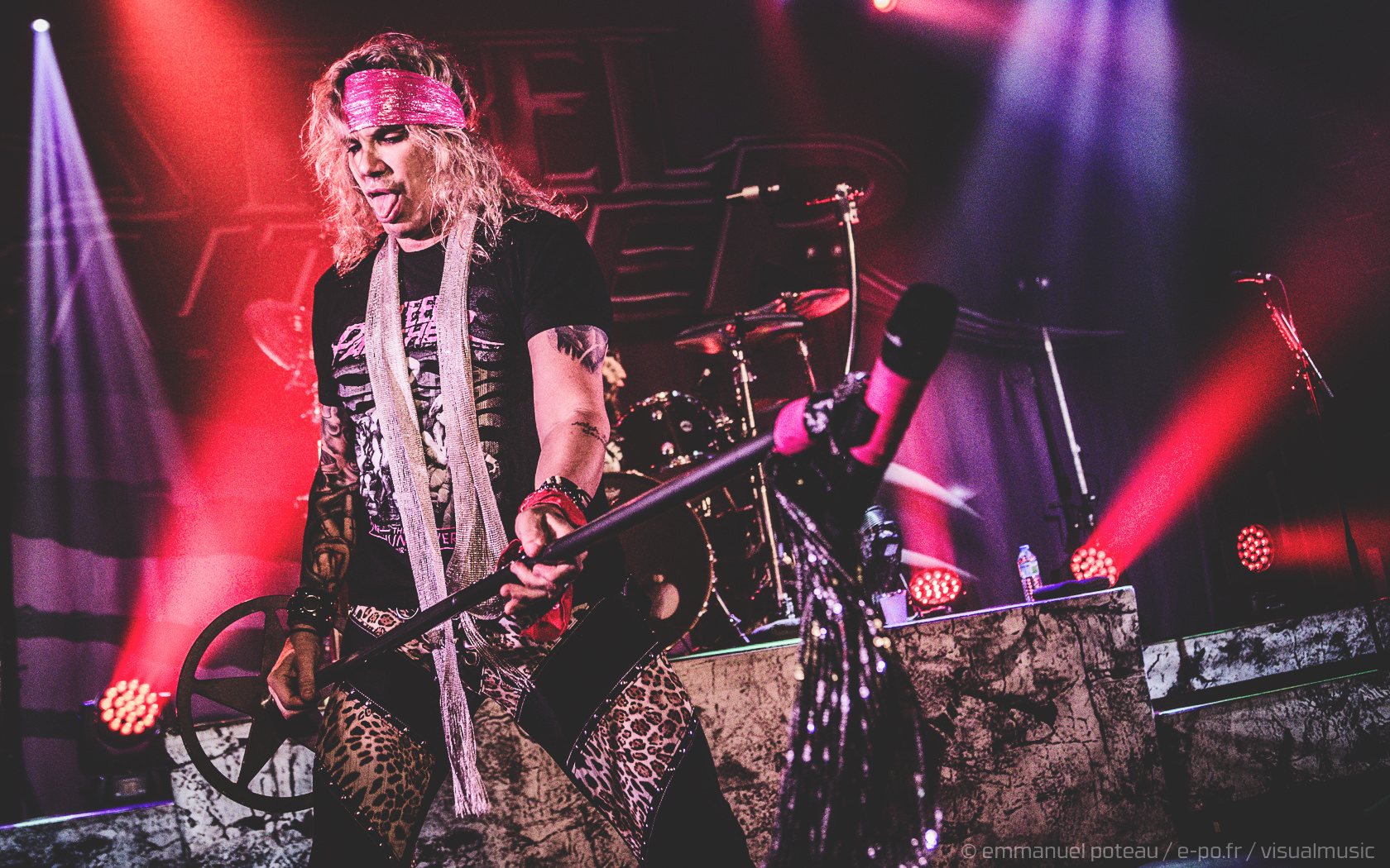 Les rigolades entre les musiciens durant les morceaux ne semblent pas feintes, et même si on se demande parfois qui assure les chœurs (une bande peut-être), le reste du concert se fait sans accroc et une énergie infaillible. Là où je reprocherai à Inglorious de nous faire revivre un hard rock éculé à base de vocalises, Steel Panther nous régale de ses tubes millimétrés aux refrains accrocheurs (coucou « Party Like Tomorrow Is The End Of The World ») sans le côté pénible de l’époque rejouée. En total délire, le groupe se permet même une sorte d’entracte laissant la vedette à Stachel, celui-ci enchainant les reprises à la guitare et… à la batterie. Se transformant en homme orchestre, celui-ci chauffe alors le public en reprenant de nombreux tubes sur ce medley mêlant Iron Maiden, Metallica ou encore Black Sabbath.