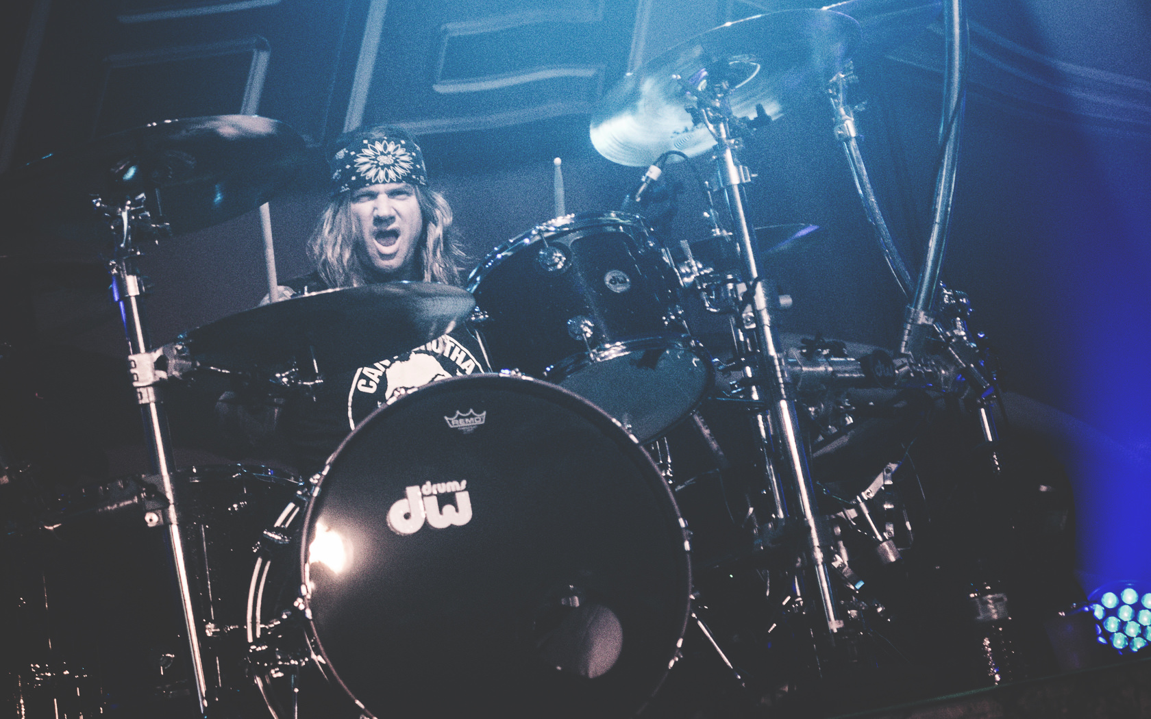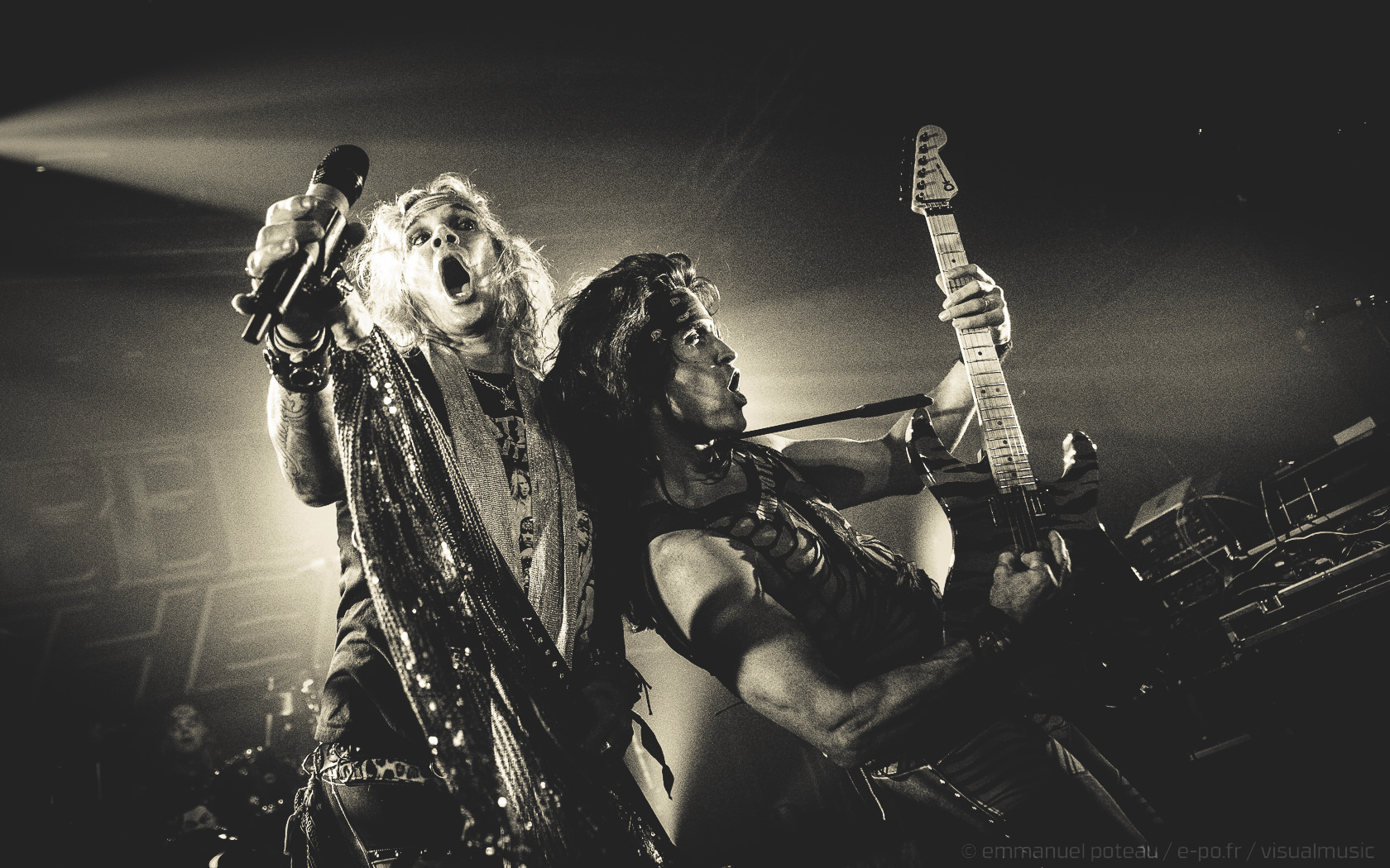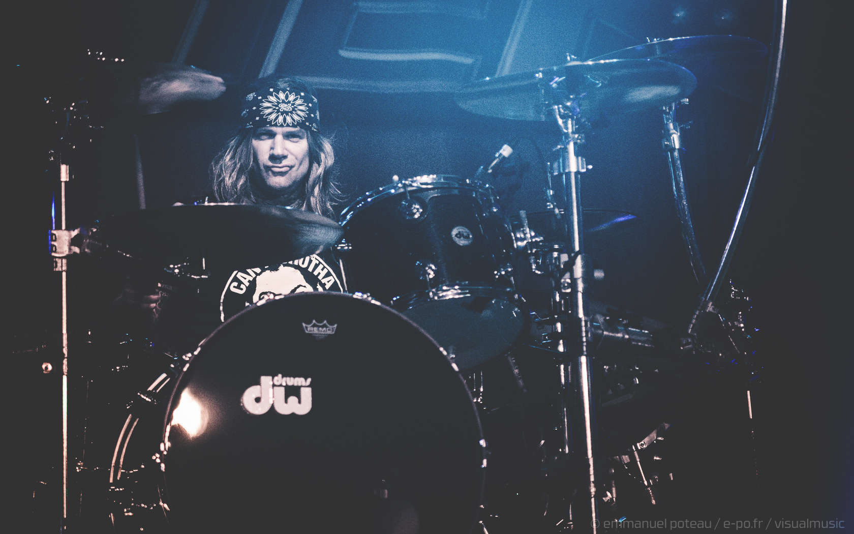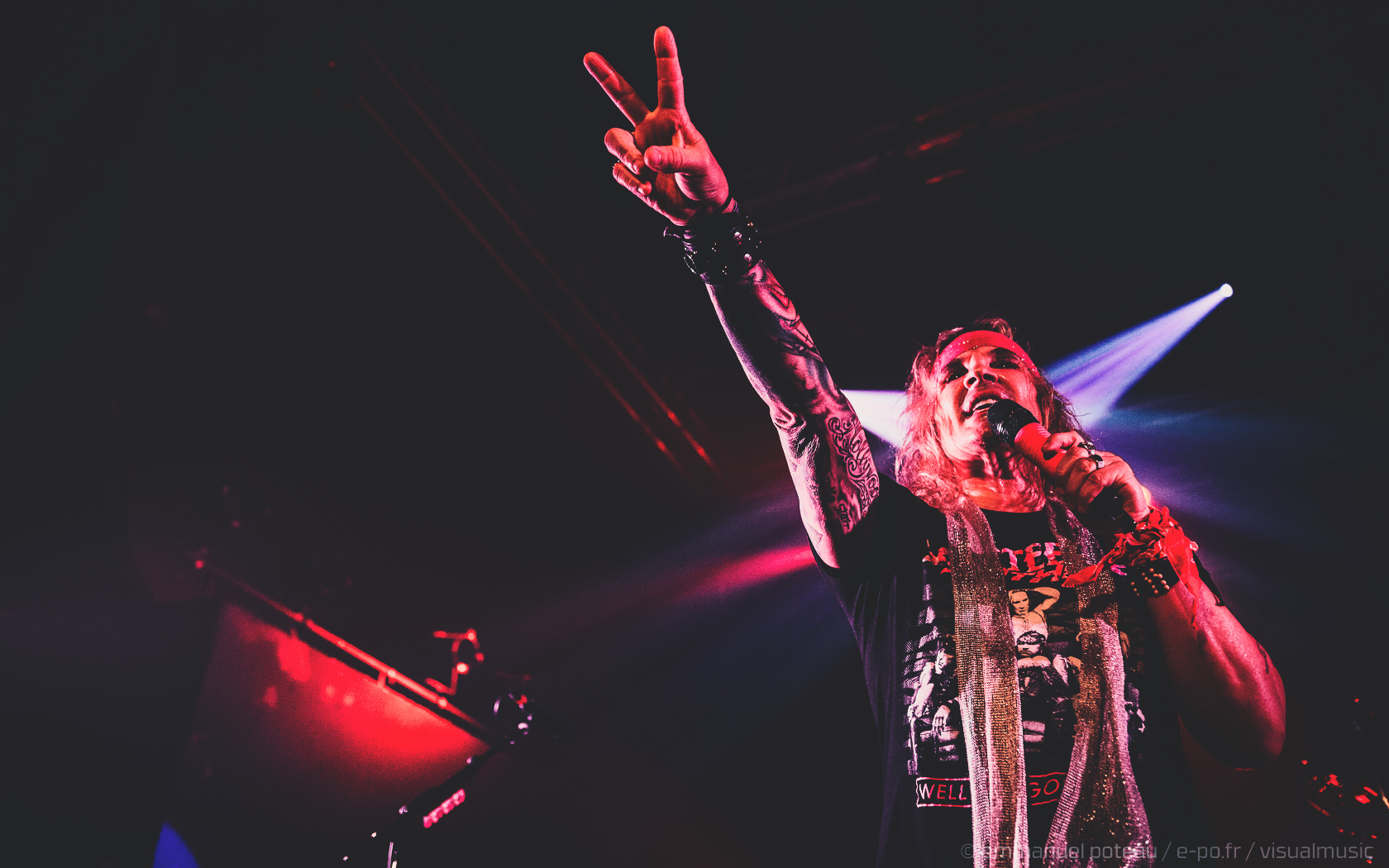 Les rigolades entre les musiciens durant les morceaux ne semblent pas feintes, et même si on se demande parfois qui assure les chœurs (une bande peut-être), le reste du concert se fait sans accroc et une énergie infaillible. Là où je reprocherai à Inglorious de nous faire revivre un hard rock éculé à base de vocalises, Steel Panther nous régale de ses tubes millimétrés aux refrains accrocheurs (coucou « Party Like Tomorrow Is The End Of The World ») sans le côté pénible de l’époque rejouée. En total délire, le groupe se permet même une sorte d’entracte laissant la vedette à Stachel, celui-ci enchainant les reprises à la guitare et… à la batterie. Se transformant en homme orchestre, celui-ci chauffe alors le public en reprenant de nombreux tubes sur ce medley mêlant Iron Maiden, Metallica ou encore Black Sabbath.