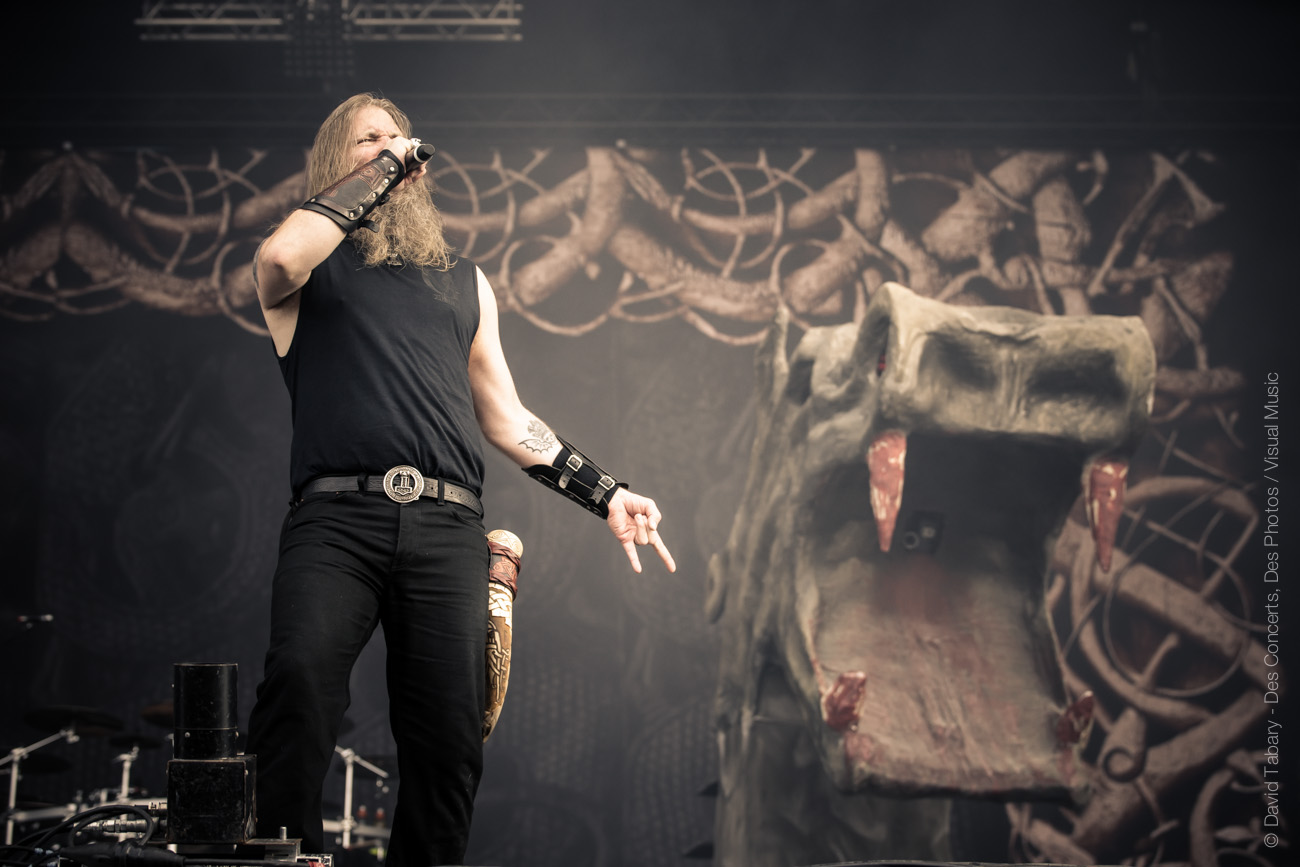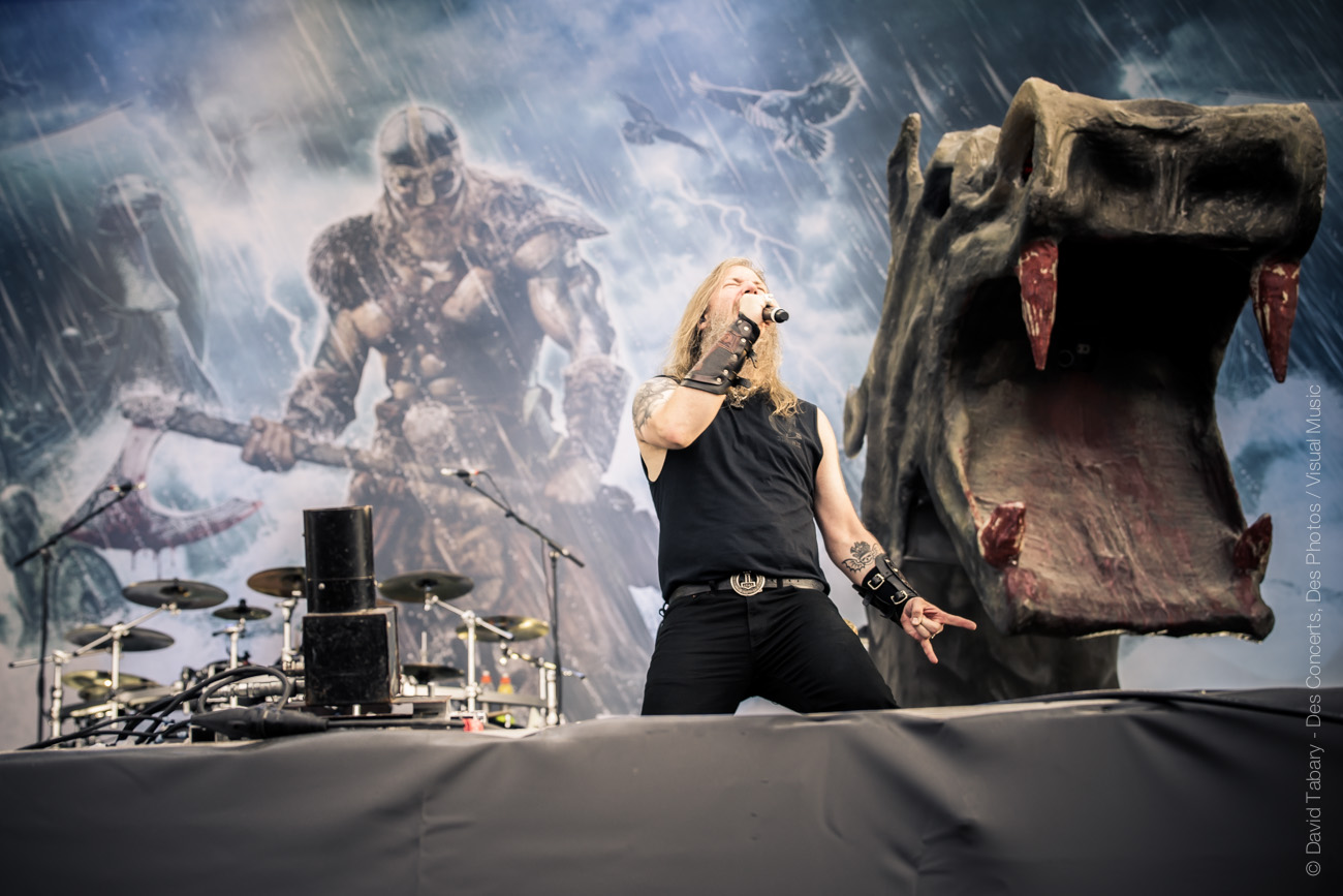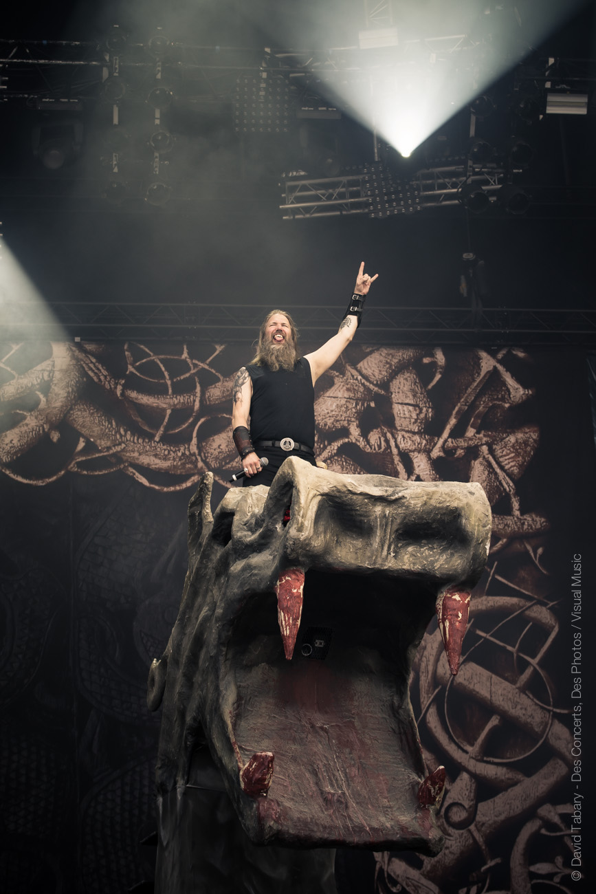 Gros changement d’ambiance avec les fiers vikings d’Amon Amarth. On n’y restera pas longtemps mais les northmen font une très bonne impression. Pour vous donner le ton on dira juste que les mecs ont fait une chanson debout sur les têtes de deux géants dragons de pierre.