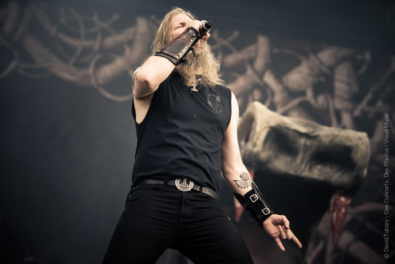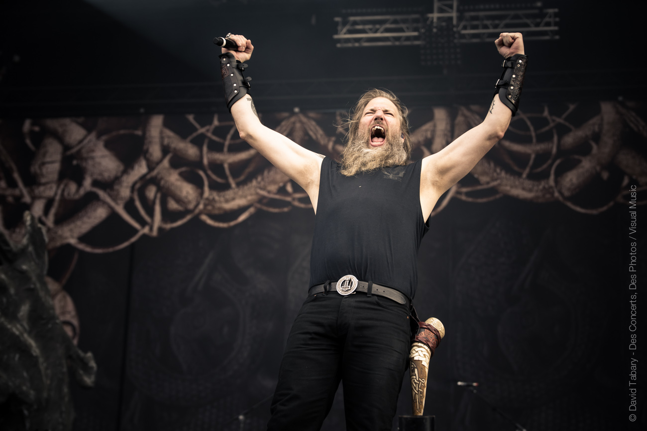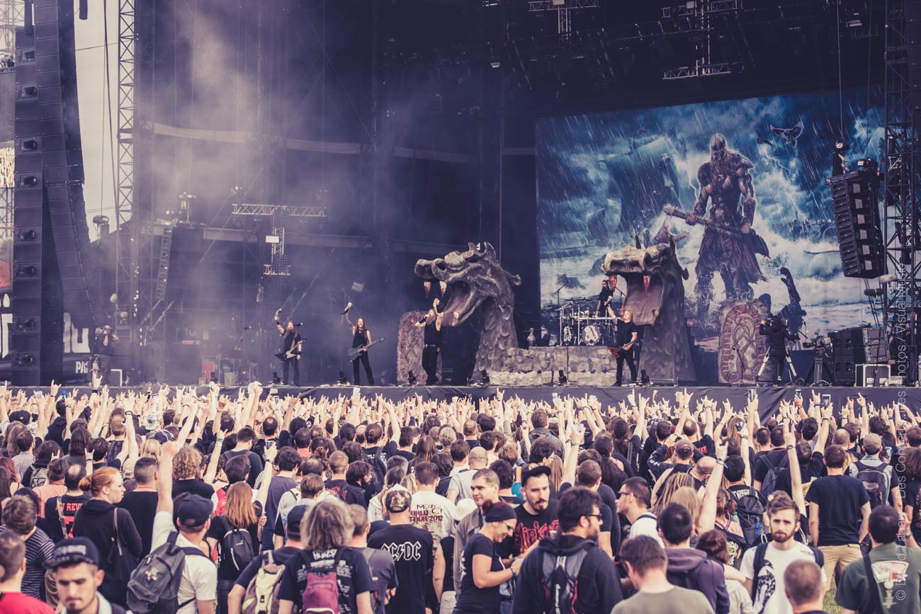 Gros changement d’ambiance avec les fiers vikings d’Amon Amarth. On n’y restera pas longtemps mais les northmen font une très bonne impression. Pour vous donner le ton on dira juste que les mecs ont fait une chanson debout sur les têtes de deux géants dragons de pierre.
