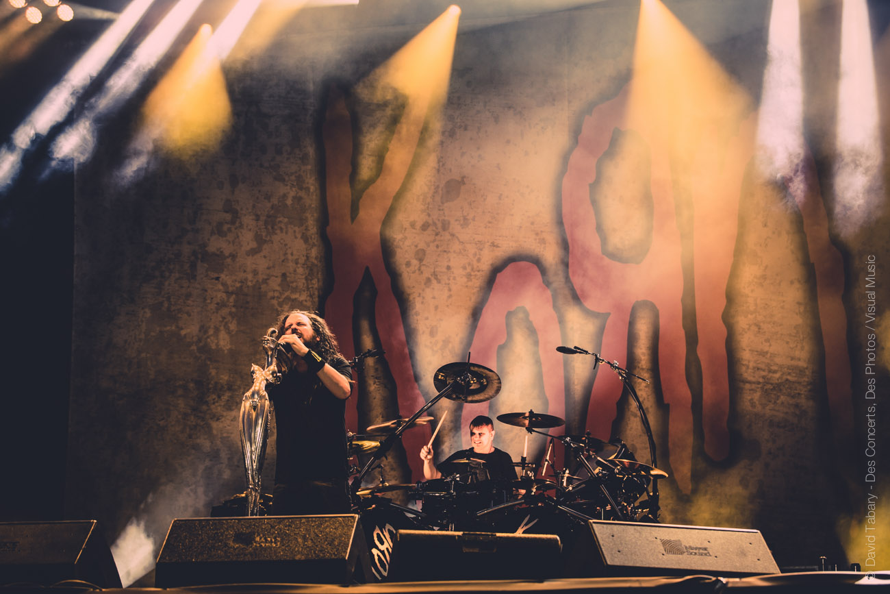 La journée s’achève avec la tête d’affiche qui aura donné l’occasion aux détracteurs du festival de médire, les trve neo-metalleux de Korn !