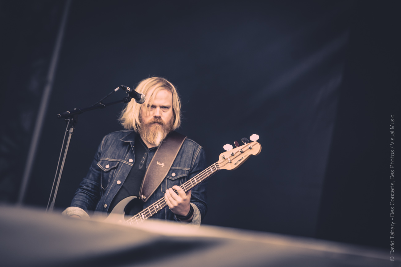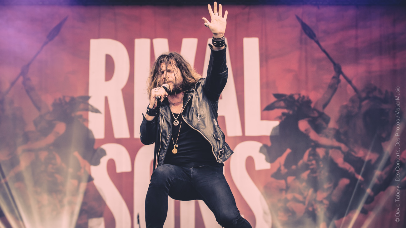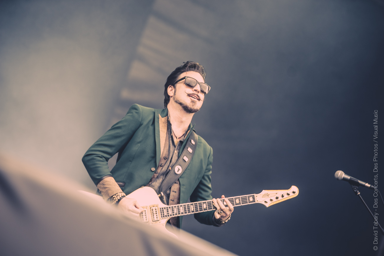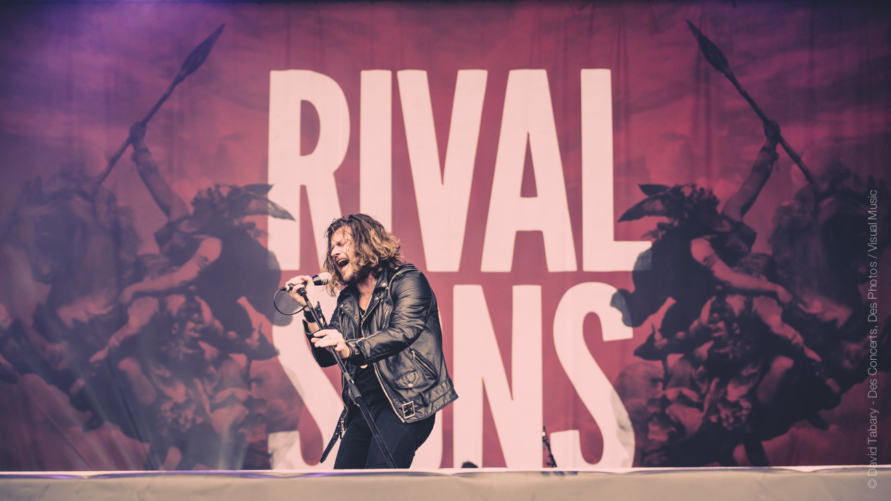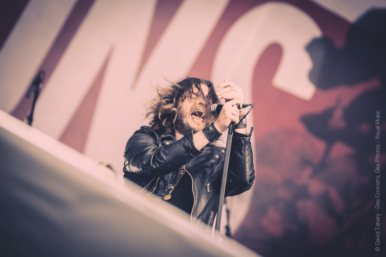 On ne va pas se mentir, cette journée du Download Festival France est jusque-là assez décevante, la météo n’aidant pas beaucoup. On se dirige alors vers la scène d’en face en se disant que si ce n’est pas du metal, peut-être que le salut viendra d’un rock plus classique avec la performance toujours attendue de Rival Sons. La pluie quant à elle a désormais décidé de tomber à chaque début de concert. C’est donc sous une pluie moins forte (mais qui mouille quand même) que Jay Buchanan et sa bande font leur entrée sur scène. Et le moins qu’on puisse dire c’est que Buchanan ne va pas ménager sa peine. Gesticulant, hurlant jusqu’à en devenir violet, l’homme vit toujours autant sa performance. C’est sa voix qui assure le liant entre les anciens morceaux et ceux, plus fades avouons-le, de l’album qui vient tout juste de paraître. On se permettra au passage de chambrer Scott Holiday, le guitariste, trop préoccupé par l’idée de garder son beau costume vert au sec pour sortir du milieu voire du fond scène. Pas très rock ‘n’ roll comme attitude…