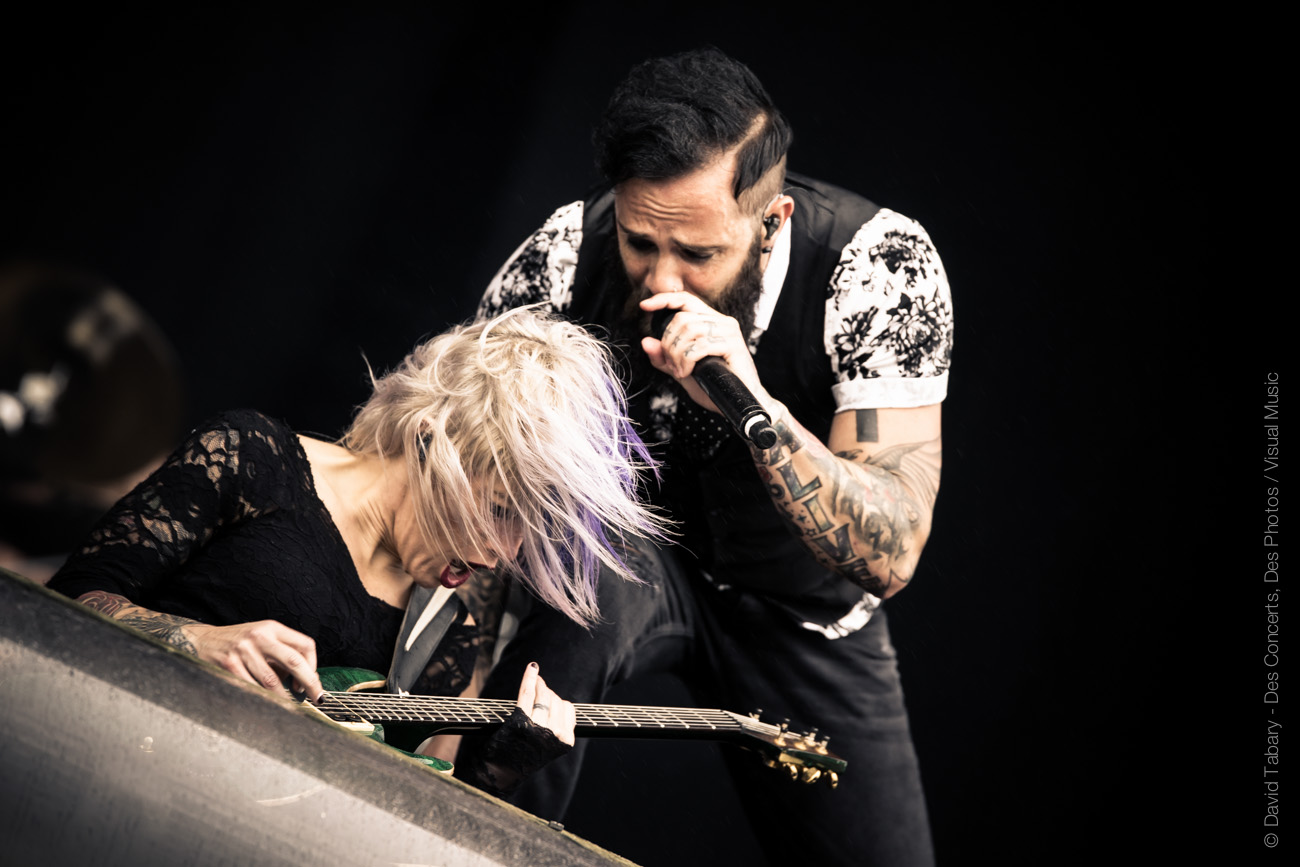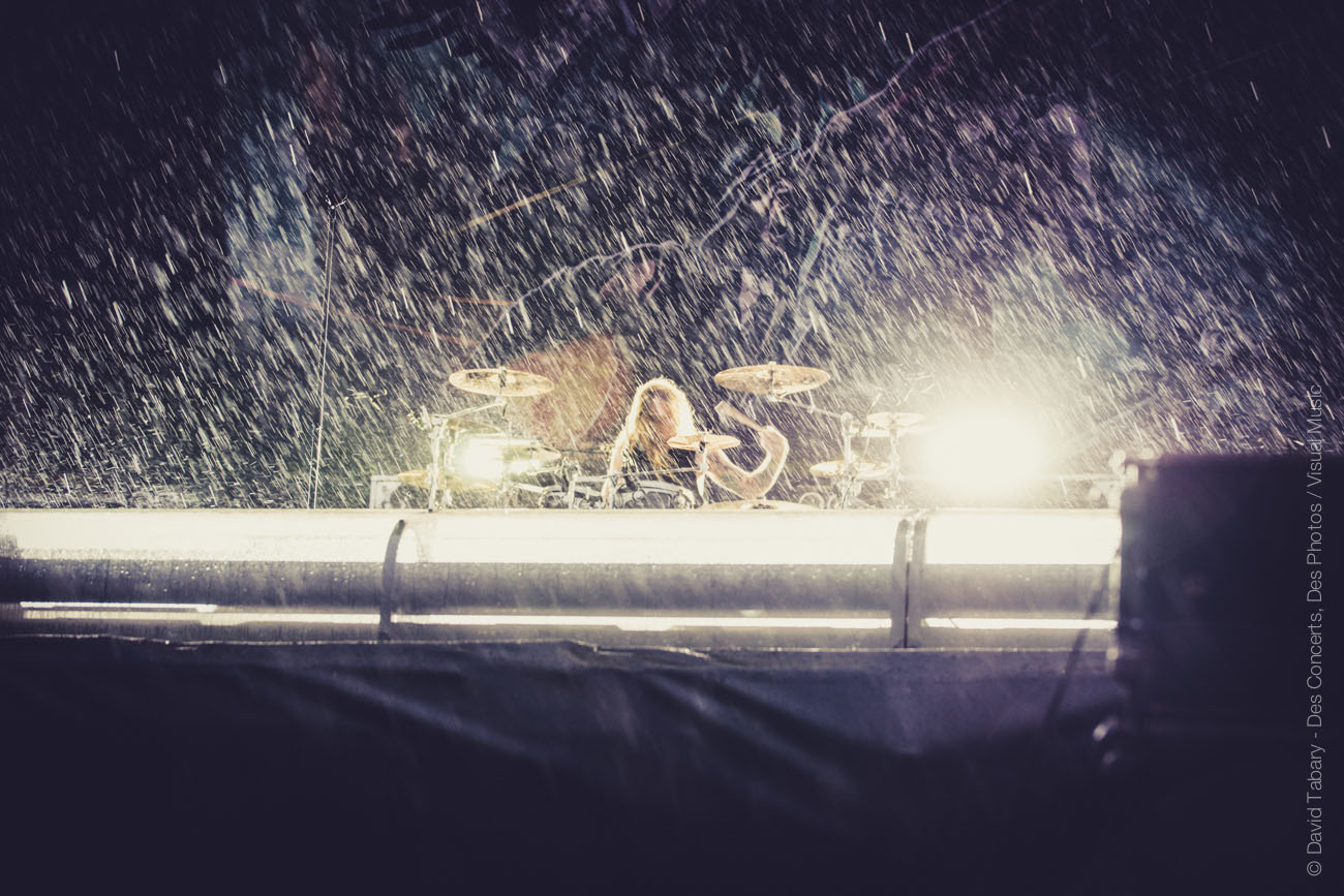 Du coup, c’est à peine si on prête attention au petit crachin qui tombe sur l’hippodrome de Longchamp au moment où l’on passe la sécurité. Une demi-heure plus tard, difficile par contre d’ignorer la grosse averse qui s’abat devant la Main Stage juste avant l’entrée en scène de Skillet. La confiance, vraiment ?