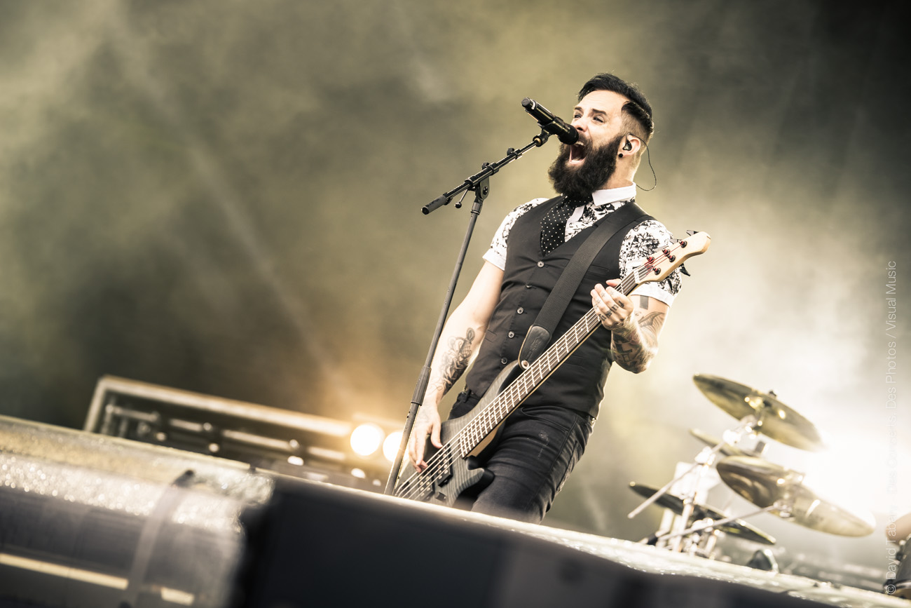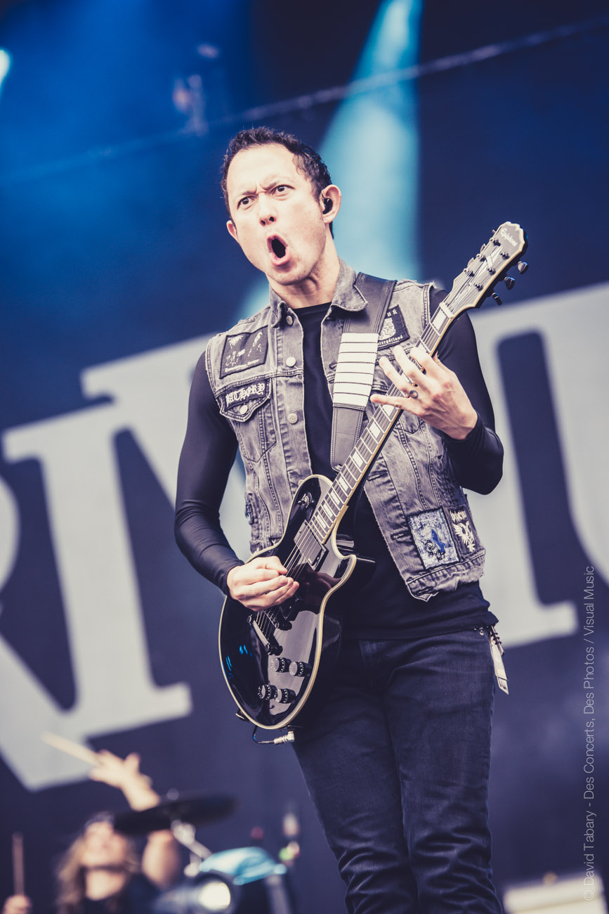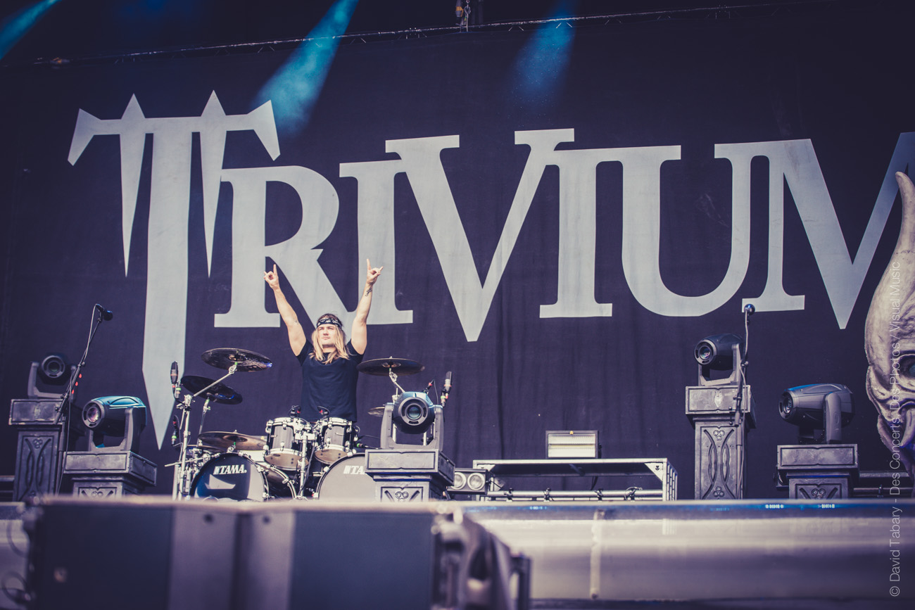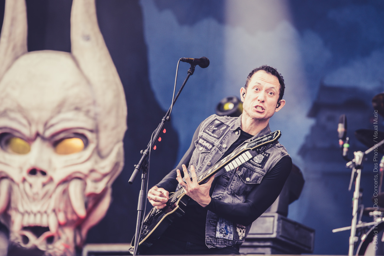 On retourne devant la Main Stage pour Trivium. Hélas, c’est un peu la même punition que pour Skillet plus tôt. Le chanteur a beau grimacer tout ce qu’il peut, on sent que c’est un vrai gentil (on entendra à côté de nous « ouh, il fait peur celui-là, il a l’air méchant » sur un ton des plus ironiques qui en dit long). Le groupe a beau sortir le décor démoniaque comme tant d’autres, l’effet reste cliché et commercial, à l’image de leur musique.