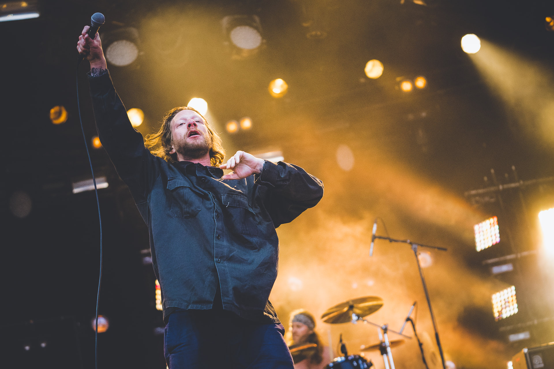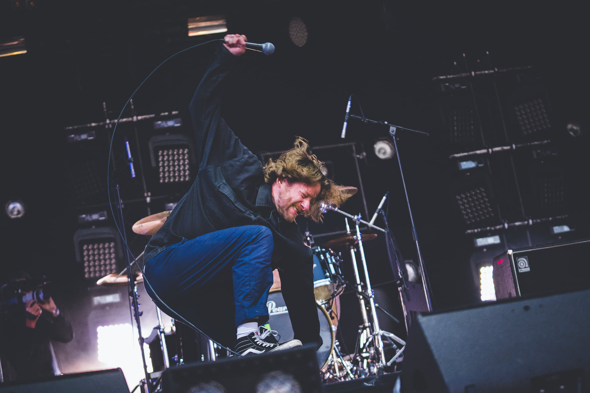 Certains n’étaient pas prêts pour le pogo de 11h, mais Clowns n’en avait strictement rien à faire. Doté d’un code vestimentaire kitsch particulièrement aiguisé – Chemise hawaïenne, short en jean, coupe mullet, permanente, moustache à la Freddy Mercury et façade guitare tirée des jeux vidéo Guitar Hero – les australiens assurent un mix punk / grunge / rock n’ roll fougueux et débridé. Comme la gueule du chanteur sur le pauvre roadie qui traînait près de la scène: “Heavy music is the best and others suck !”. Stage dive, éclusage de pichet de bière, jeter de micros dans la fosse en plein morceau… Ceux dans le public qui voulaient gentiment cuver n’en ont pas eu l’occasion, la fraîcheur et la spontanéité du quintet a tout emporté ! Clairement un début de journée tonique comme il faut.