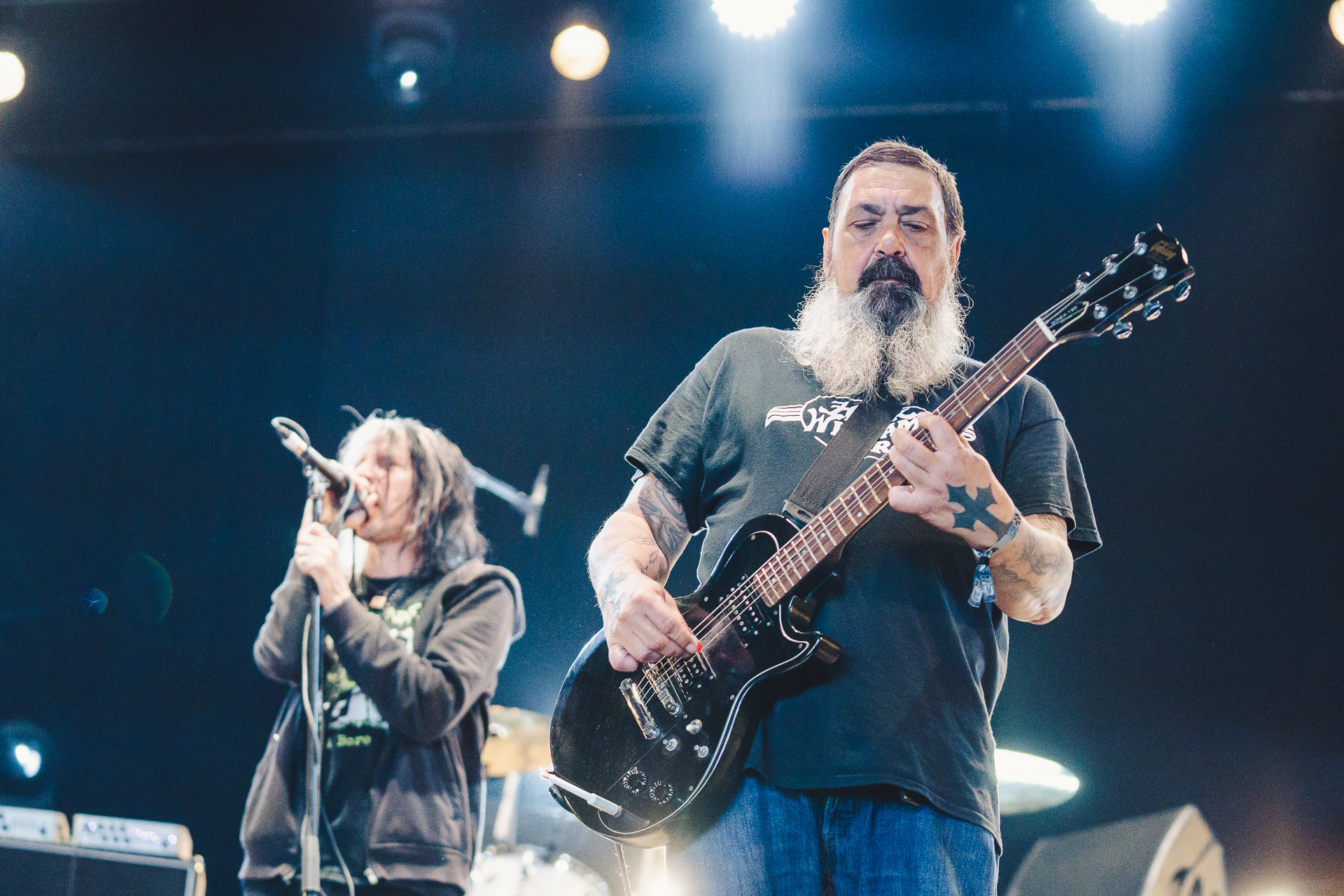 Alors, ça semblera surement difficile à croire pour ceux qui n’y étaient pas, mais on a eu droit à un set d’Eyehategod 100% paix et amour ! Les morceaux sont joués tout gentiment et on est bien loin de leur violence habituelle. Jimmy Bower illumine la scène de sa classe de daron et passe le set à se foutre gentiment de son Mike Williams. Il lui met la main sur la gueule, imite ses mimiques…