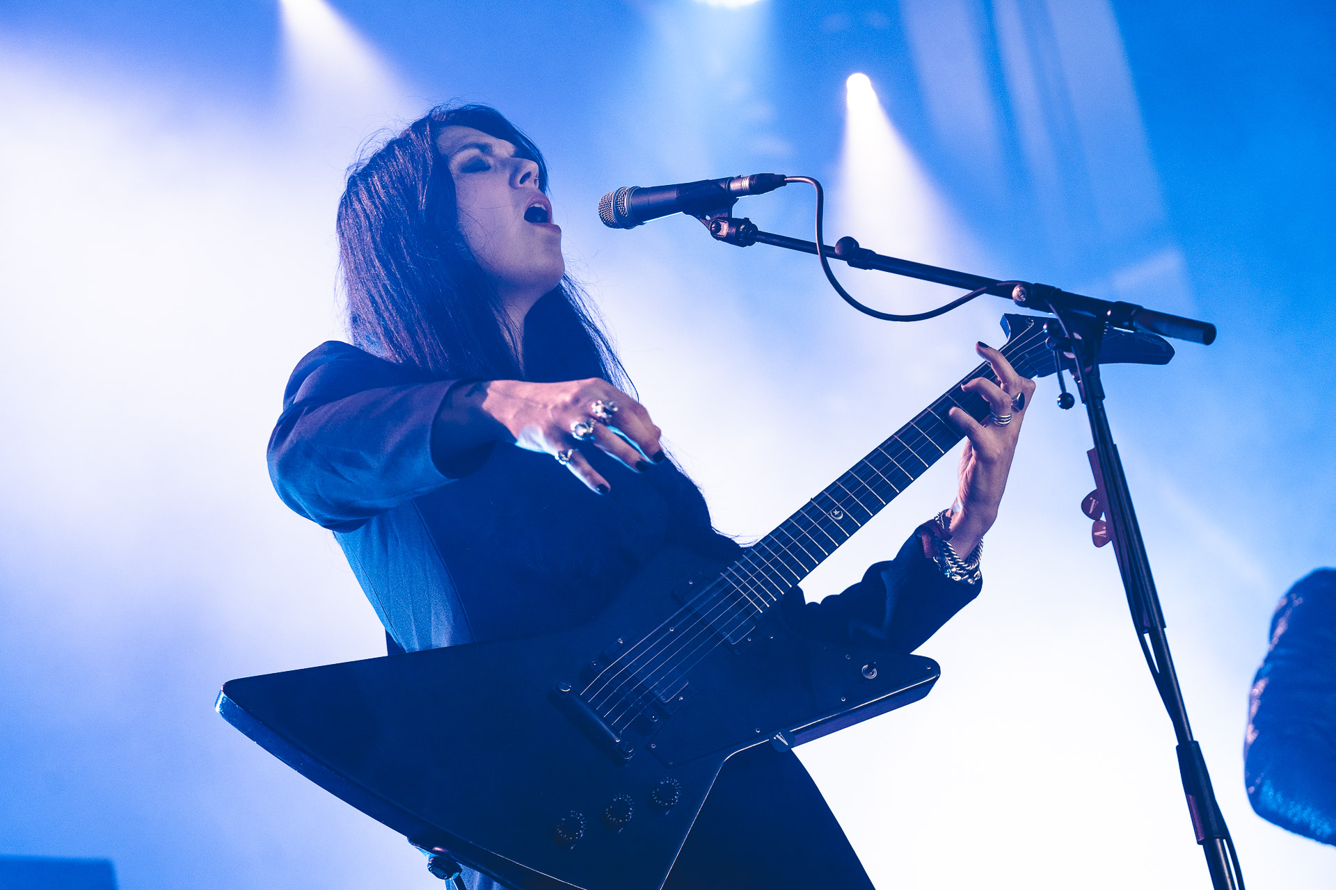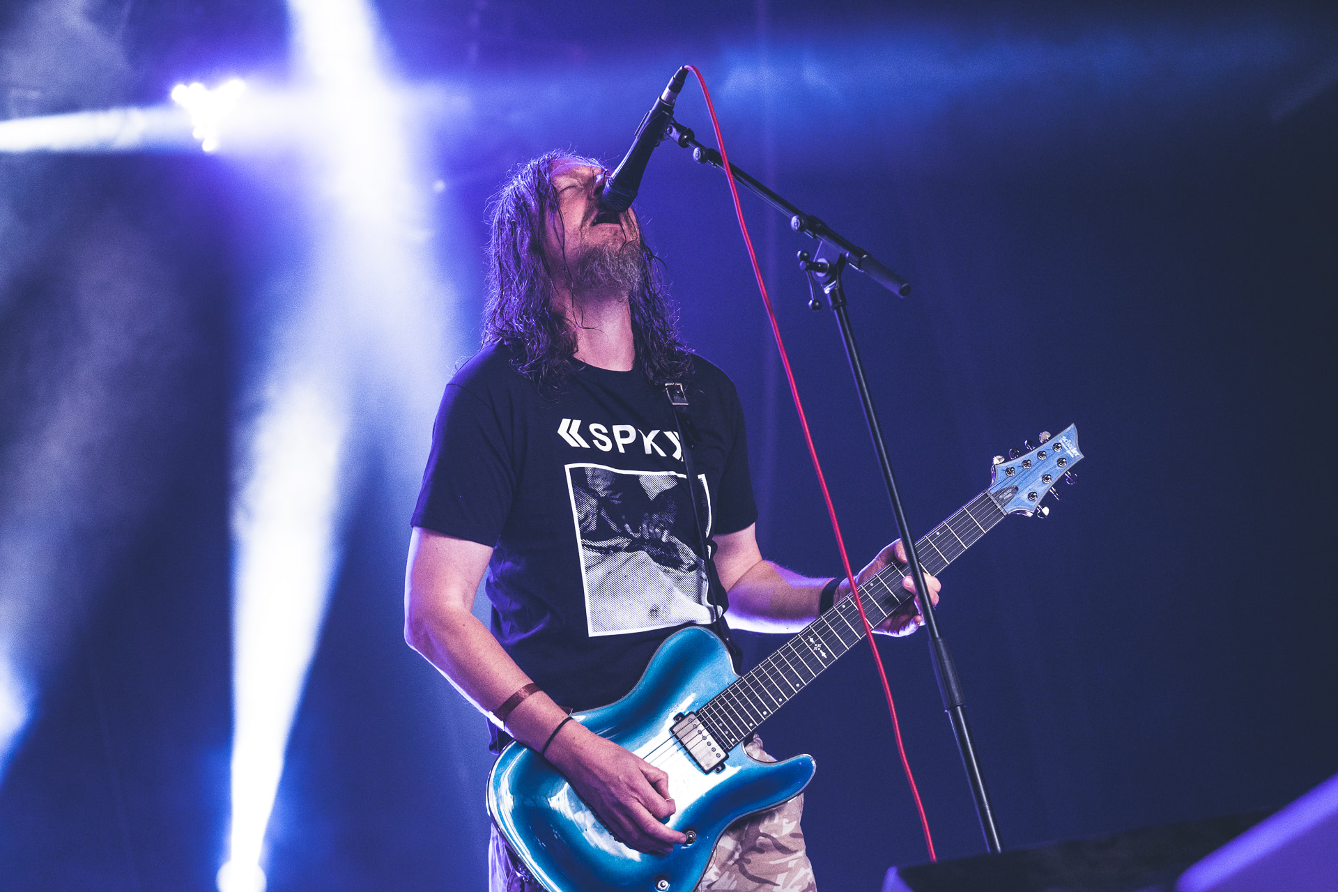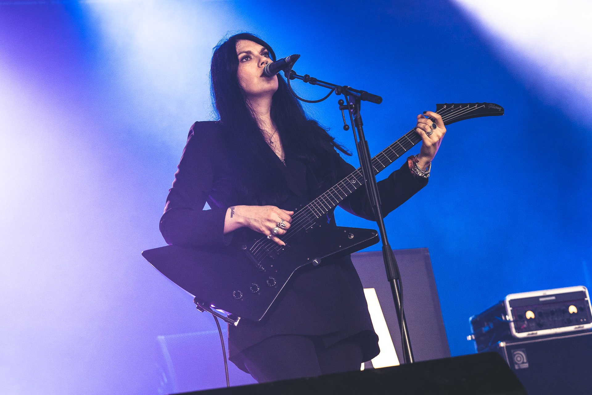 Il est 17 heures mais l’ambiance est déjà crépusculaire quand commence le concert d’A. A. Williams sous la Valley. Si beaucoup l’on découverte grâce à ses reprises de confinement, c’est bien à un concert de son propre répertoire auquel on aura droit. Les instruments sont électriques, mais les morceaux restent aérés et dépouillés. De formation classique, Williams a longtemps joué du piano puis du violoncelle, avant de découvrir le metal. Ceci se ressent surtout dans les phases les plus calmes qui rappellent presque Agnes Obel, et disparait quand le son se fait plus amplifié pour aller chercher du côté du post-rock. Un épais brouillard recouvre rapidement la scène et on finit enveloppés dans cette sombre barbapapa cotonneuse.