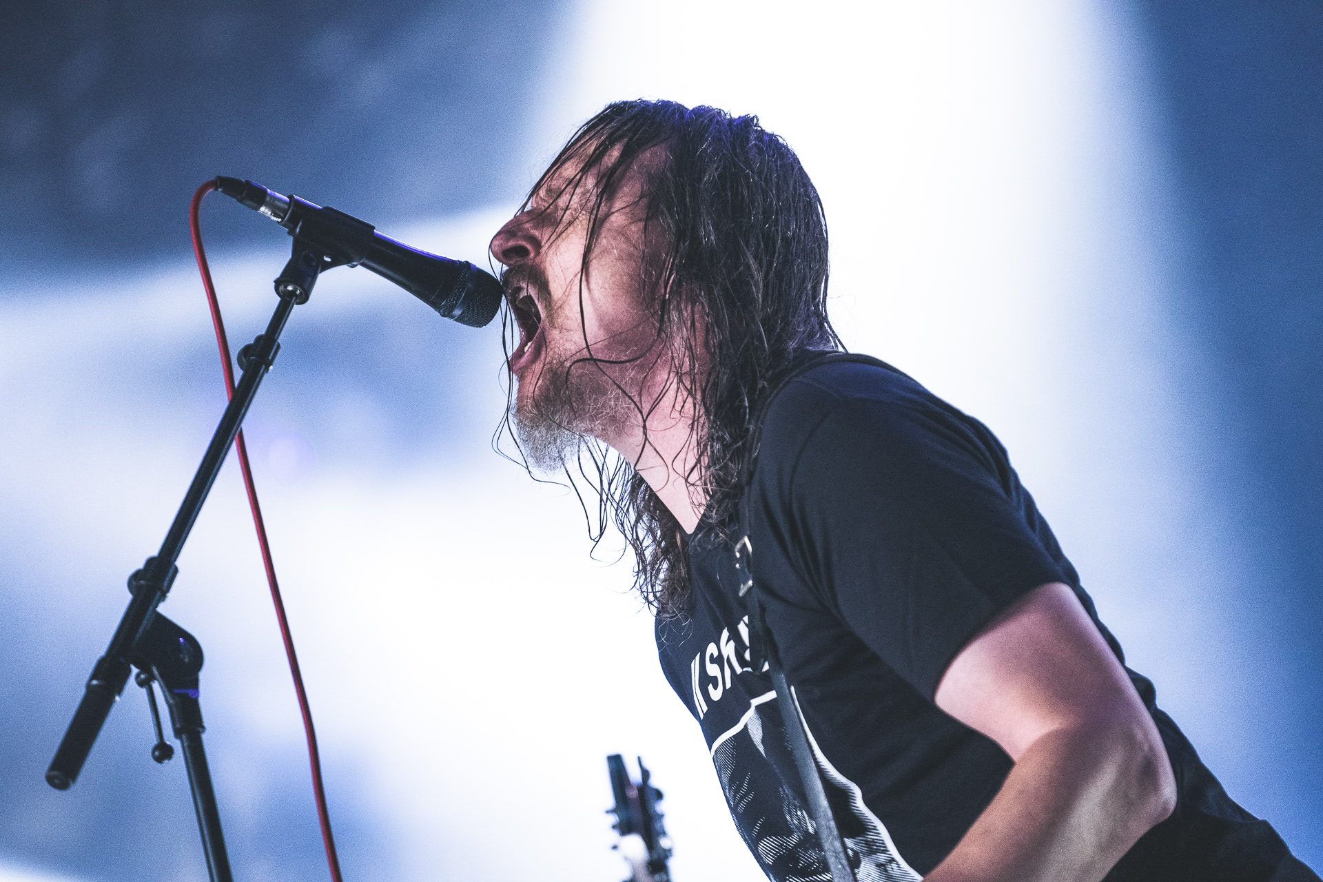 On est donc sous la pluie avec de grosses attentes quand les écrans de la Mainstage s’allument et que les premières notes de « Mr. Self Destruct » nous explosent au visage. Non seulement ça sonne très bien, mais c’est aussi épais que violent. Le teasing n’était pas vain et leur ramage se rapporte bien au plumage promis : ce soir on casse des bouches et des tympans. Le reste de la setlist sera à l’avenant avec tout de même : « Heresy », « Burn », « Gave Up »… Sur scène, Trent Reznor a clairement l’air de vouloir en découdre. On croyait que le départ de Trump allait le rendormir, c’est tout le contraire. Il est plus énervé que jamais.