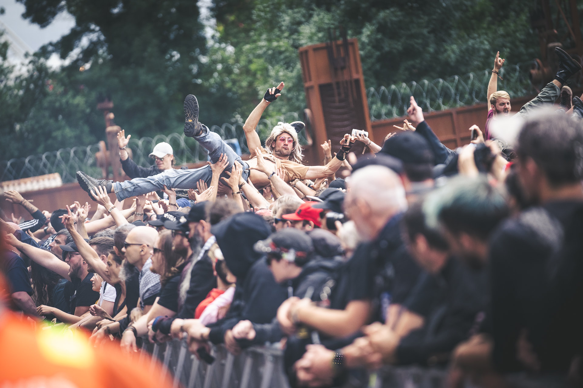 Ce n’est pas un concert auquel on assiste sur la Warzone, mais plutôt à un spectacle de cabaret barré donné par Opium du Peuple et force est d’admettre que cela s’accorde bien au décorum imposant du Hellfest. La petite troupe nous quitte à après un RockCollection remixé à la sauce métal citant Metallica, Motorhead, AC/DC, Pantera et Slayer.