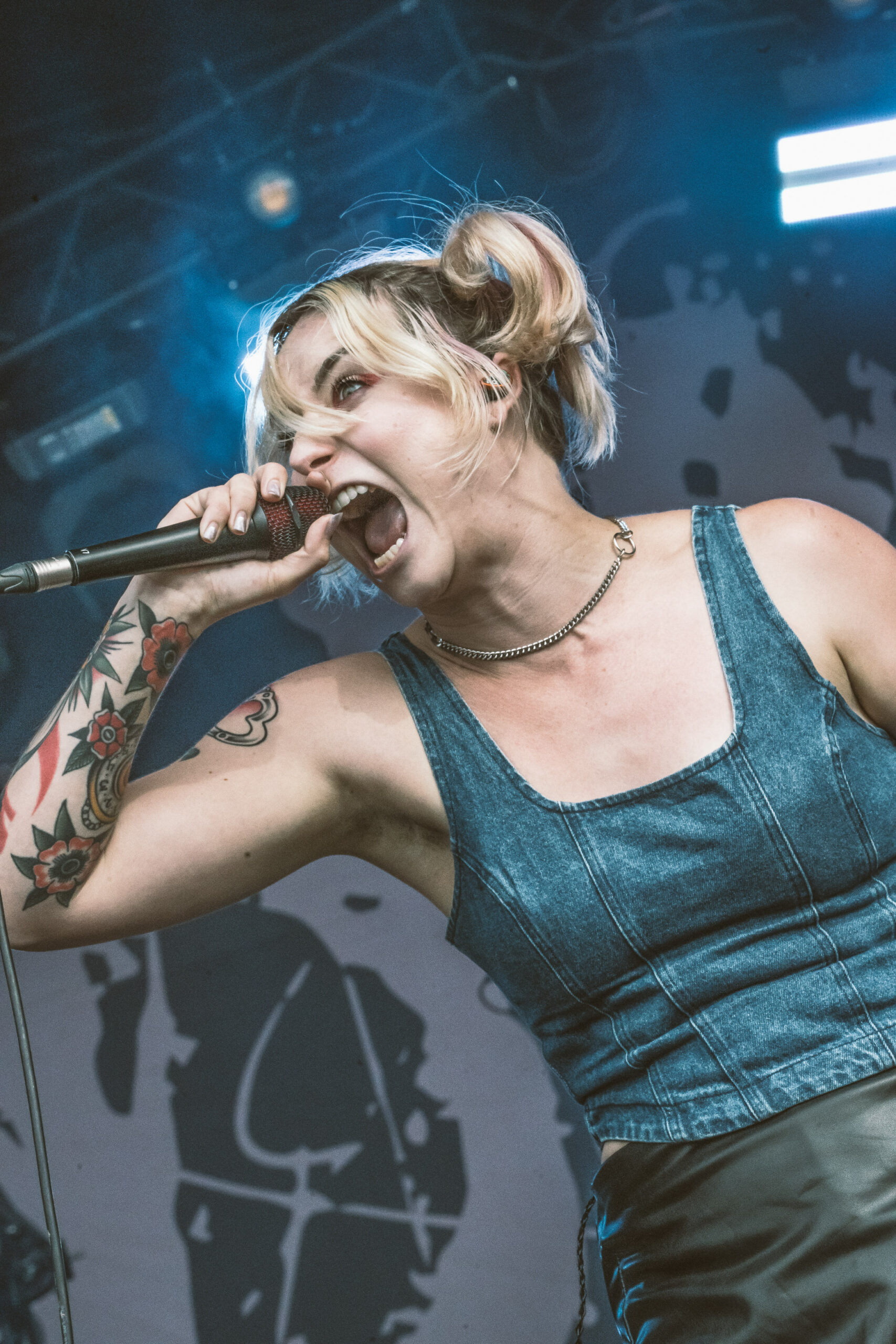 Nouveau gros nom de la scène metalcore moderne, Dying Wish a véritablement explosé avec son deuxième album « Symptoms of Survival » sorti en novembre dernier. La Warzone fait sûrement partie de leurs premières grandes scènes et la joie se lit sur le visage d’Emma Boster.