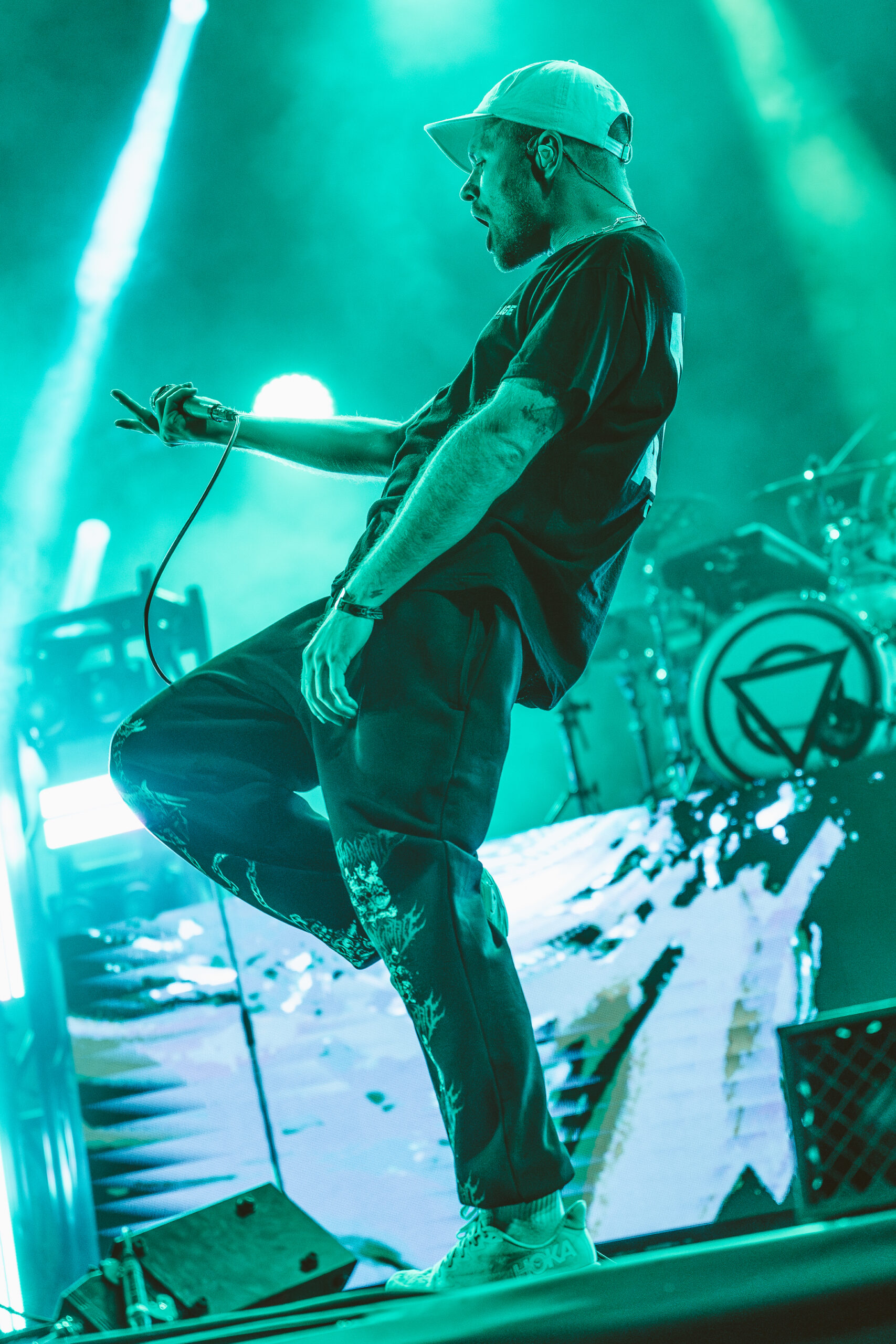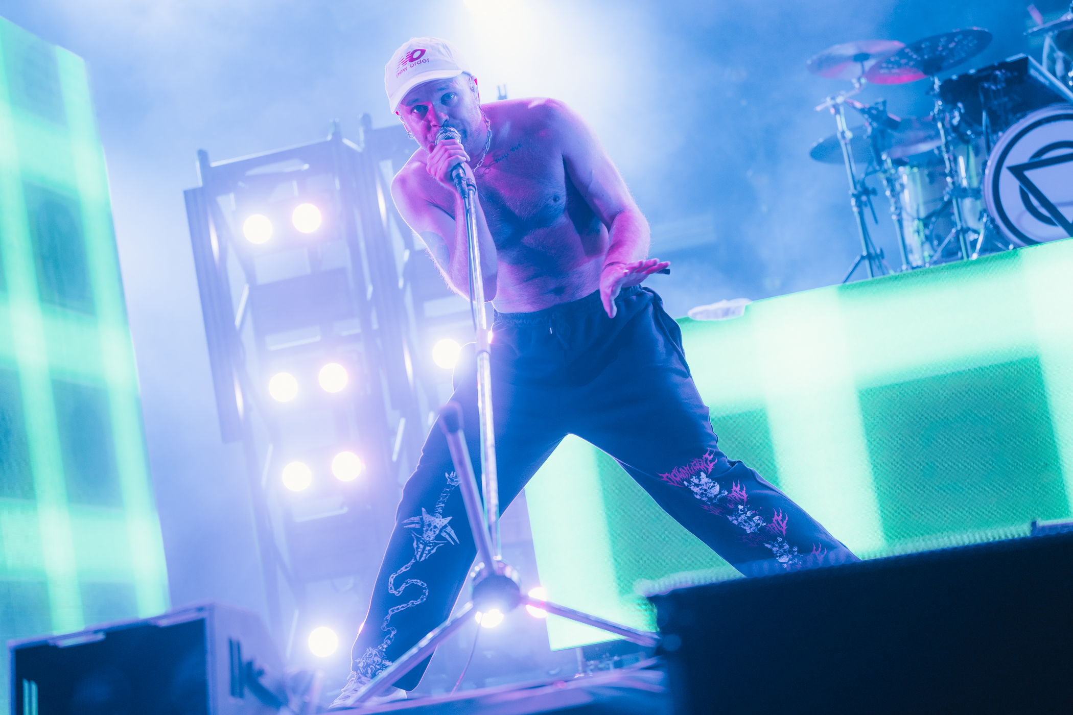 Enter Shikari a sorti l’an dernier un des meilleurs albums de sa carrière et revenait tout juste de sa plus grande tournée, tant en termes de taille des salles que de production. Alors, comment rendait la version du show adaptée pour les festivals ? Encore mieux que ce qu’on avait pu imaginer, la faute à un Rou comme on ne l’avait encore jamais vu.
