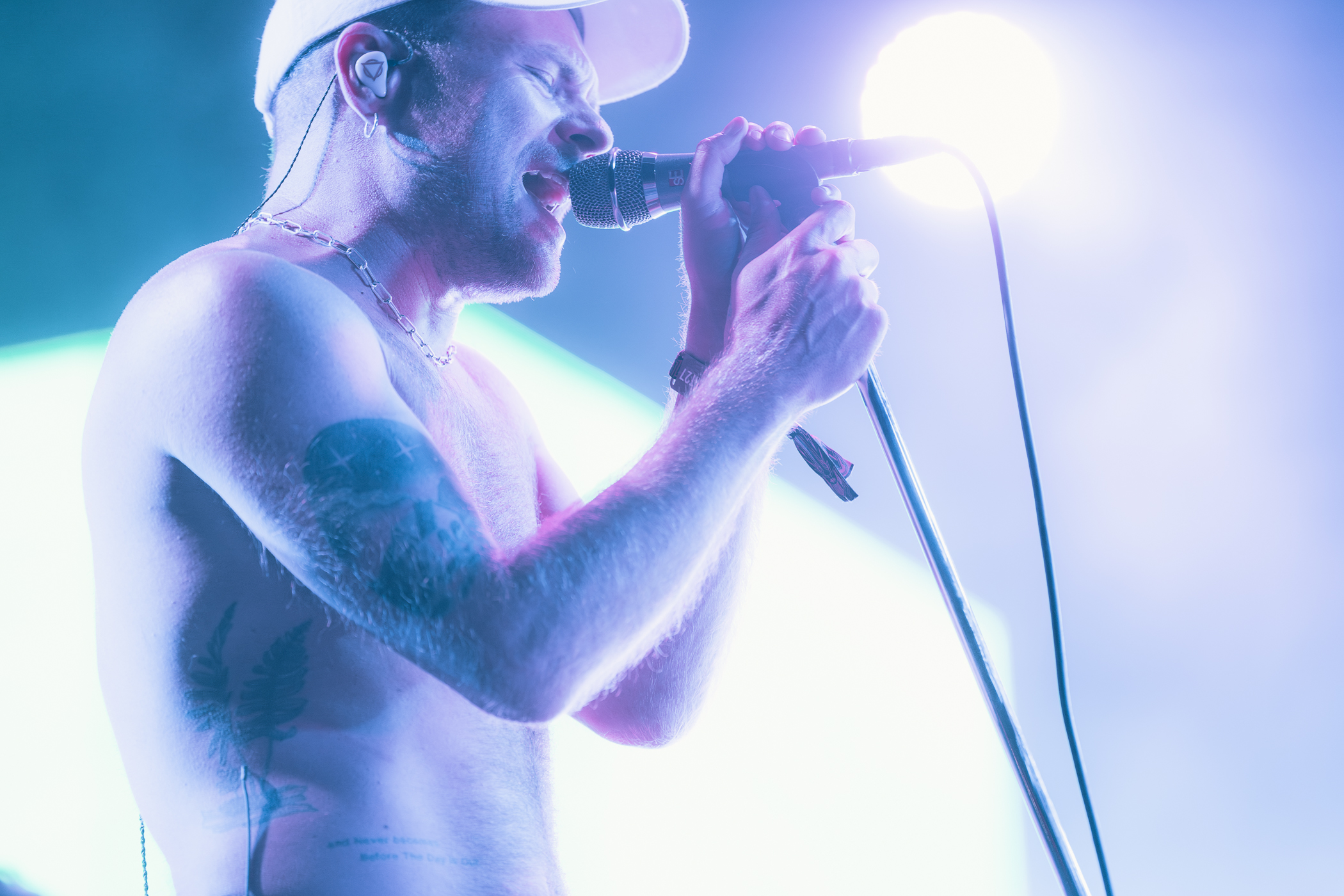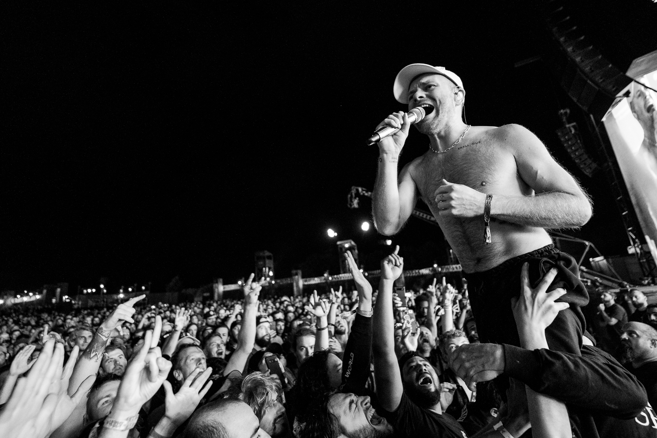 Le morceau se termine et après avoir expliqué rapidement qu’il aimerait monter sur un truc pour le suivant, il finit par abandonner et chanter « Satellites » en plein milieu du public. Chapeau au Challenger rapide qui réussit à le retrouver à ce moment-là et assurera sa sécurité jusqu’à son retour sur scène. Intenable, il remonte la foule par le milieu, puis grimpe sur les épaules d’un mec et finit par rejoindre le reste du groupe en slammant.