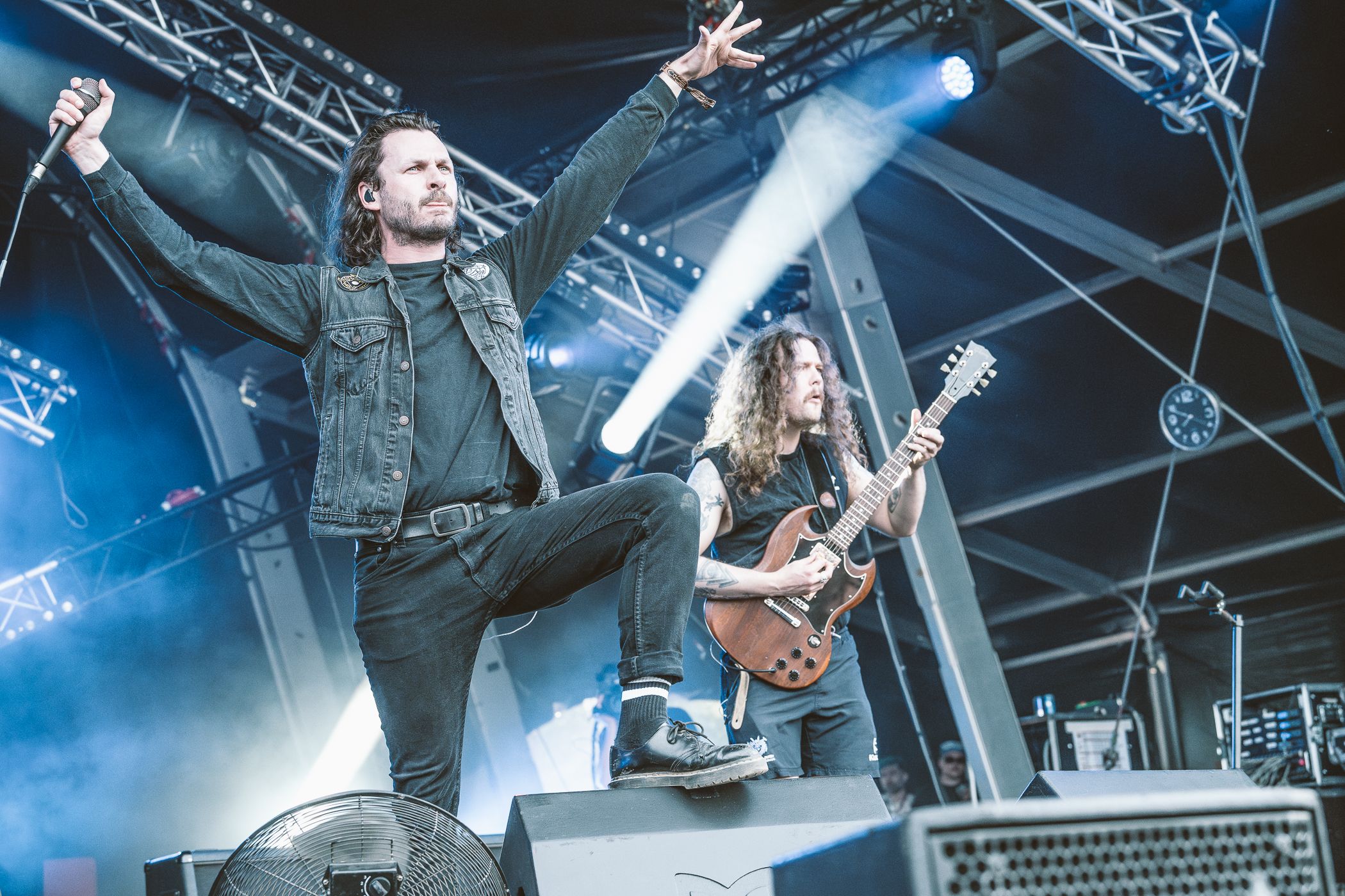 Il est 20h30 mais les Mainstages sont déjà pleines comme pour accueillir un headliner. Le soleil couchant fait briller leurs costumes dorés et on se prend à espérer un feat, parce que c’est le Hellfest, que l’Allemagne c’est pas si loin et qu’un communiste révolutionnaire joue à la même heure le lendemain. Il n’en sera rien, Electric Callboy et Tom Morello n’apparaitront que sur l’écran en fond de scène.