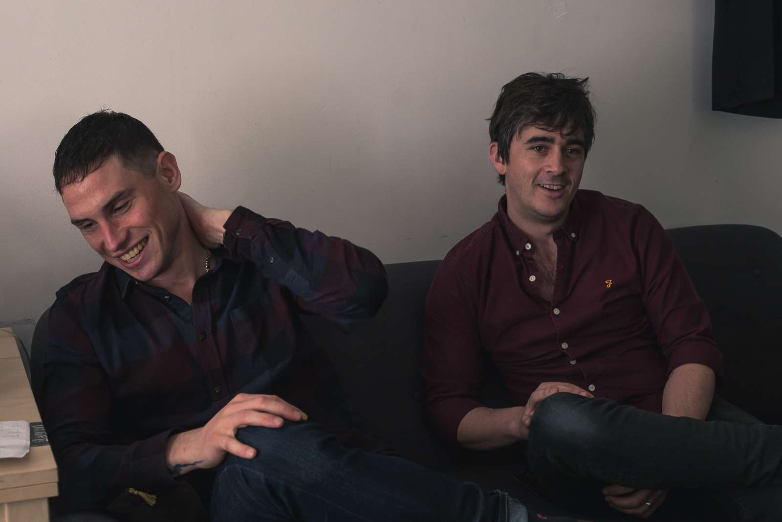 Ce serait mentir que de dire qu’on était tout à fait à l’aise à l’idée de faire une interview dans une loge du Bataclan, mais la bonne humeur des deux anglais en valait bien la peine.