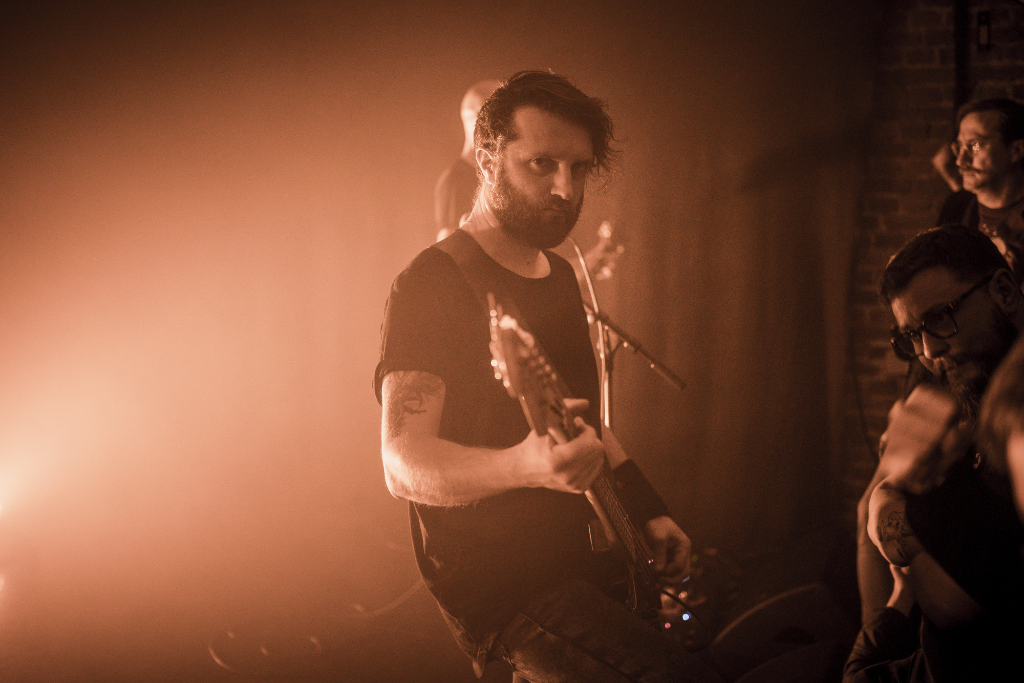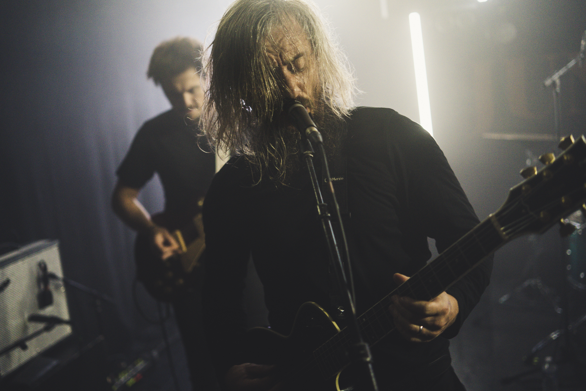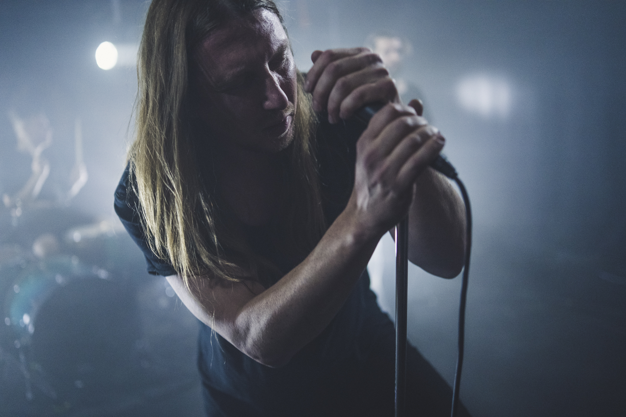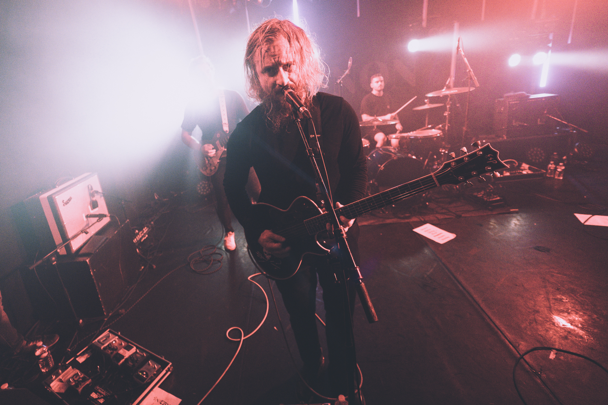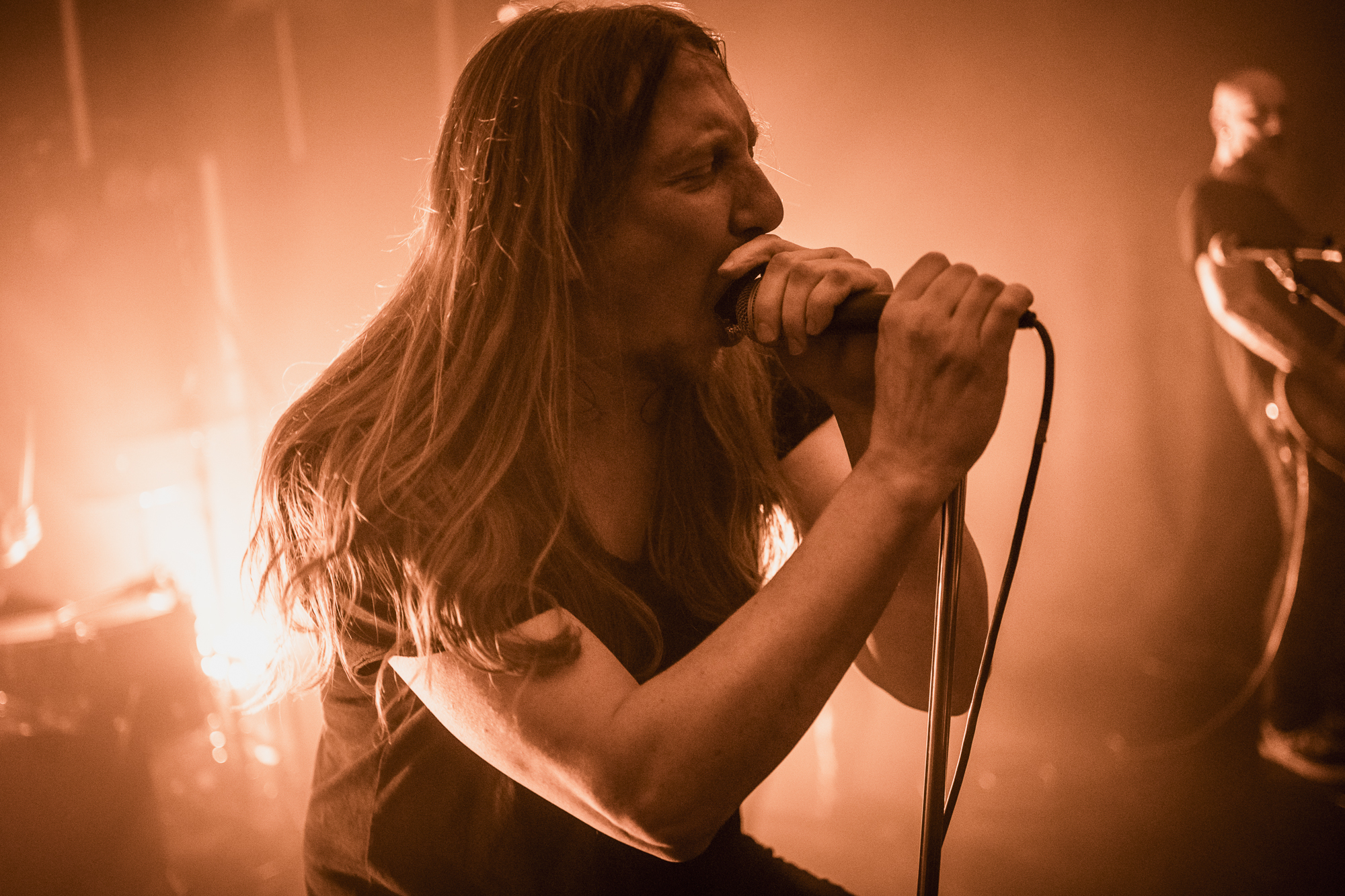 Rappelons que les mecs de Junon, d’expérience, ils n’en manquent pas non plus en live, avec des tournées passées en Europe et notamment dans la plus belle des Patries, la Russie. S’étant chauffés tout le week-end pour claquer un live digne de la vie d’avant, le show est entamé sur « The Sorcerer » et sa puissance noire atmosphérique, la voix rauque du chanteur, Arnaud, annonce la couleur, avant d’être rattrapée par des kicks de batterie, annonciateurs du tumulte qui nous attend (#LABAGARRE). Les guitaristes se mettent alors en branle, le chant du frontman trouvant un écho dans le coffre et l’énergie de Fabien à la guitare, autre moteur scénique d’une formation bien décidée à en découdre.