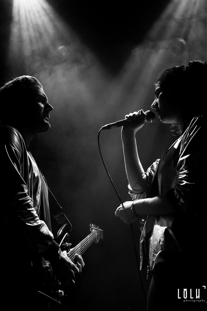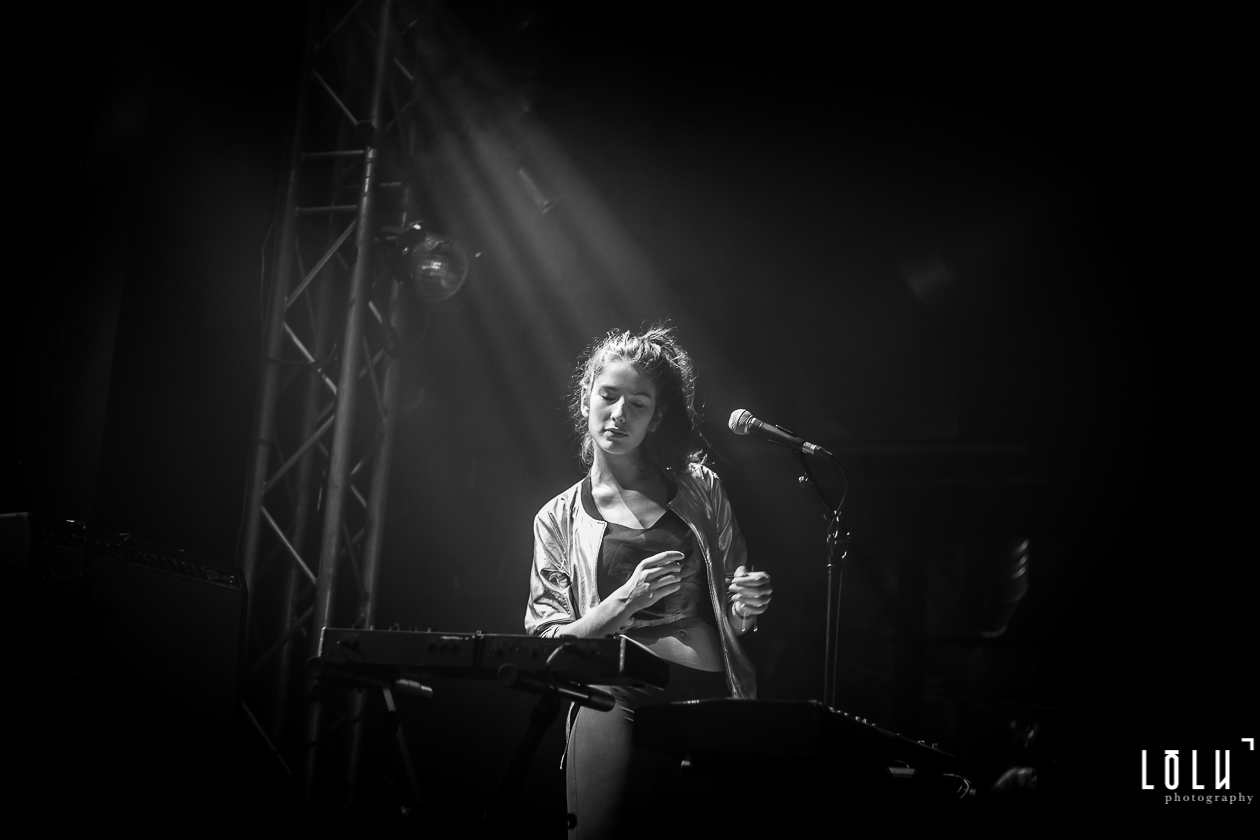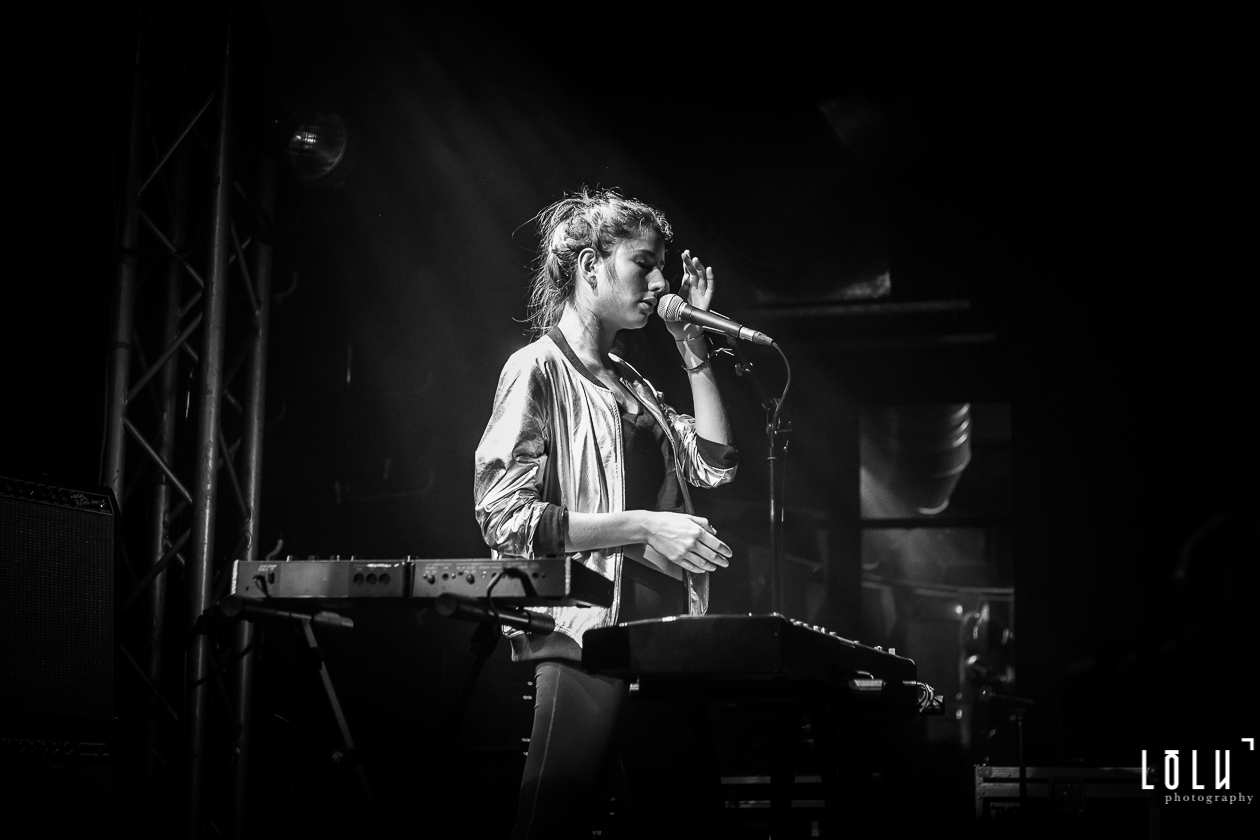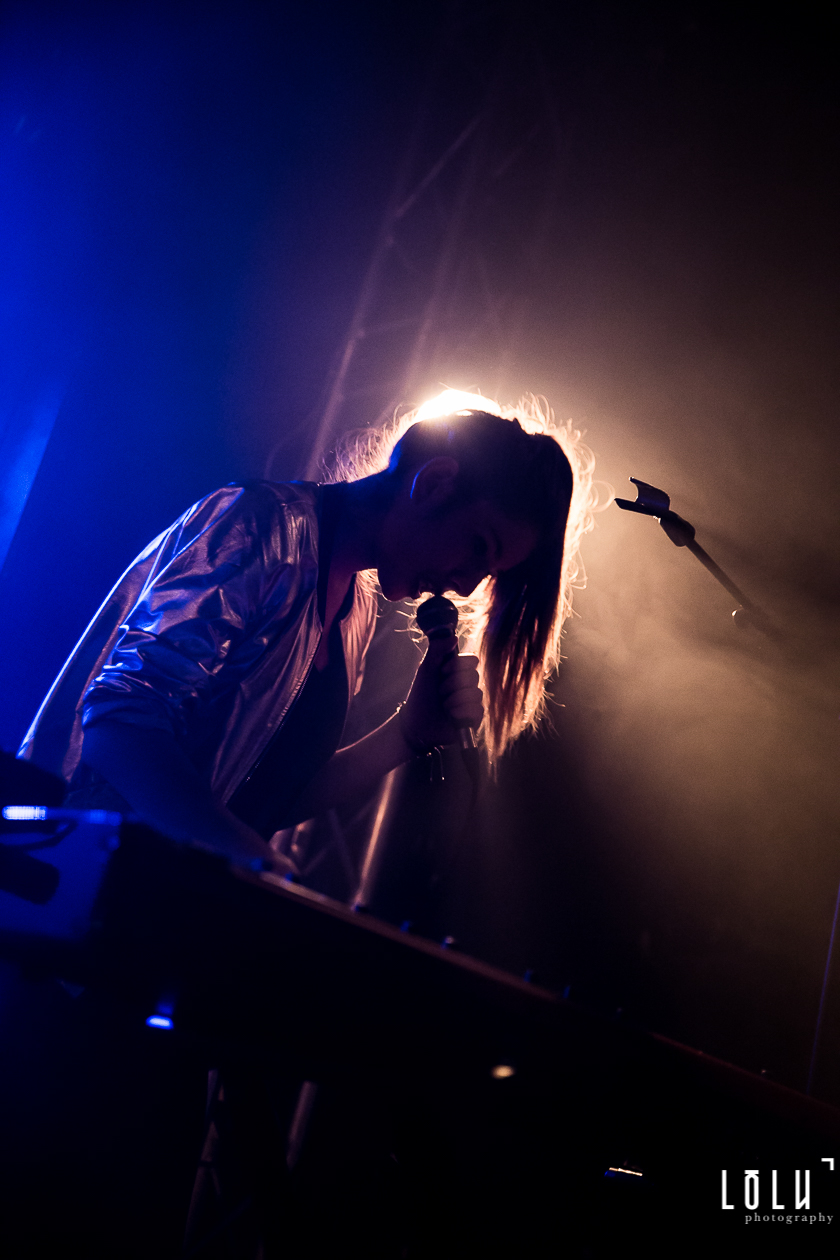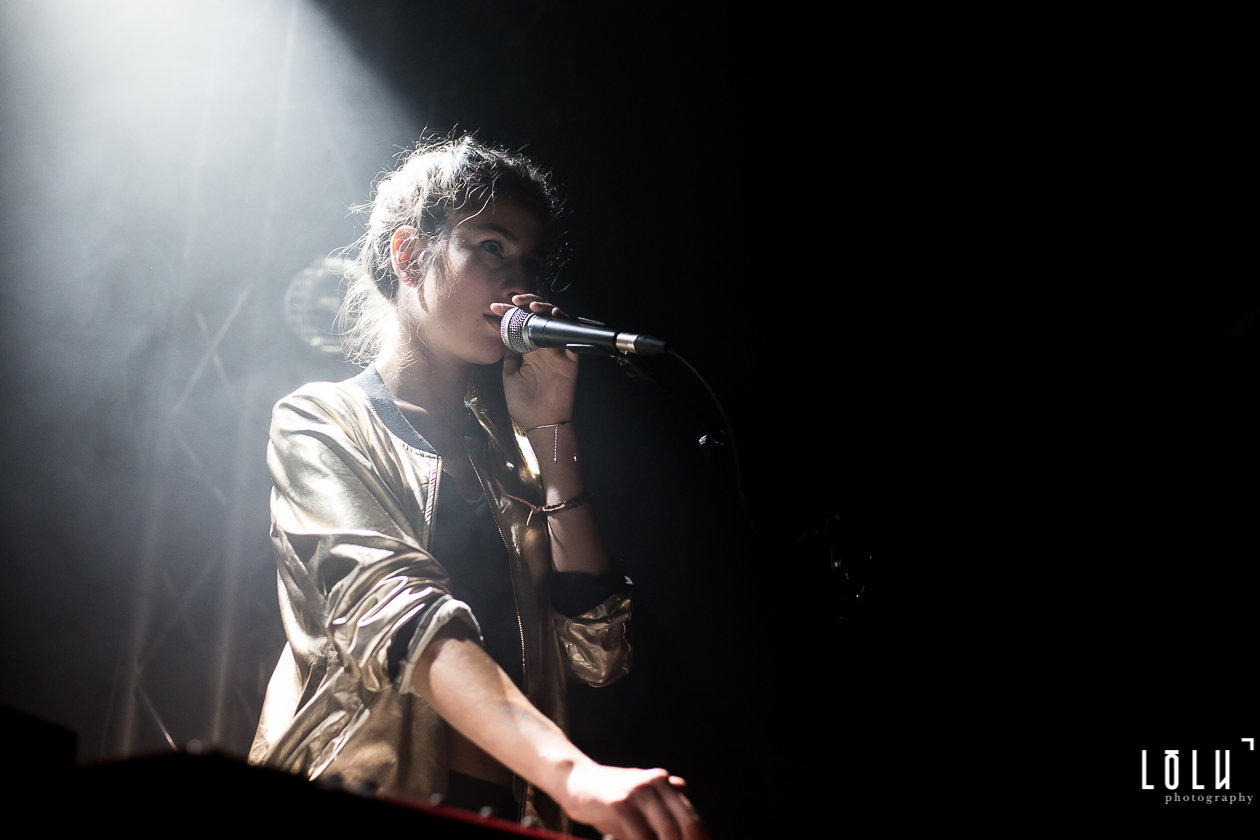 Holy Two arrive sur scène discrètement dans une ambiance tamisée, presque gênés de déranger les conversations de la foule. Mais lorsque les premières notes résonnent, le duo nous fait tout de suite entrer dans son électro-pop onirique. La complicité sur scène est palpable, Hadrien et Elodie sont totalement à l’unisson. Des titres aériens comme Rush ou Orchid nous embarquent d’emblée dans une autre dimension et la voix d’Elodie, douce mais déterminée, débordante de groove et de sensualité, enveloppe l’auditoire d’un voile chaleureux. J’ai parfois l’impression d’entendre du Air, du M83, des relents de Beach House, des notes de London Grammar, mais honnêtement je n’ai pas envie de m’aventurer sur le terrain casse-gueule des comparaisons. Holy Two a déjà, visiblement, une belle identité musicale qui brille sur scène.
