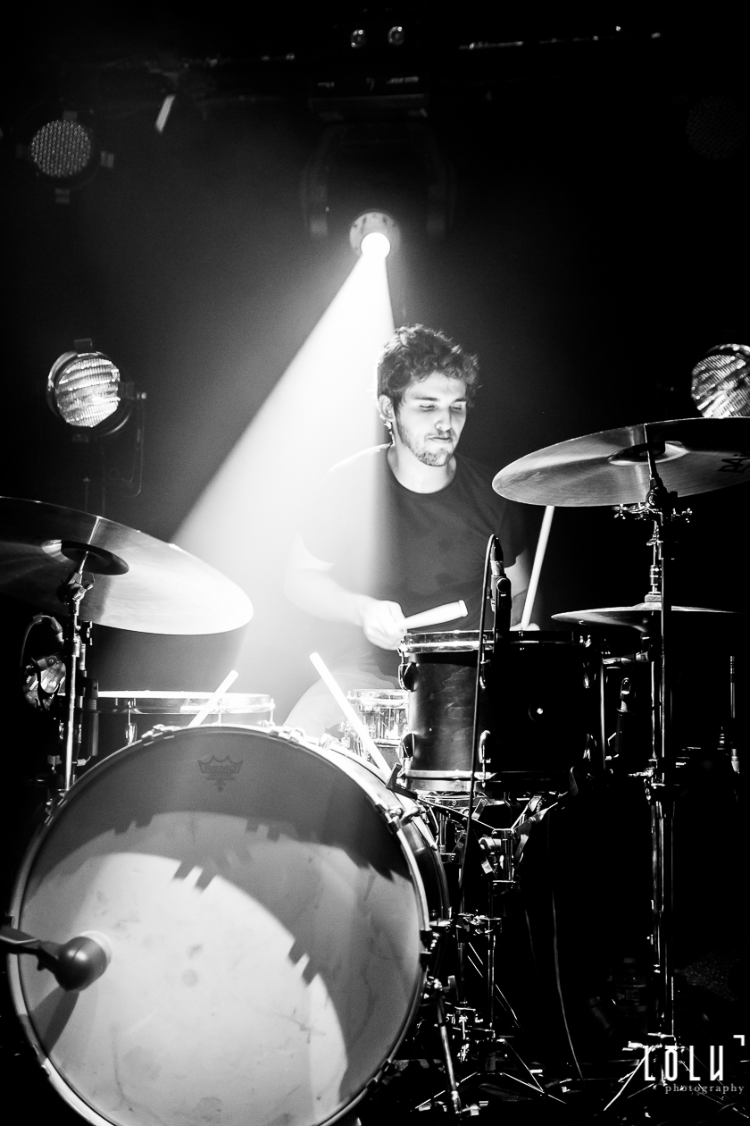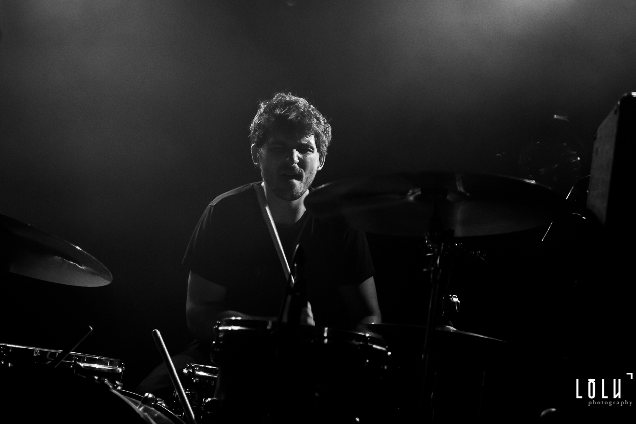 Après une petite pause, Last Train revient sur scène en compagnie d’Holy Two pour interpréter une reprise endiablée de Cold Fame de Band of Skulls. A fleur de peau, c’est d’un seul homme que se tiennent sur scène les deux groupes pour un très joli moment qui sera une belle introduction au point d’orgue de cette soirée : Fragile. Le quatuor se réunit autour de la batterie d’Antoine, à peine éclairée, comme une soirée au coin du feu. L’intimité et l’intensité du moment sont difficiles à décrire, c’est viscéral, je frissonne de plaisir, je me laisse porter par cette vague de folie qui m’envahit et je me sens tout bonnement heureuse de pouvoir ressentir de telles choses grâce à la musique. La belle termine le show en apothéose et après 1h30, lessivés et repus, les quatre Alsaciens quittent le navire, nous laissant lentement dériver vers une monde réel moins terme.