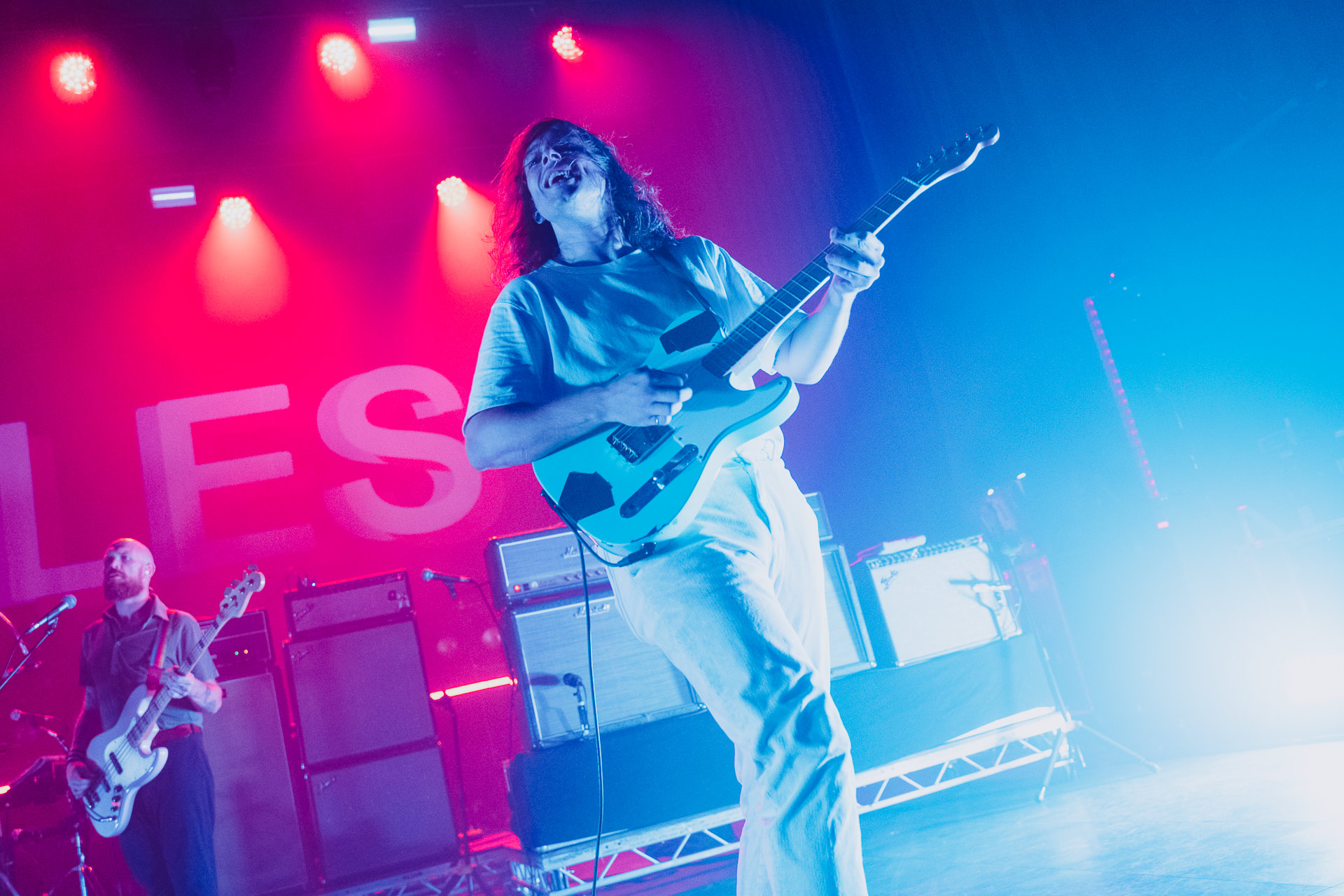 Arrivés devant la salle, on comprend qu’en rentrant, c’est quitte ou double. Soit y’a la clim’, soit on décède ! Alors on se donne du courage, on commande des bières et même du Coca. On s’évite égoïstement la fournaise potentielle de la première partie en se contentant de prier les Dieux. Mais il est enfin l’heure, Joe Talbot et sa bande vont entre sur scène dans une salle… Non climatisée. Que la sélection naturelle des plus résistants débute et que le sort vous soit favorable ! Bien évidemment, tout cela ne serait rien sans une salle bondée, un sold out de l’Enfer, 2000 personnes étaient en attente d’une revente de dernière minute sur Ticketswap.