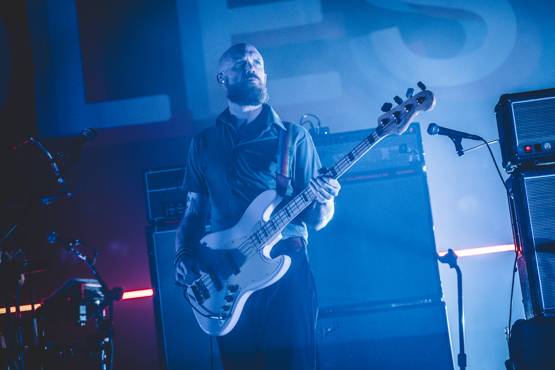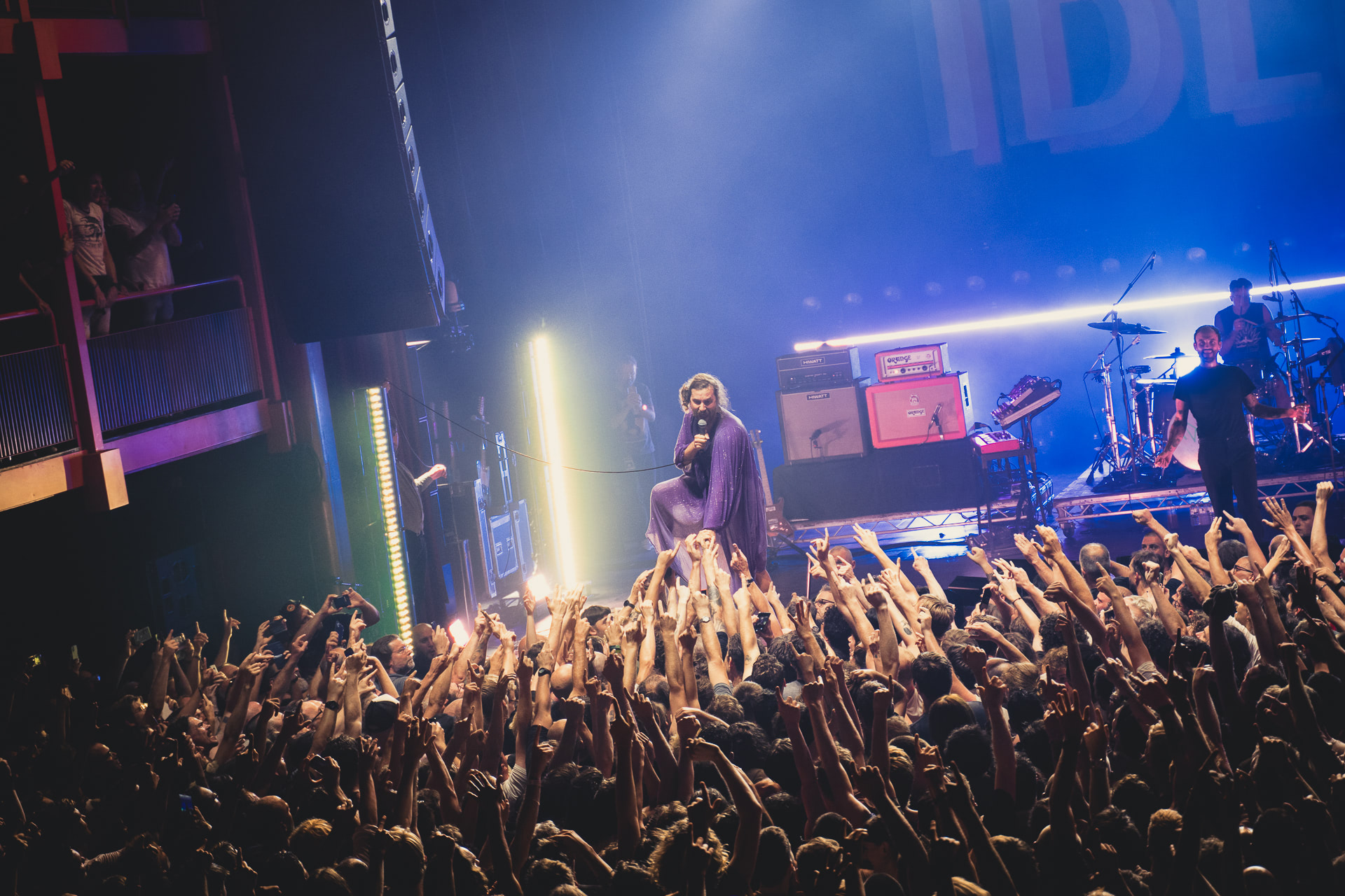 Les corps se collent, remuent au gré des « Divide & Conquer », « Never Fight A Man With A Perm » et si le single « The Beachland Ballroom » semble marqué une sorte de mi-temps de par son rythme plus lent, il n’en sera rien ! Le groupe, est chaud bouillant et mène la date d’une main de gastronome sur un poêlon de raclette brûlant ! Rien ne sera fait pour faire redescendre l’AB en mode sauna. Et si l’album « Crawler » aura marqué un pas dans le côté pain dans la gueule de la disco du groupe, on se surprend presque à kiffer et gueuler plus que prévu sur des titres comme « The Wheel » (« Can I get a hallelujah ? »), « Meds » ou encore l’imparable « Car Crash ». Oui, je suis ressorti de là en voulant réécouter en boucle « Crawler » alors que « Ultra Mono » m’avait mis la fièvre (« Grounds » et « War » en live, c’est un total OUI) !