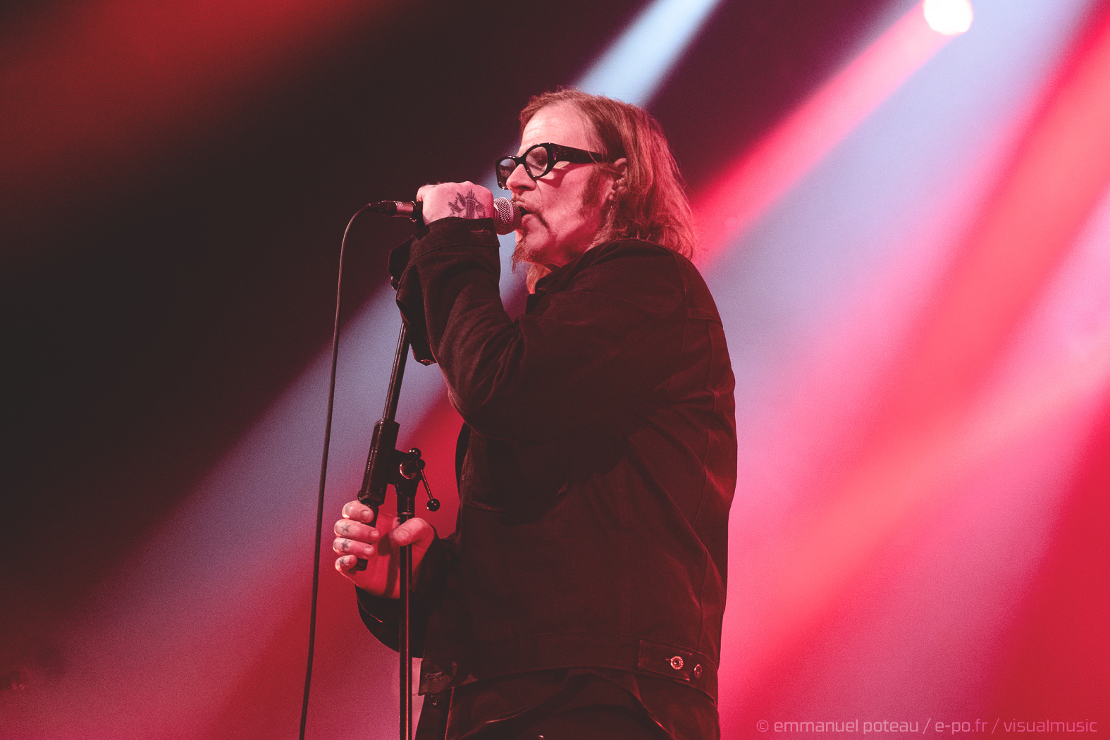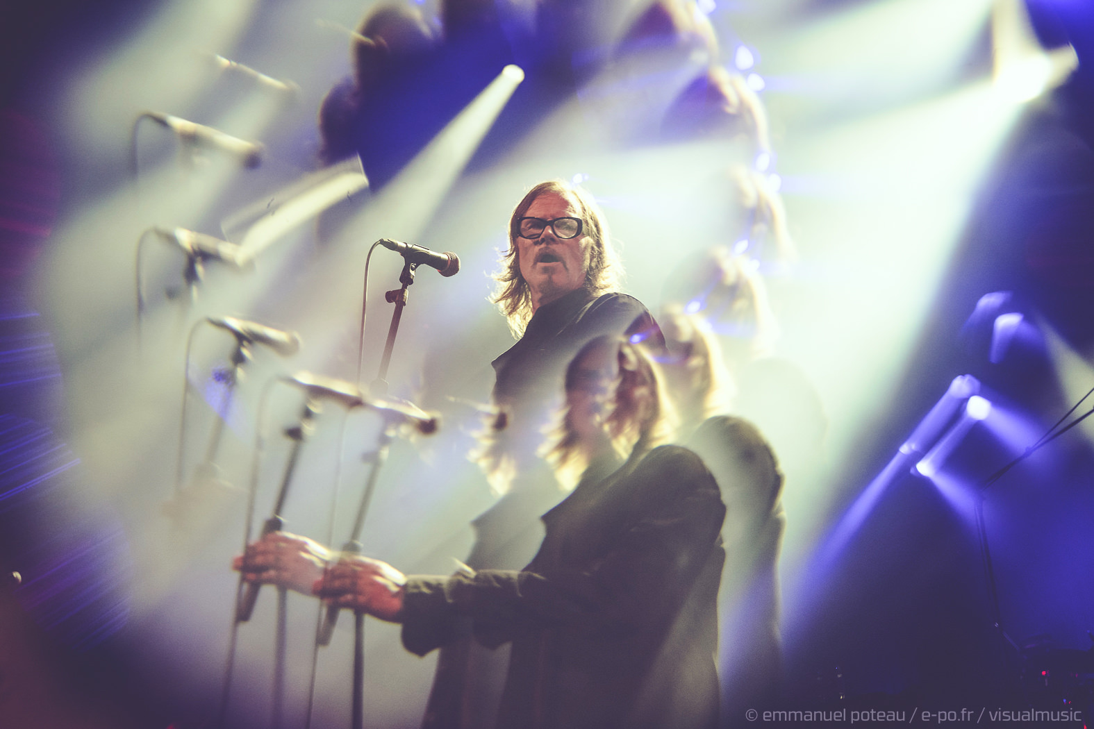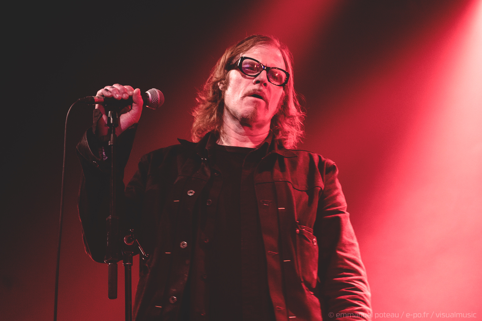 Soit ! On sort alors les cotillons, on gonfle les ballons, la fête est lancée. C’est ce que l’on a cru car si Mark aime faire l’andouille dans un clip, sur scène, il aime surtout se fondre dans le décor car c’est un roc, une muraille impassible à vous faire pleurer un clown d’anniversaire. S’il pouvait jouer toutes lumières éteintes, je pense qu’il le ferait. On ne va pas lui nier ce droit, Maynard James Keenan cultivant lui-même ce type de prestation scénique. Mais si ce second propose aussi un show, le premier n’en fait rien et d’entendre dans le public « quand même Mark Lanegan, c’est le seul artiste qui semble se faire chier à ses concerts ». Et ce n’est pas la bande de fans remontés comme un vendredi soir (on est mercredi) qui le déridera. Le concert semble donc mené pied au plancher mais le souci des vieilles muscle cars, c’est qu’il faut parfois savoir repérer les bons millésimes et malheureusement, Lanegan va tout de même décevoir car le dernier millésime musical n’est pas forcément son plus réussi. Sa discographie étant assez éclectique, cela peut aboutir à un show assez inégal, les compos électro que semblent kiffer le grand frontman ne sont pas, à mon humble avis, ses meilleures compositions (« Dark Disco Jeg », « Ode To Sad Disco » et leurs rythmiques passéistes qui lui font pourtant, FOLIE, taper du pied).
