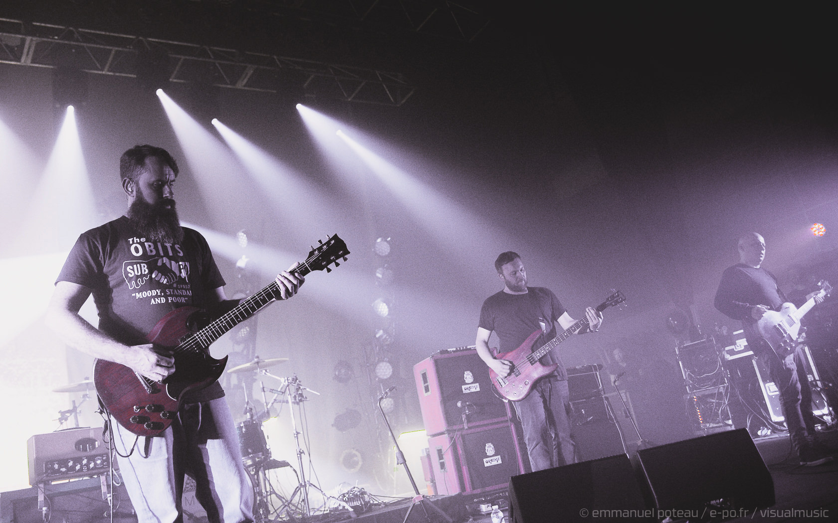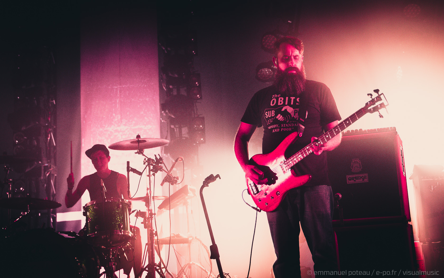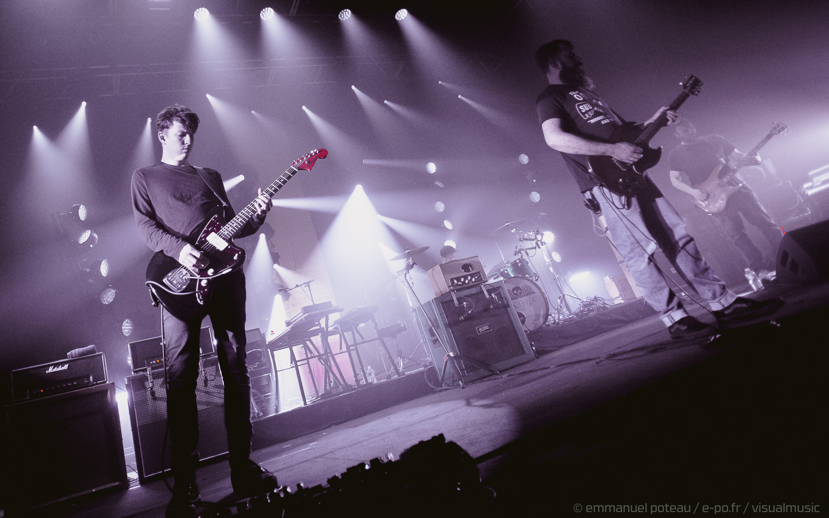Difficile donc de ne pas se laisser subjuguer par des morceaux que l’on pourrait voir s’étirer encore et encore et encore tant leur évolution se fait naturellement, ce n’est pas pour rien que ce soir, l’orga aura prévenu les photographes qu’il faut agir les « 10 premières minutes » en lieu et place de l’éternel « 3 chansons sans flash ». Et pourtant, voilà ! Malgré tout, il faut une fin et la formation n’a pas à rougir en livrant ici 1h30 de set tout en tension enivrante et achevé par un dantesque « We’re No Here » laissant l’un de ses guitaristes seul sur scène, ses comparses quittant la scène tour à tour, pendant que lui fait triture son instrument d’effets en tout genre, comme si ce passage était destiné à mettre un terme à ce chapitre musical éphémère, comme si la musique qui y avait été interprétée ne pouvait plus exister et se devait de rester entre nous, le temps d’une soirée pour disparaitre et persister dans nos mémoires.