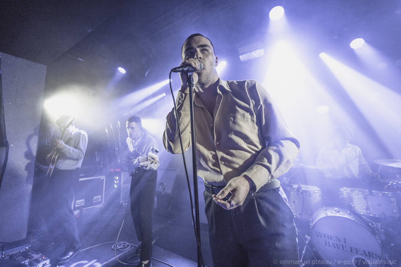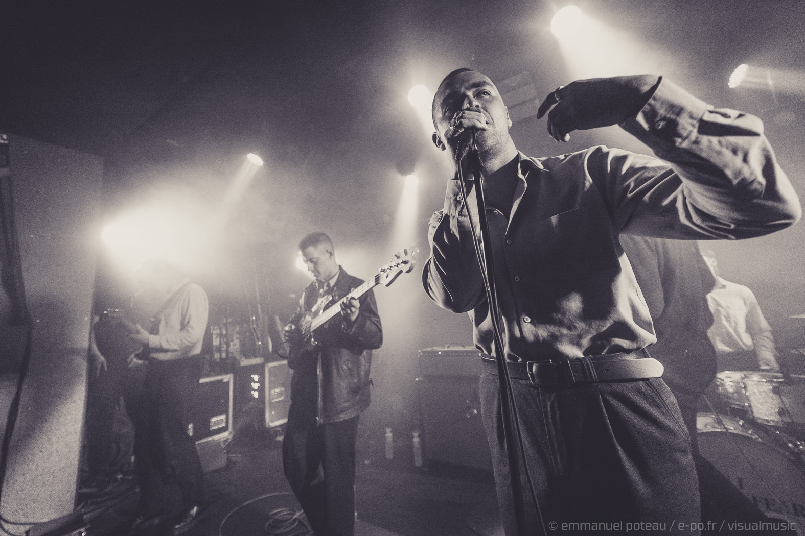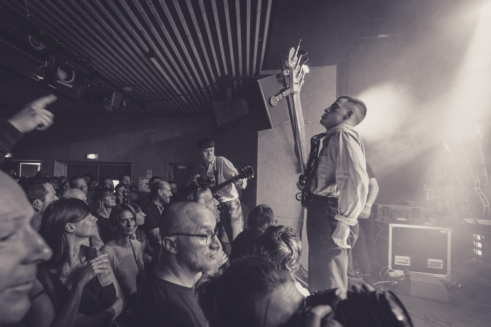 Et on suit. On suit McGovern et son groupe sur des terres torturées à la Joy Division et on résiste difficilement à la montée maitrisée, cette tension suspendue de « Green & Blue ». Résister, ne pas plier. Encore et toujours. Alors on s’accroche. On avance. Sans rechigner. « More is Less » sonne la charge, McGovern gueulant à tout va « More, more, more, More is less, more is less » devant un public désormais chaud bouillant, pogotant devant la scène. Les lumières tamisées des premiers titres ont laissé place aux lumières franches, aux descentes du frontman et des musiciens au sein même du public. Aller au contact, résister, ne pas plier. Résister et affronter. More, more, more. Se réapproprier l’espace. Se réapproprier un Dublin bouffé par les AirBnB et autres hôtels de touristes. Se réapproprier le pouvoir. Au paroxysme du rageur « Feeling Fades », plus rien ne retient le groupe, McGovern porté par le public, s’accroche aux spots suspendus d’une salle en fusion pendant que les musiciens s’acharnent sur leurs instruments.