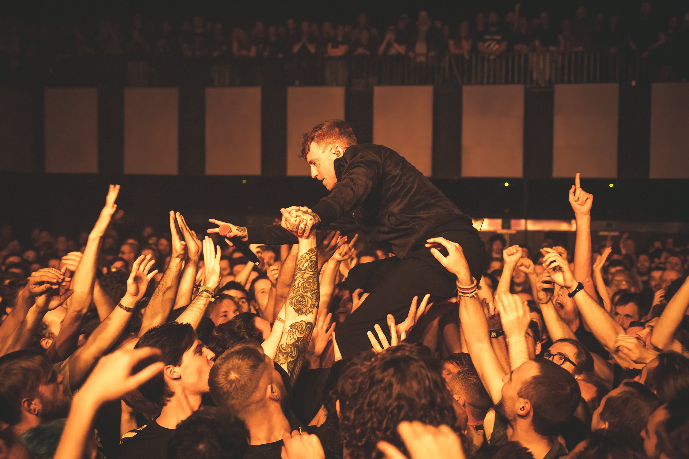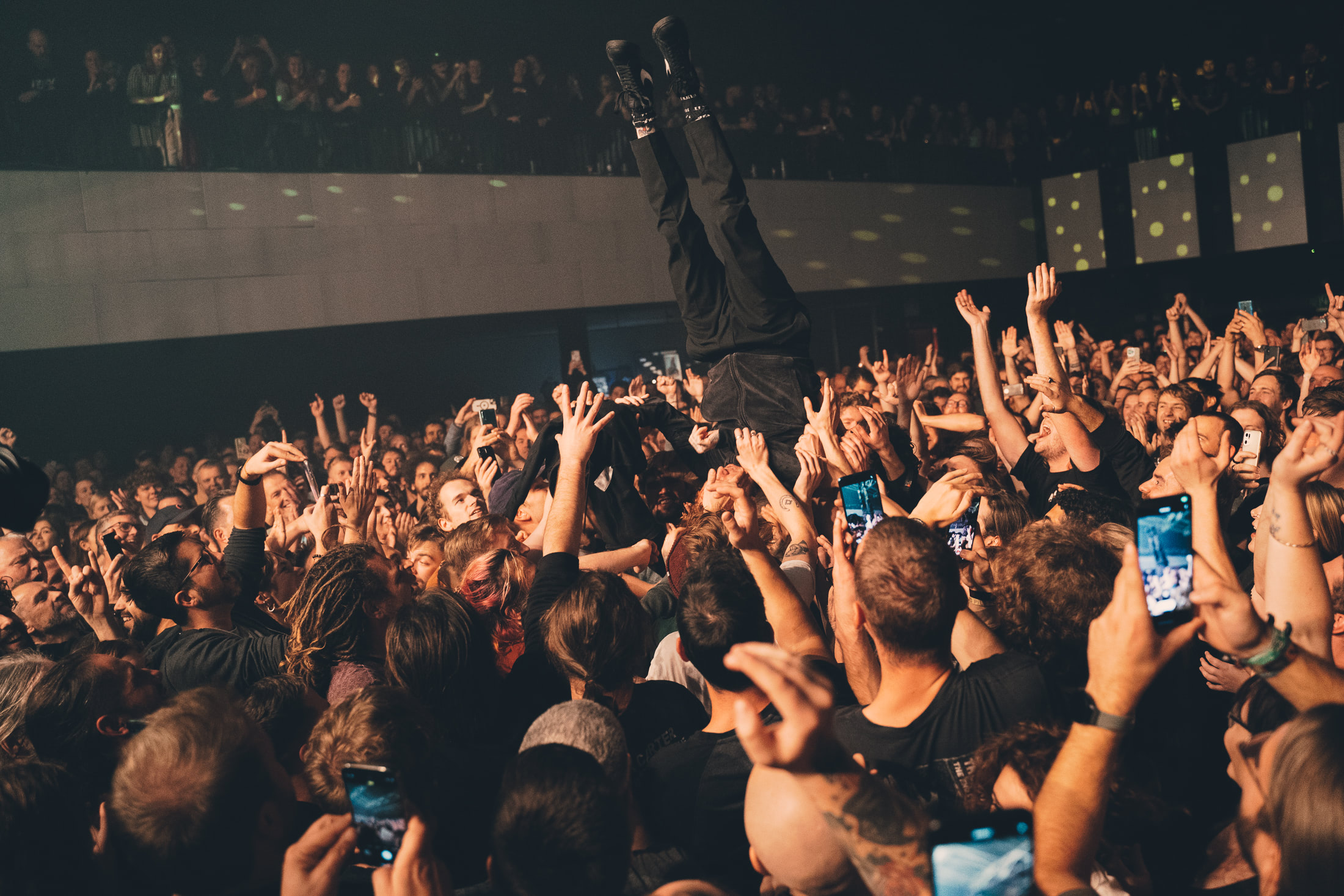 De passage avec une nouvelle tournée, Frank Carter et ses Rattlesnakes nous avaient donné rendez-vous dans la capitale belge avec une salle plutôt méconnue pour les frontaliers, la Madeleine. 1h20 de route plus tard, nous voici dans ce lieu à deux pas de la Grand Place avec sa scène atypique, cernée de deux grands escaliers.