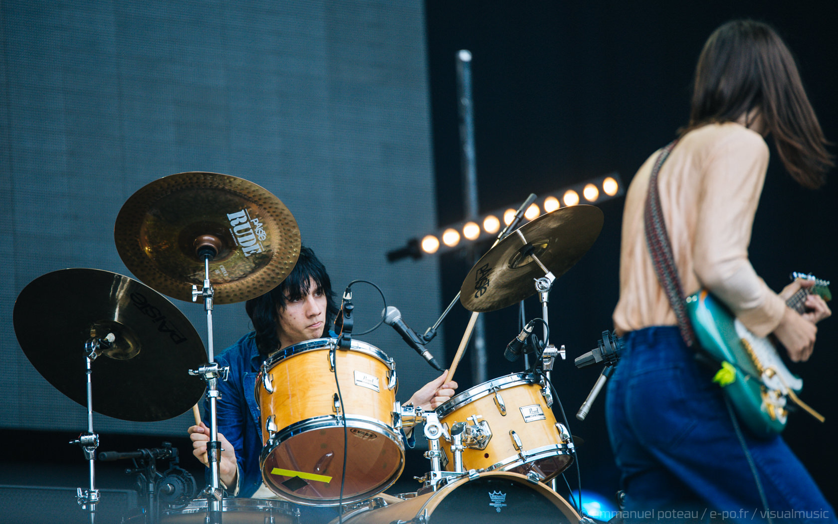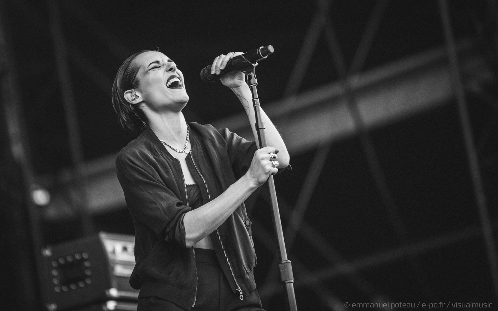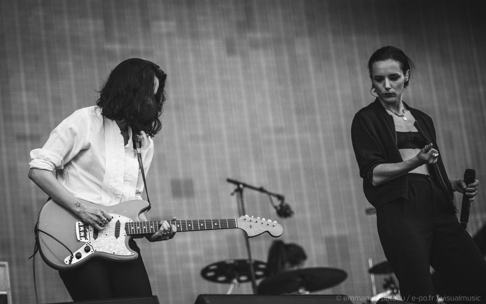 Malgré les nombreuses têtes d’affiche, un groupe avait des exigences photos précises, la Femme, j’ai donc préféré faire un break pour me poser un peu et puis de toute façon, la Femme, on aime ou on déteste apparemment. Au mieux, cela m’a laissé indifférent alors je nous ai rendus service, j’ai préféré attendre les Naive New Beaters qui, eux, bénéficient d’une véritable réputation live. Complètement délirants, les Naive New Beaters claqueront sûrement le concert le plus fun du jour, c’est rigolo, ça ne se prend clairement pas au sérieux et les refrains vous rentrent tout seuls dans la tête. Même si le public aura mis un peu de temps à suivre le rythme imposé par le groupe français, on peut dire que la formation fera vite « chalouper » la Green Room avec ses titres, sa bonne humeur et ses animations scéniques. Retour sur la Main Stage avec Charlotte pour un autre groupe très attendu et dont la réputation en live n’est plus à faire, Savages !