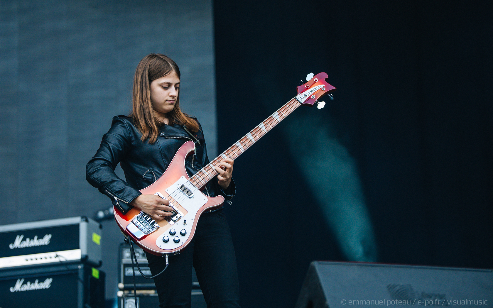 Elle impressionne le public et celui-ci semble conquis, moi la première. N’hésitant pas même à se jeter dans le public, Jenny marche sur le festival, sur le public (coucou Frank Carter). Les textes que l’on comprend sont beaux, « Adore Life » est un superbe hymne à la vie. Le set plein de fougue se termine par un speech sur « la musique qui nous sauve » et elle entonne un dernier morceau « Fuckers », dédicacé aux fuckers de terroristes. [NDRoss : Pour l’anecdote, le contraste n’en était que plus violent en espace VIP où les mecs regardaient affalés sur de gros coussins et écran géant la performance tout en muscles -musicaux- de la formation 100% féminine].