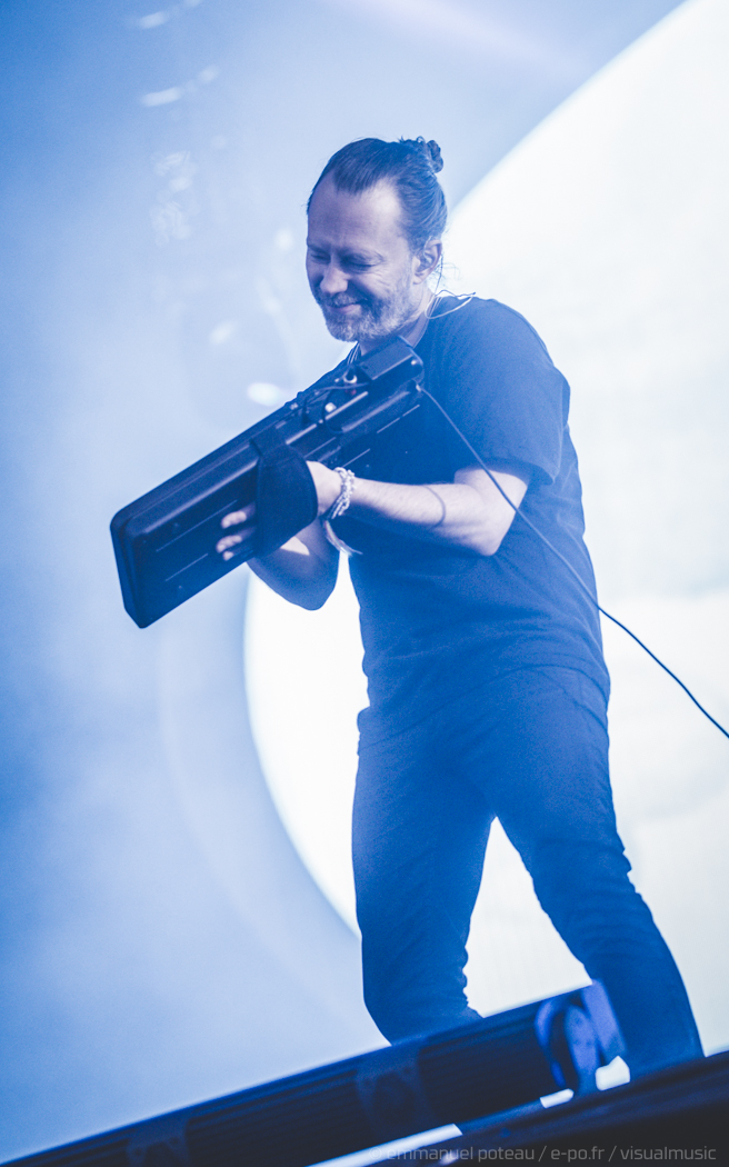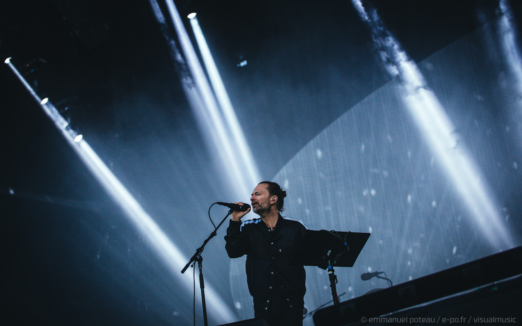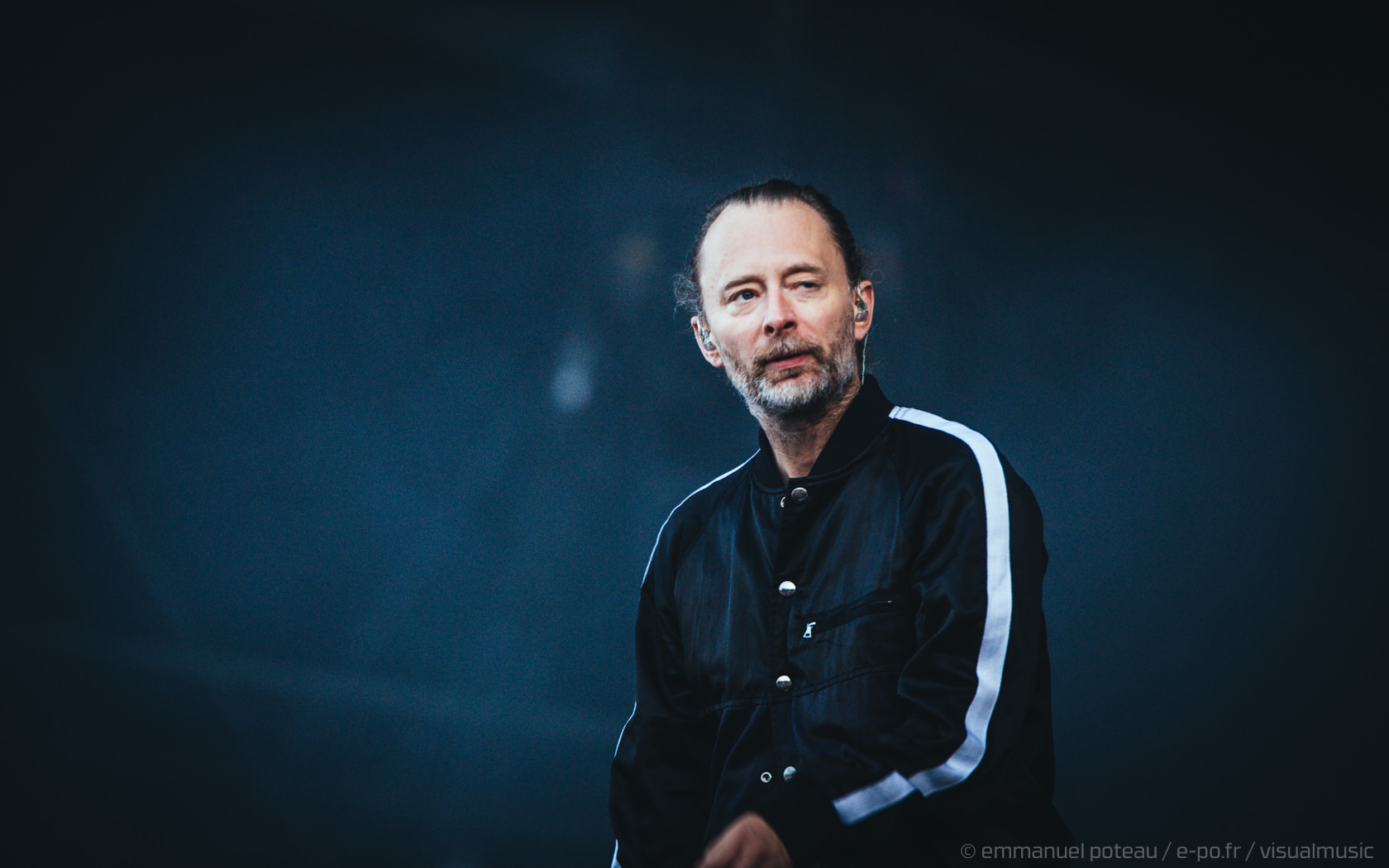 Avouons au passage que le groupe aura quelque peu désarçonné un public pas forcément connaisseur, avec des titres moins fédérateurs pour un festival « All I Need », « Videotape », « Let Down » ou encore « Bloom » dont l’enchainement portera quelque peu l’attention du public dans… Un autre lieu, je pense. J’ai trouvé ça pénible de voir des gens tourner le dos à la scène pour taper des discut’ improbables alors que Yorke est seul sur scène et que l’on pouvait s’attendre à un accueil plus respectueux. Difficile de comprendre ce qui aura coincé ce soir avec ce concert car en n’étant pas parmi les fans du groupe, je dois dire que j’ai trouvé le groupe ultra, carré, ultra pro, on ne peut clairement pas nier que le groupe s’appuie sur une incroyable expérience et exigence scéniques qui poussent même Yorke à écourter un titre car incapable d’atteindre le timbre de voix voulu.