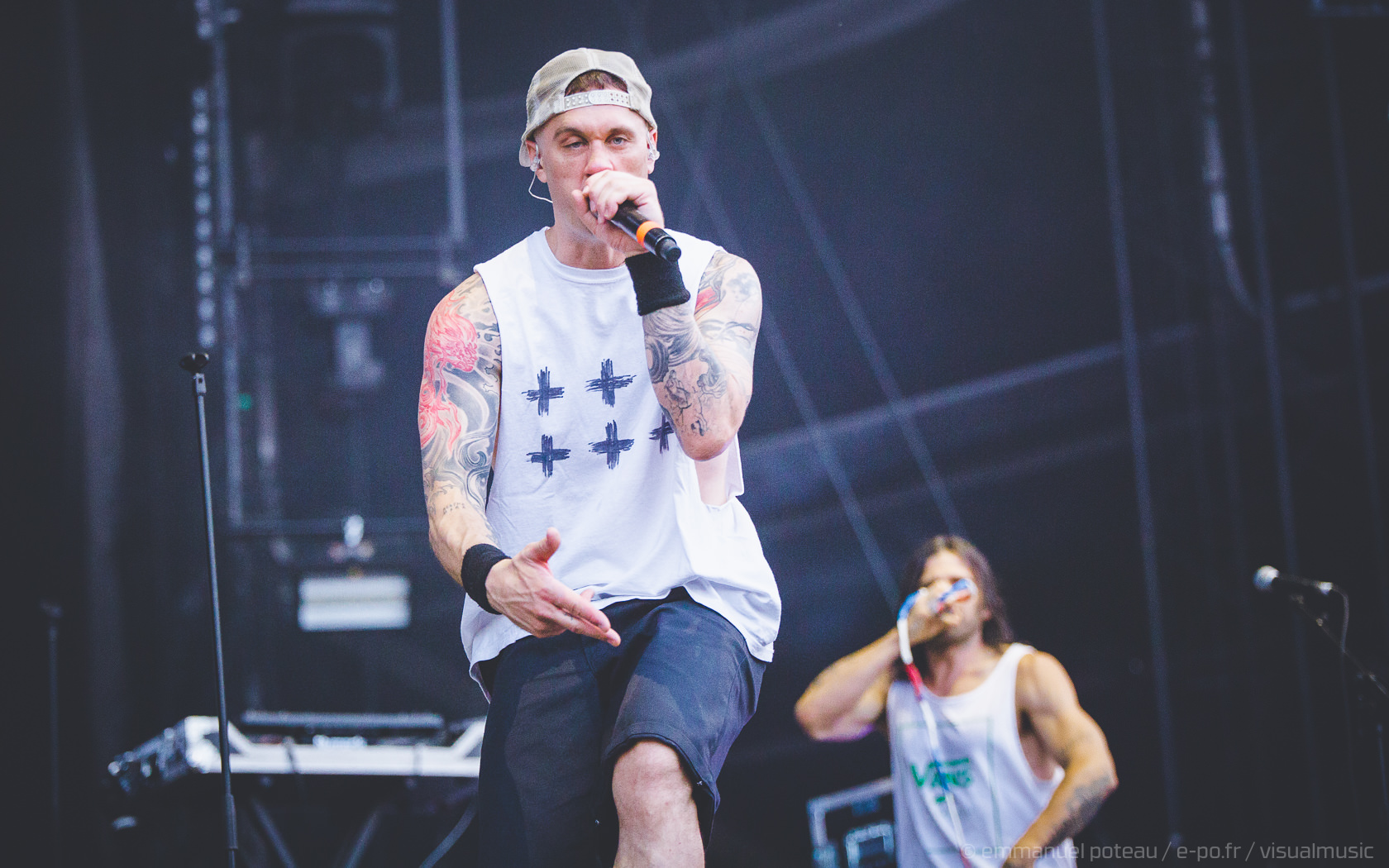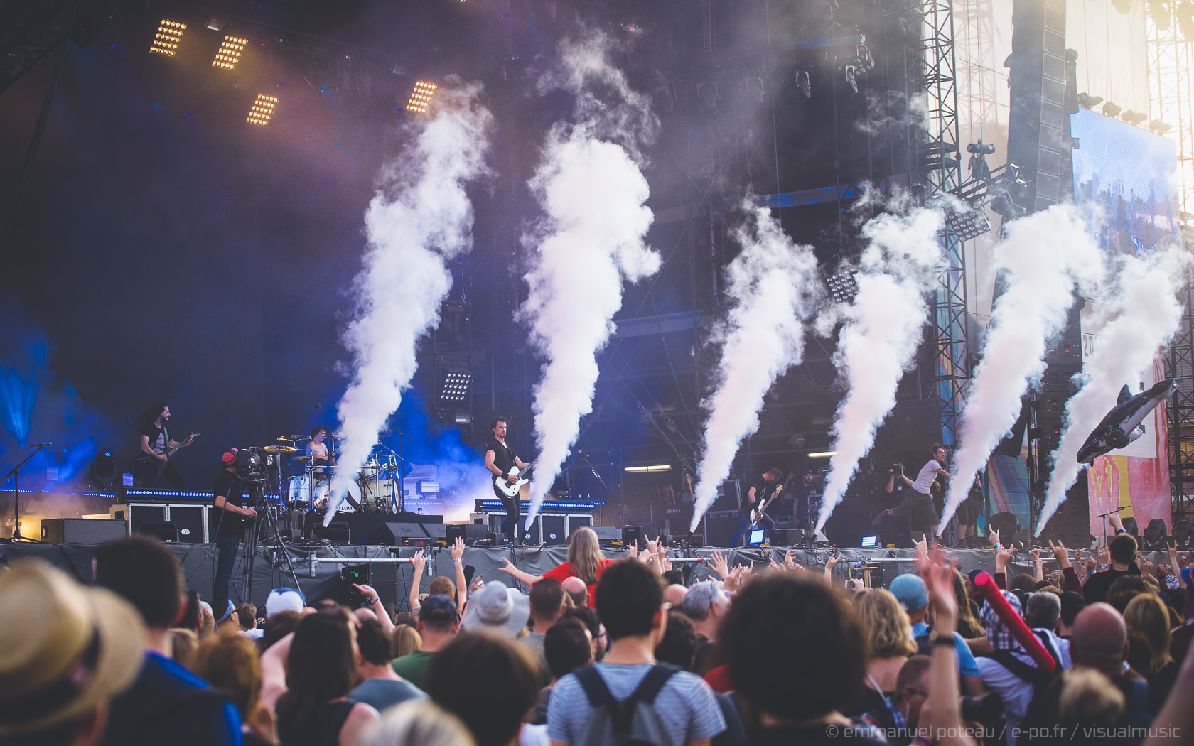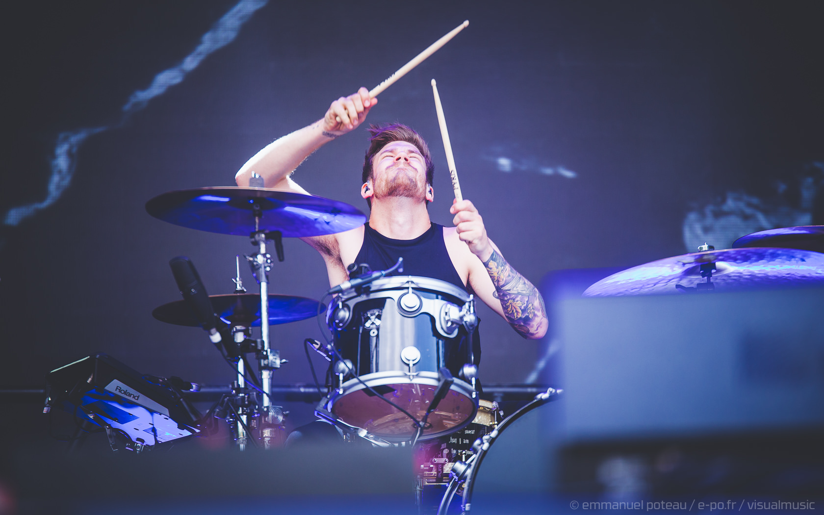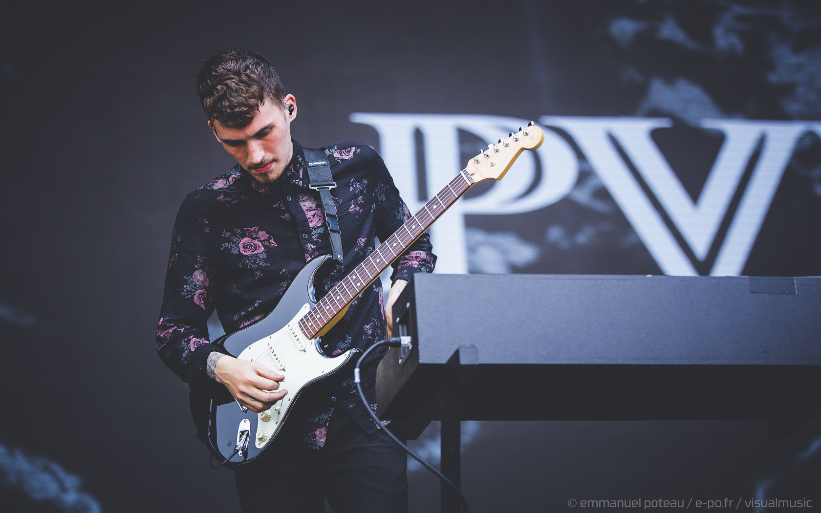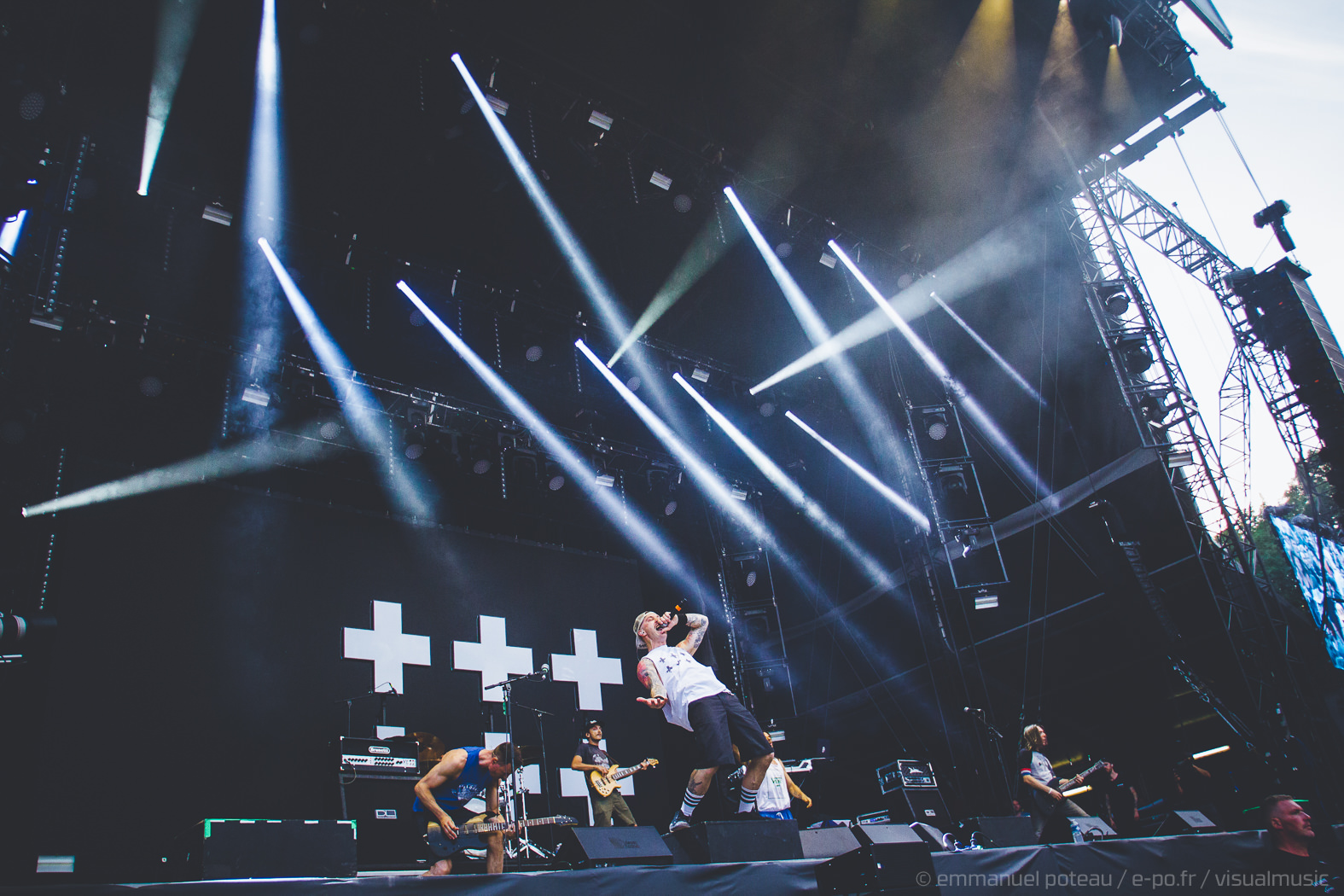 Ce sont donc les américains de PVRIS (ndlr : prononcez « Parisse ») qui ouvre les hostilités ! Emmenés par leur chanteuse aux cheveux blonds décolorés mais à la voix cristalline, Lynn Gunn. D’apparence frêle et fragile, elle va vite révéler son jeu de scène, demandant au public de les accompagner en frappant dans les mains pour mettre tout le monde d’accord sur le plan vocal. Quelle coffre ! Quelle énergie ! Ça saute de partout dans le public (plutôt jeune). Vous l’aurez compris, cette apparente timidité est littéralement mise de côté dès qu’il s’agit de pousser la voix et d’enchaîner les morceaux rock/électro toujours plus puissants… Plaisant et une belle manière d’entamer ce festival.