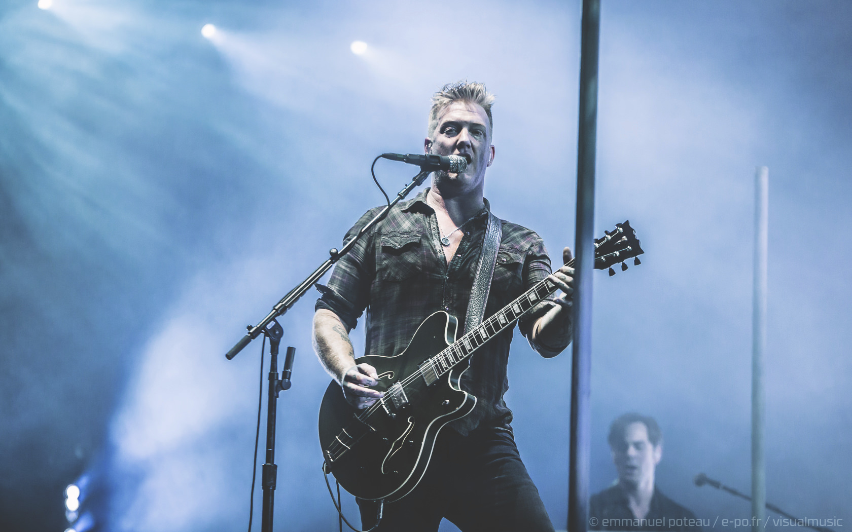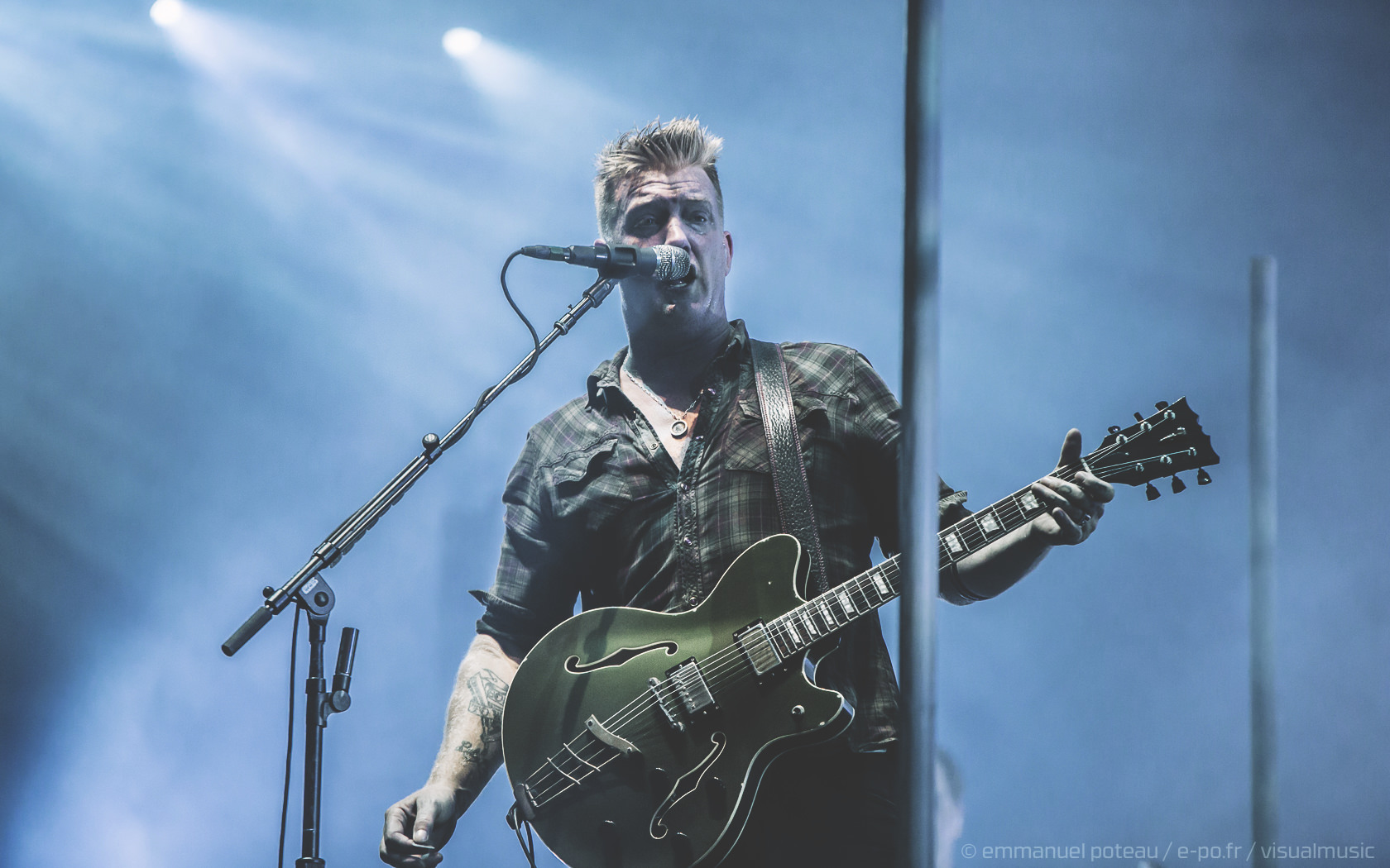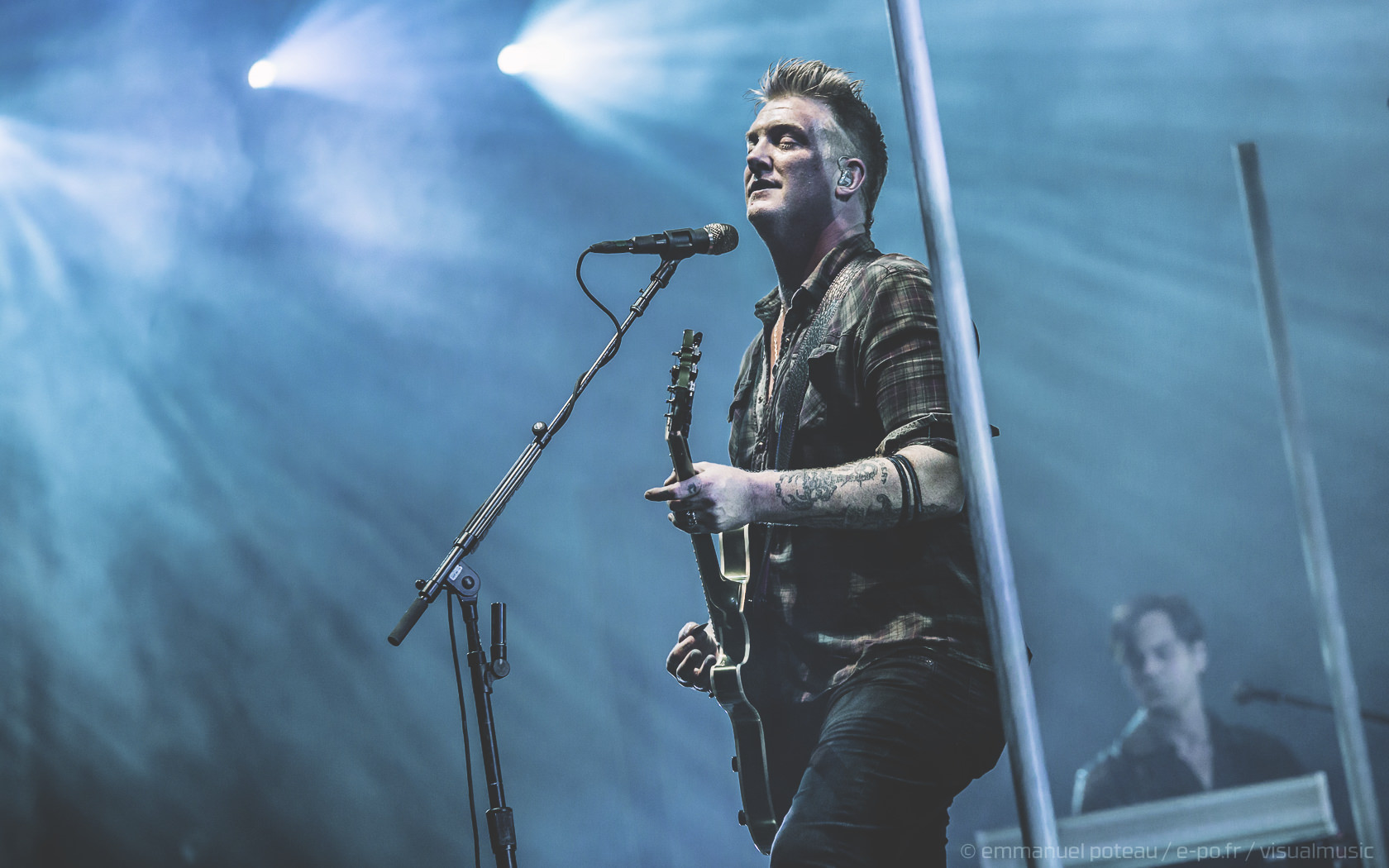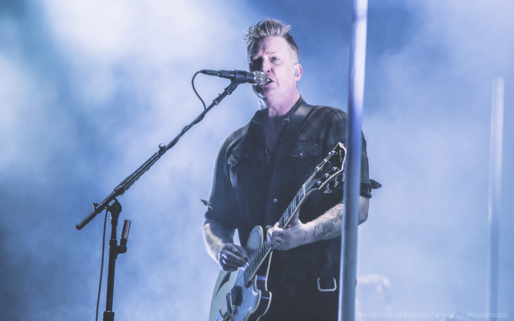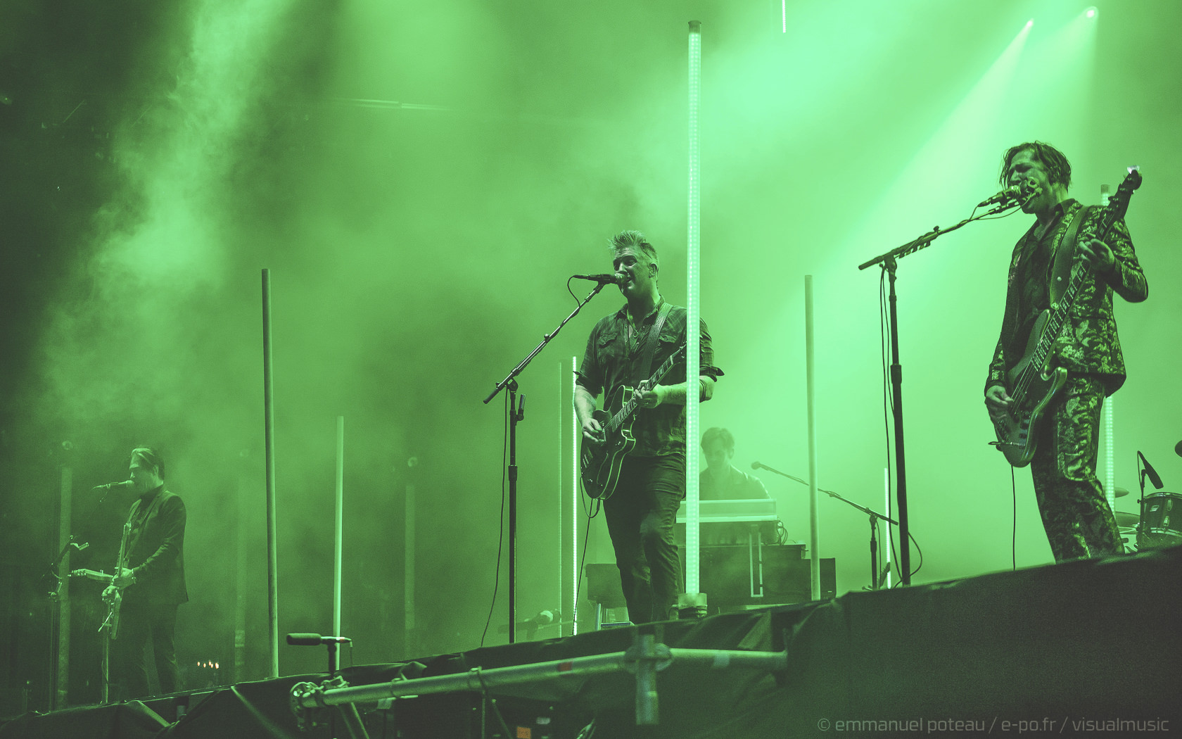 La tête d’affiche. La Citadelle est pleine pour voir la référence rock du moment. Des costards pour Troy Van Leeuwen et Michael Schumann à la basse, la grande claaaasse… Qui tous les 2 crachent sur scène… Ça, c’est moins classe. Et ce Josh, quel dégaine ! On ne peut que se dandiner comme lui (ou Elvis, au choix) et on ne s’en lasse pas. On en prend plein la tronche ! Du bon son mais aussi des jeux de lumières de dingue ! Un véritable feu d’artifice avant l’heure (visuel et sonore). Les lumières sont parfaitement synchro avec le son et se calent parfaitement sur les solos… Le groupe ne déçoit pas malgré les craintes justifiées et hantant encore les plus anciens fans (mémoire de concerts foirés il y a encore quelques années) !