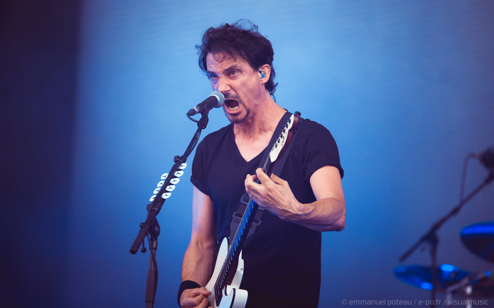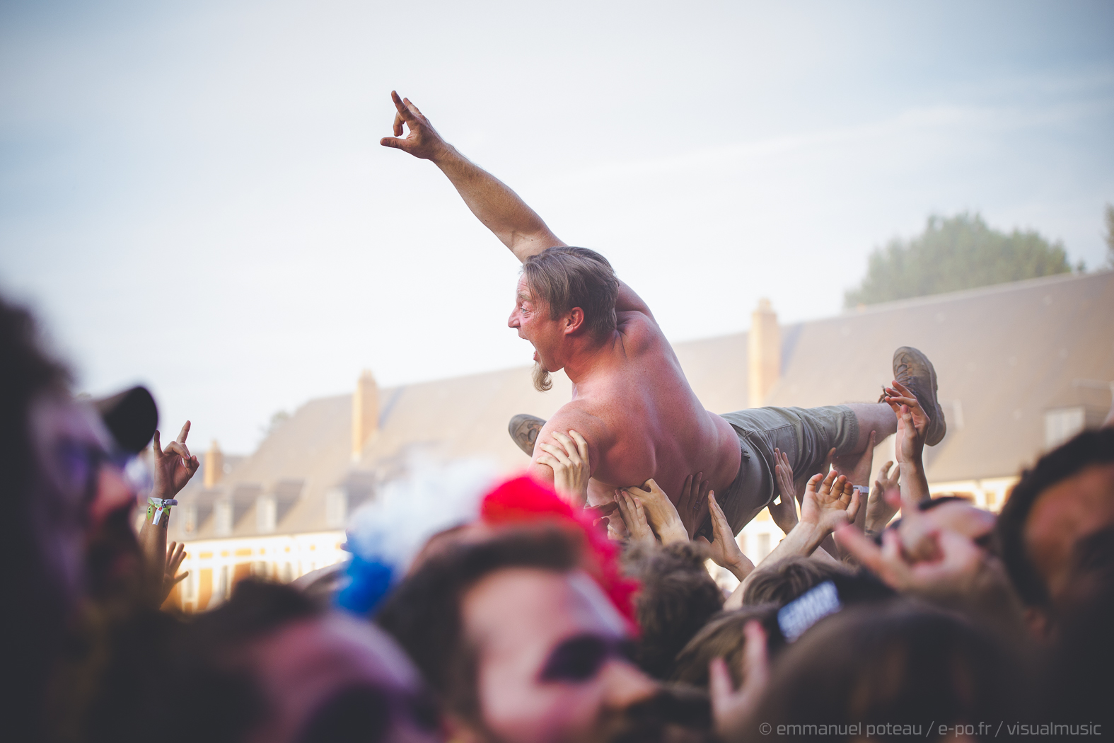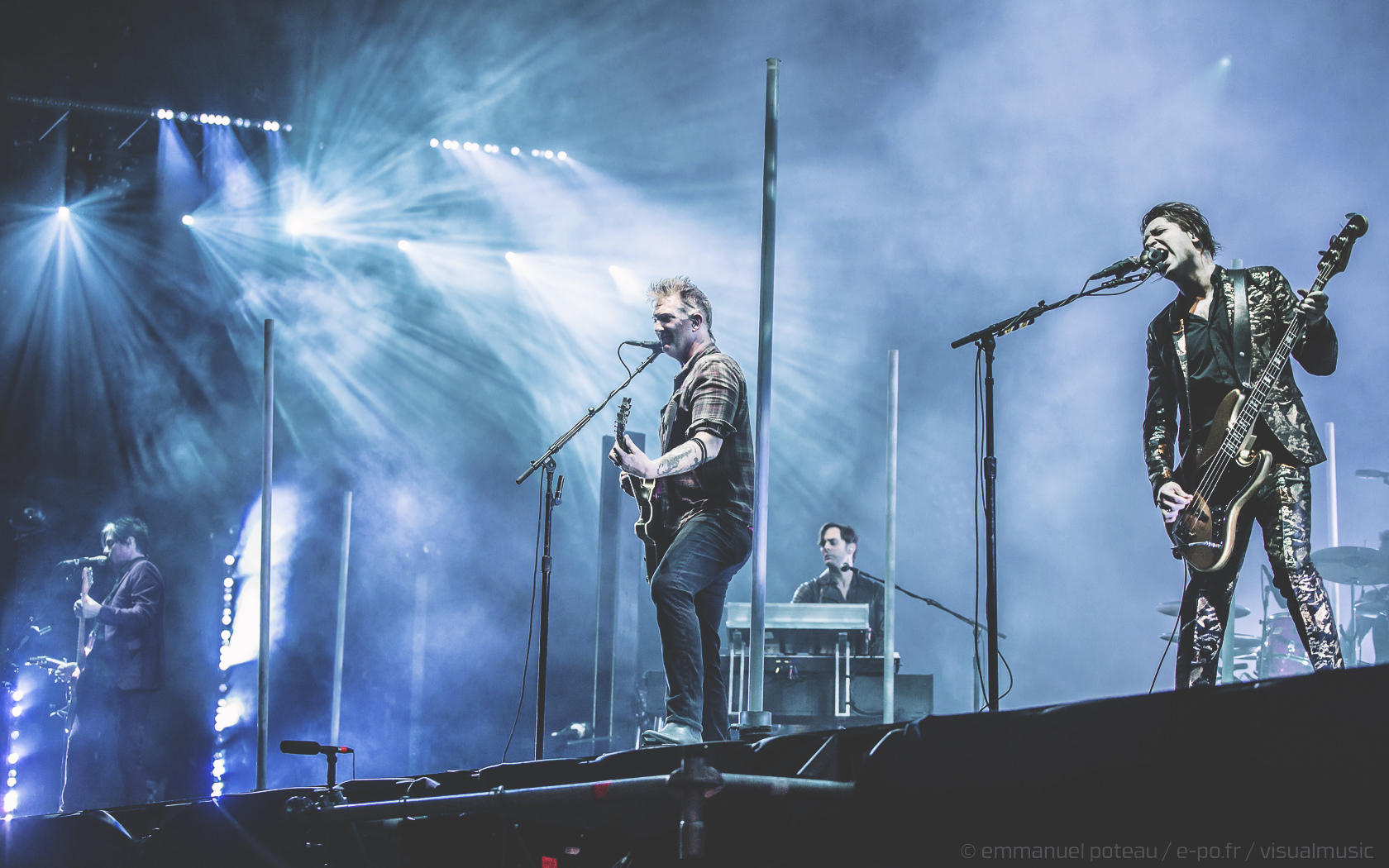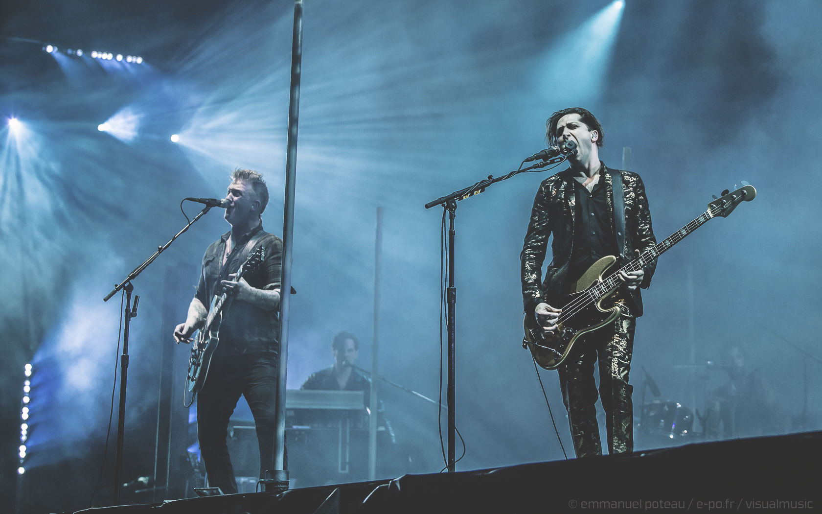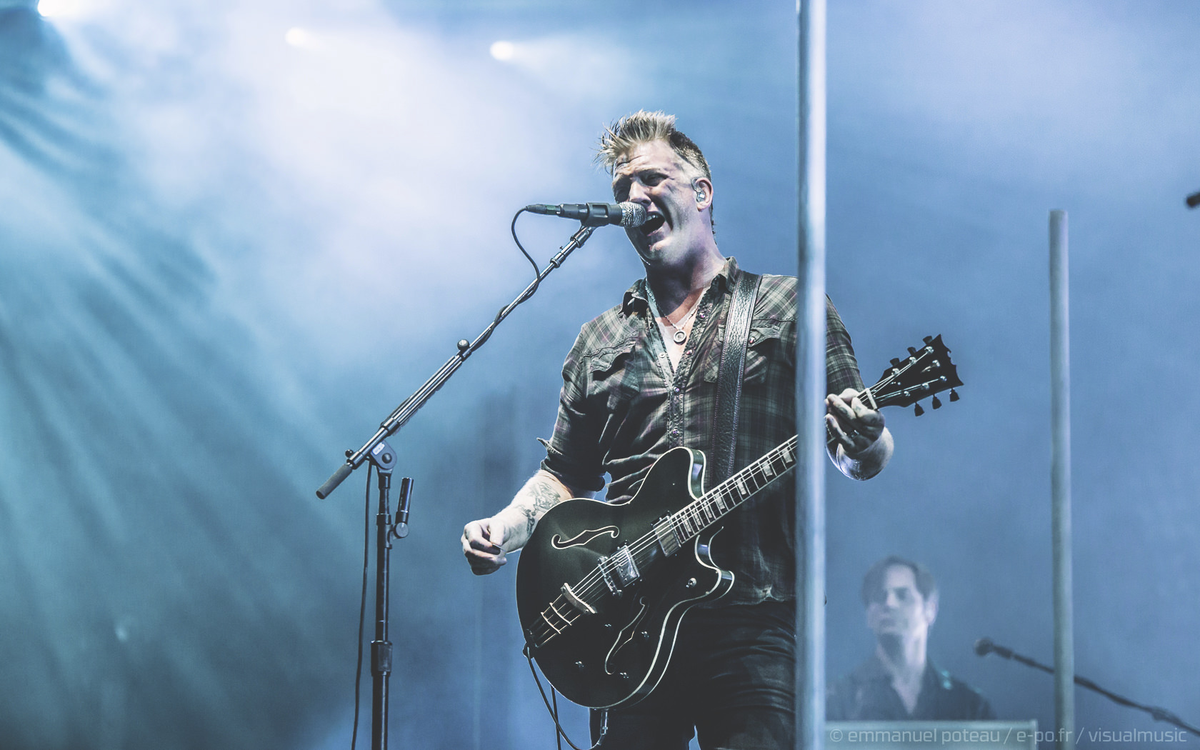 La tête d’affiche. La Citadelle est pleine pour voir la référence rock du moment. Des costards pour Troy Van Leeuwen et Michael Schumann à la basse, la grande claaaasse… Qui tous les 2 crachent sur scène… Ça, c’est moins classe. Et ce Josh, quel dégaine ! On ne peut que se dandiner comme lui (ou Elvis, au choix) et on ne s’en lasse pas. On en prend plein la tronche ! Du bon son mais aussi des jeux de lumières de dingue ! Un véritable feu d’artifice avant l’heure (visuel et sonore). Les lumières sont parfaitement synchro avec le son et se calent parfaitement sur les solos… Le groupe ne déçoit pas malgré les craintes justifiées et hantant encore les plus anciens fans (mémoire de concerts foirés il y a encore quelques années) !