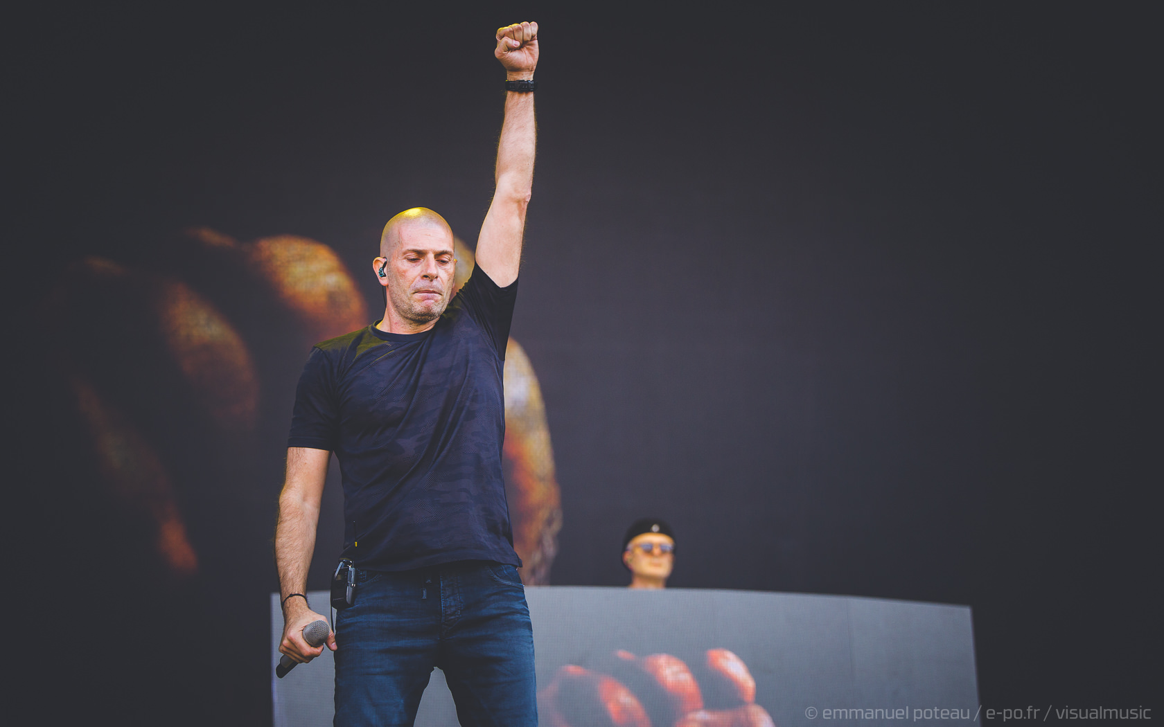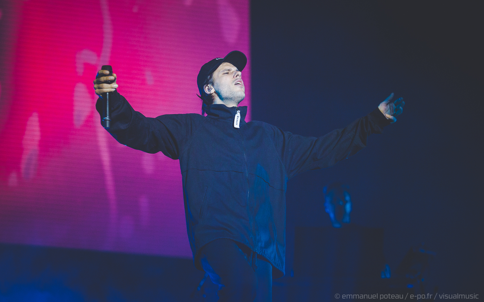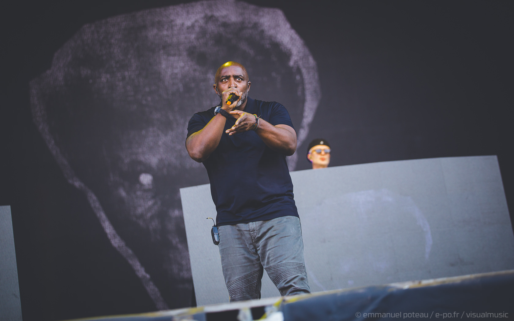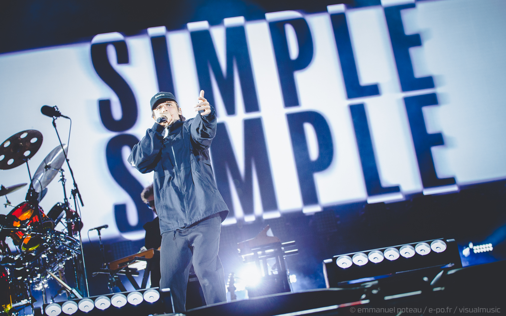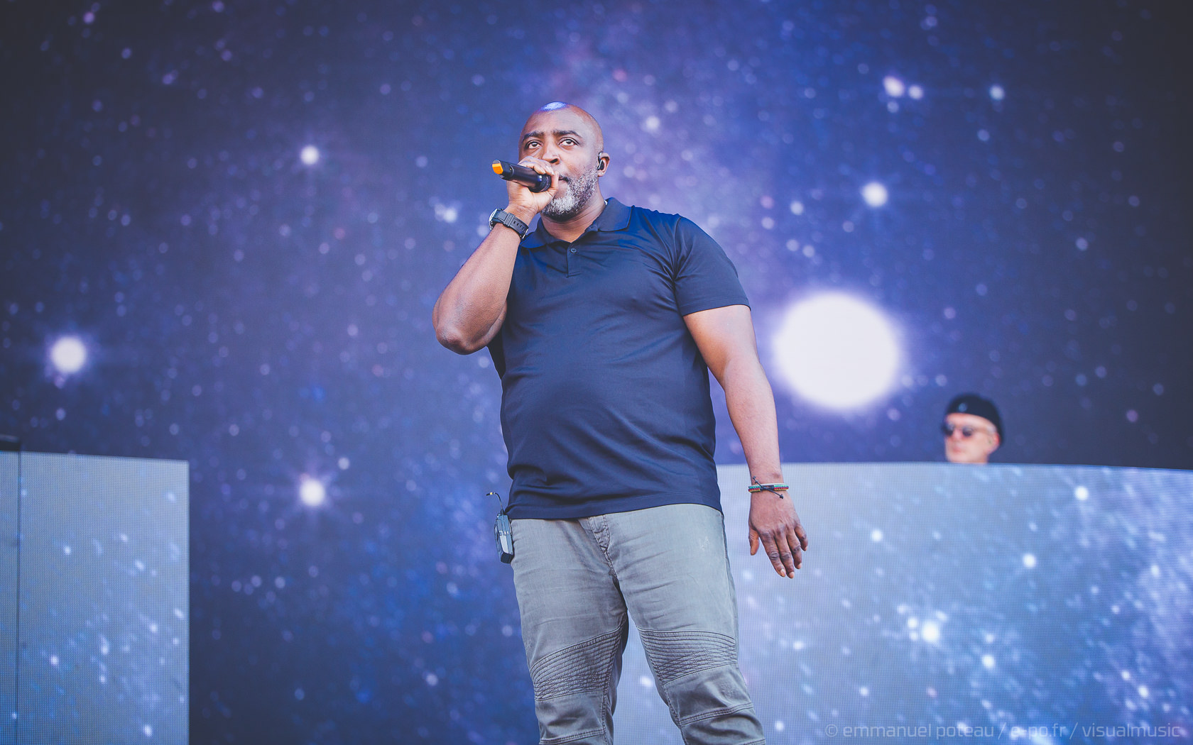 La vraie tête d’affiche, ce n’était pas uniquement Jamiroquai mais aussi Orelsan vu l’énorme foule massée devant les barrières de la main stage ! La même scène et on a presque l’impression que le matos prévu pour le rappeur français est encore plus important mais en fait, pas vraiment, c’est aussi comparable avec de gros écrans et des musiciens dispatchés un peu partout sur l’énorme scène du festival. Puis apparait Orelsan, en jogging noir, simple, basique.