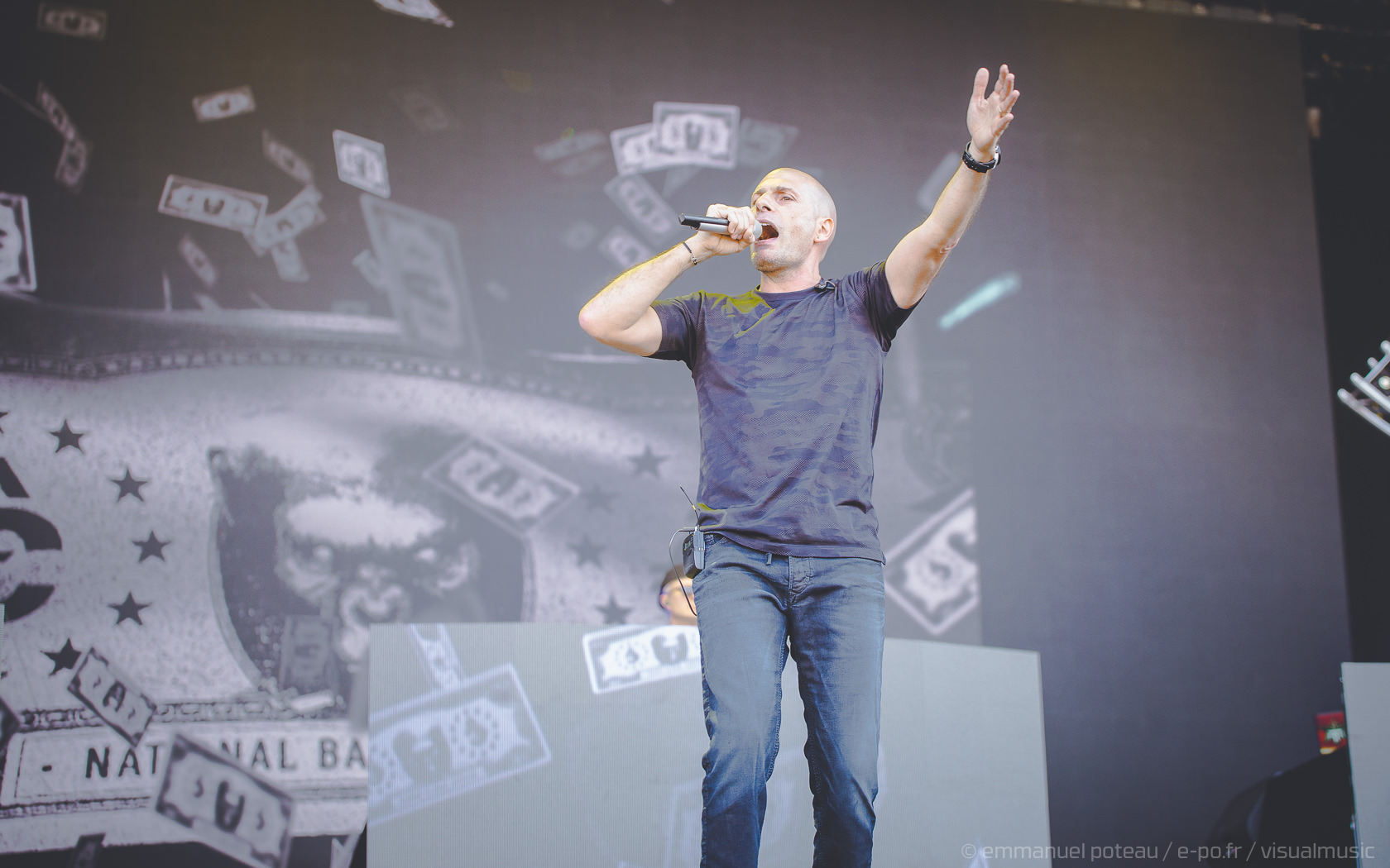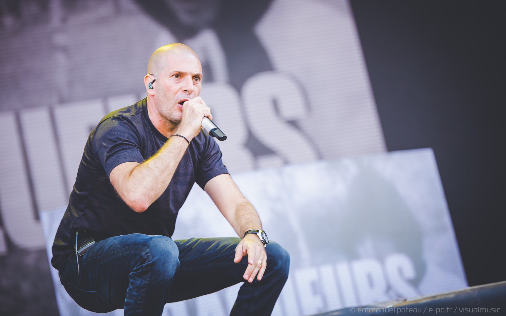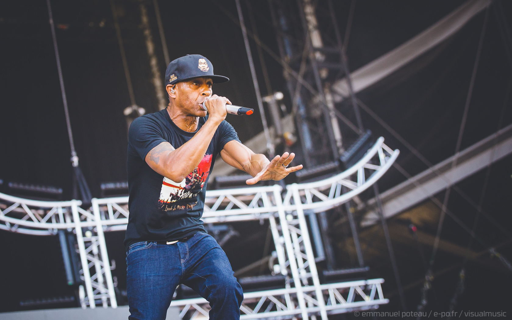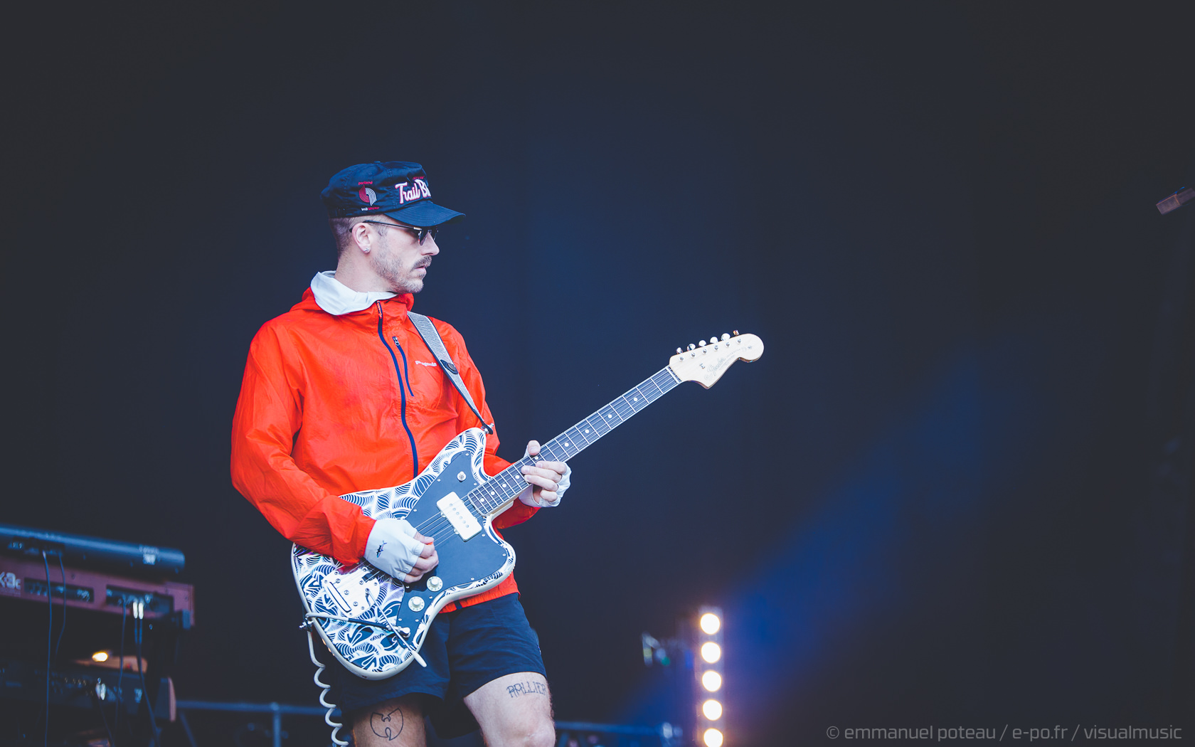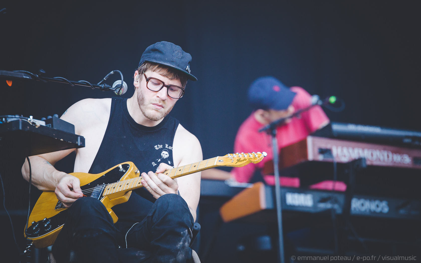 La vraie tête d’affiche, ce n’était pas uniquement Jamiroquai mais aussi Orelsan vu l’énorme foule massée devant les barrières de la main stage ! La même scène et on a presque l’impression que le matos prévu pour le rappeur français est encore plus important mais en fait, pas vraiment, c’est aussi comparable avec de gros écrans et des musiciens dispatchés un peu partout sur l’énorme scène du festival. Puis apparait Orelsan, en jogging noir, simple, basique.