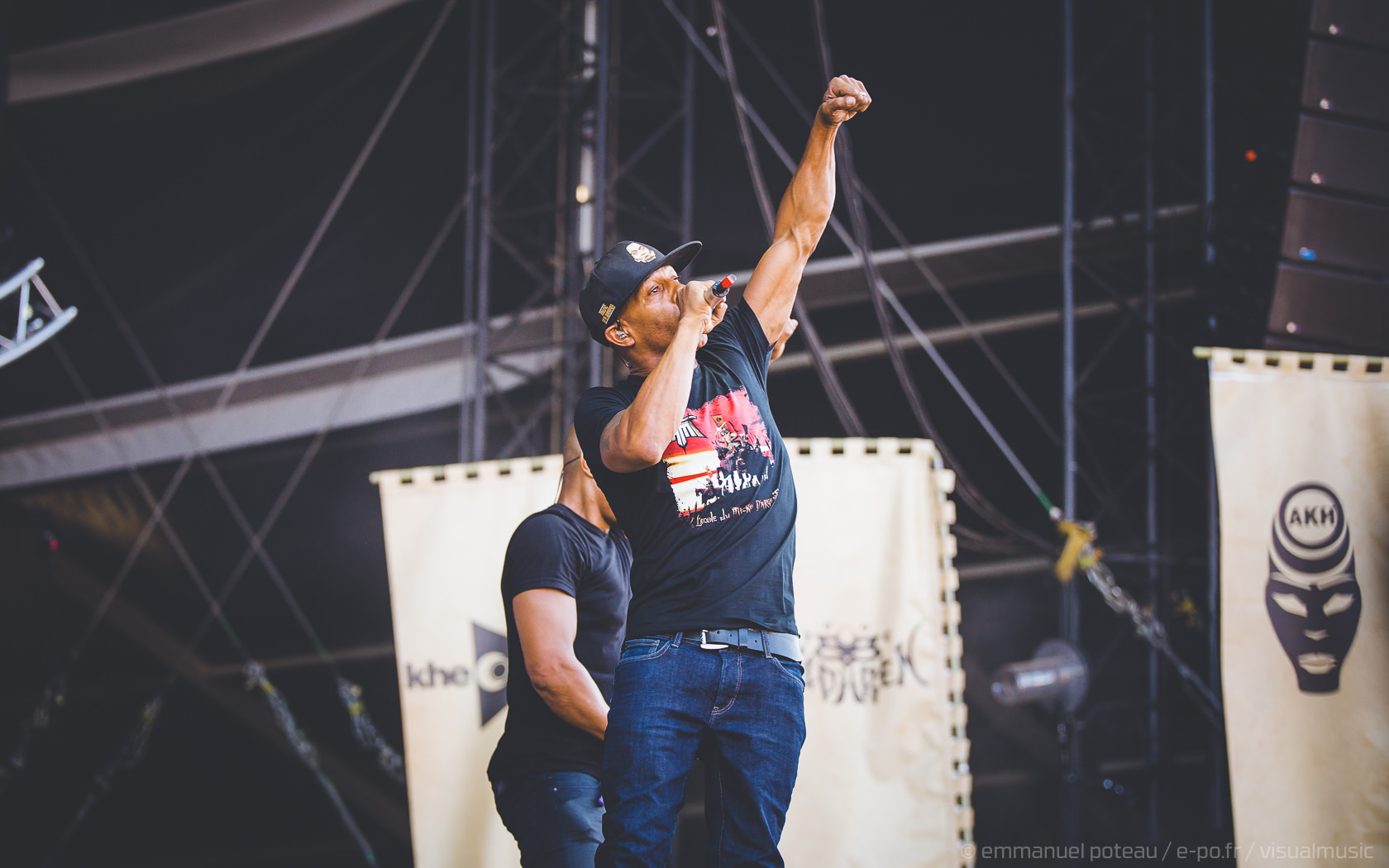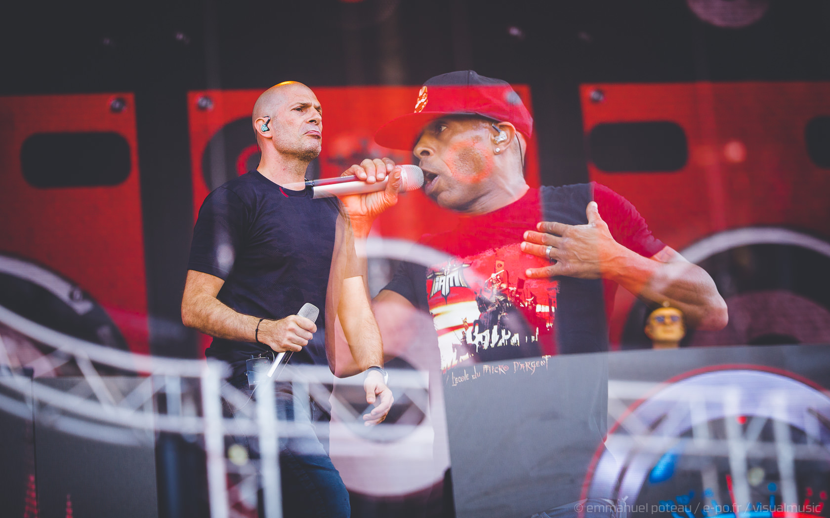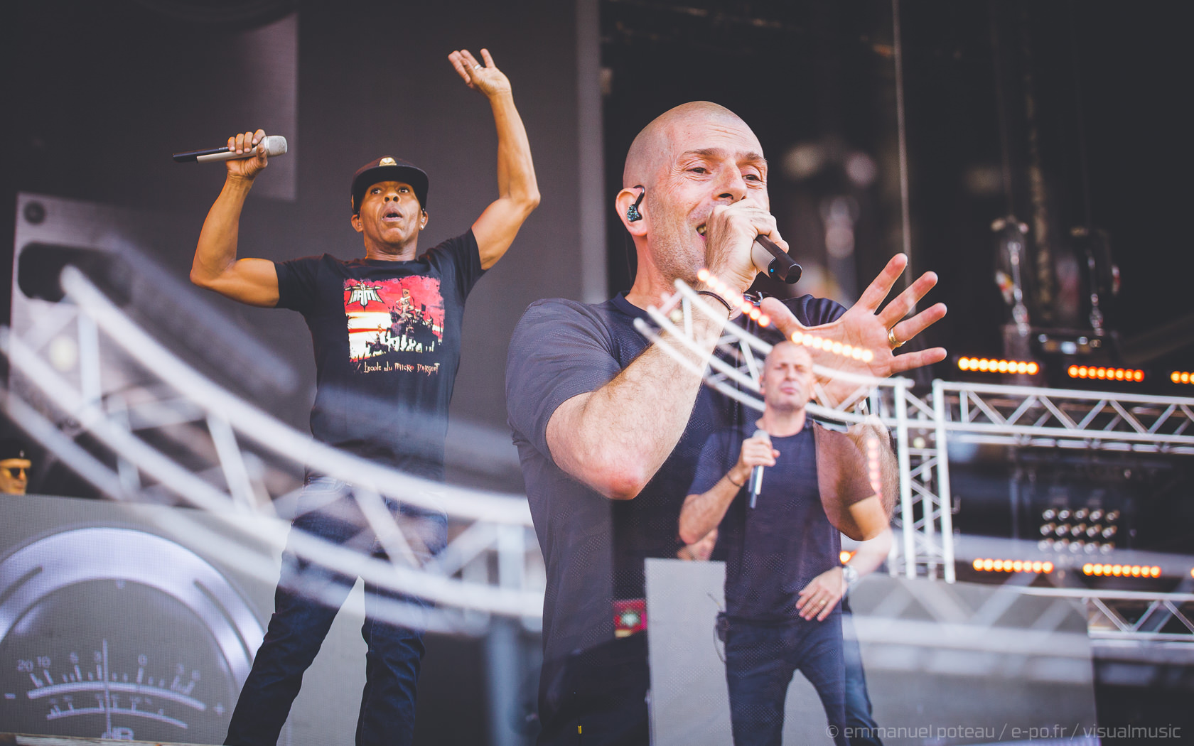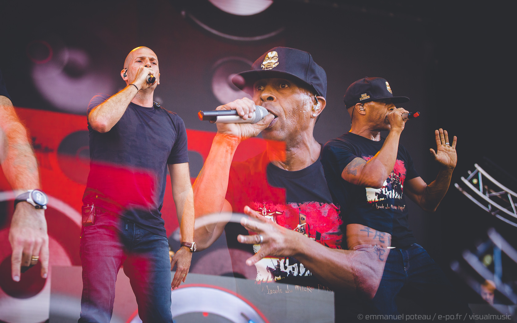 D’énormes consoles de mix, 4 rappeurs sur scène, ambiance samouraï avec intro sur fond d’histoire de conflit nippon, IAM ne fait pas les choses à moitié sur la Main Stage du festival. Il faut dire que le groupe marseillais est là pour fêter les 20 ans du disque « L’École du Micro d’Argent » et la foule est clairement demandeuse à voir le nombre de personnes reprenant les titres du groupe. Apparus sous un masque de samouraïs, vestes de cuir noir et rouge à l’abri des torii lumineux, les rappeurs tombent vite le masque pour livrer une interprétation énergique de leurs plus gros titres « Nés sous la même étoile », « petit frère », tout y passe. » Si tu ne viens pas à Marseille, c’est Marseille qui viendra a toi » pour lancer l’incontournable MIA samplé sur « Gimme the night » de Kool & TheGang. Et là, ça y va, ça se trémousse, personne ne peut s’empêcher de bouger pieds, bras et même… Bassins ! Une vibe qui vous envahit doucement, en souvenir du bon vieux temps… IAM se paiera même un petit délire sur le titre « Monnaie de Singe » à base de projections de (faux) billets en monnaie de singe pour le titre. Effet réussi et un anniversaire dignement fêté par la formation.