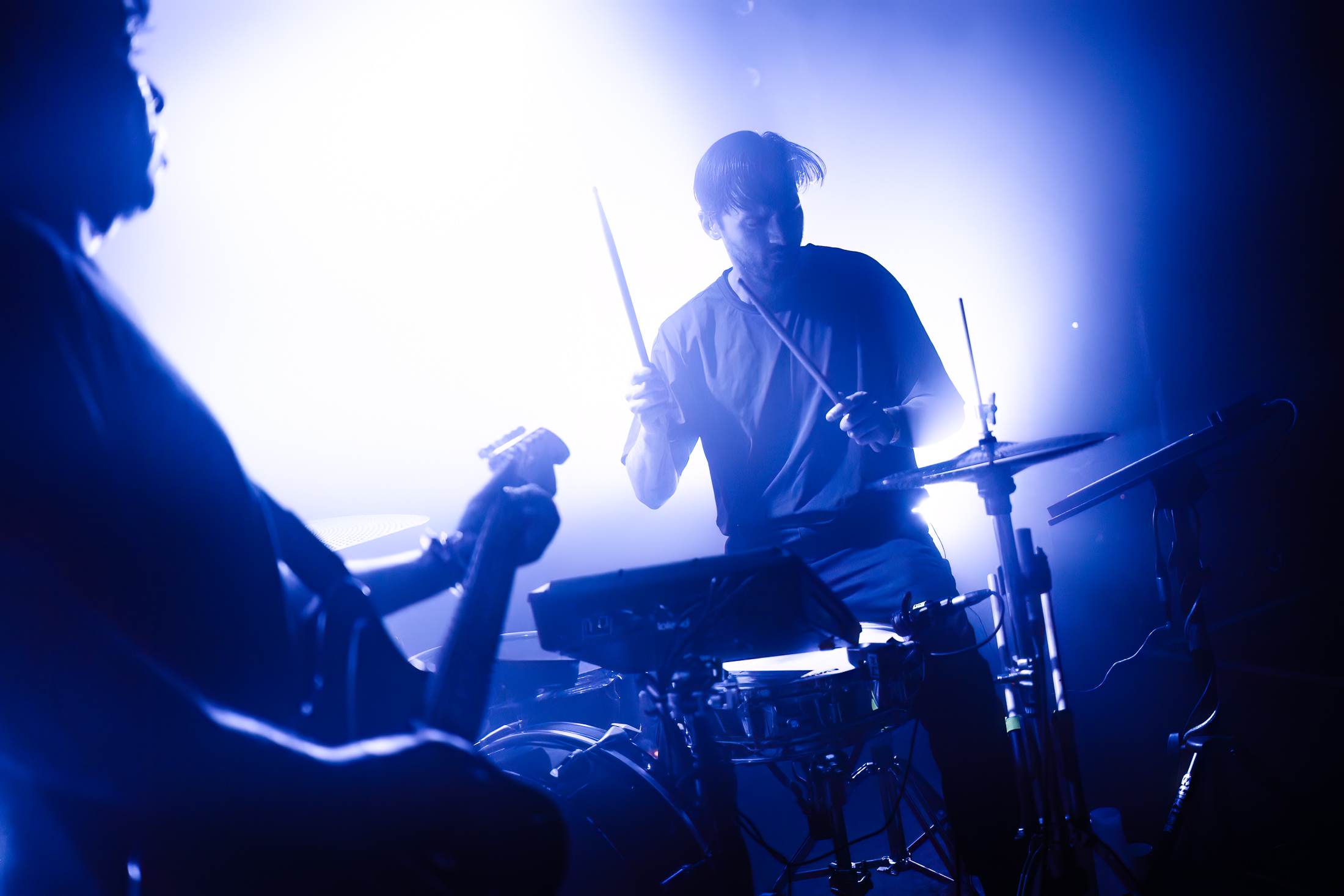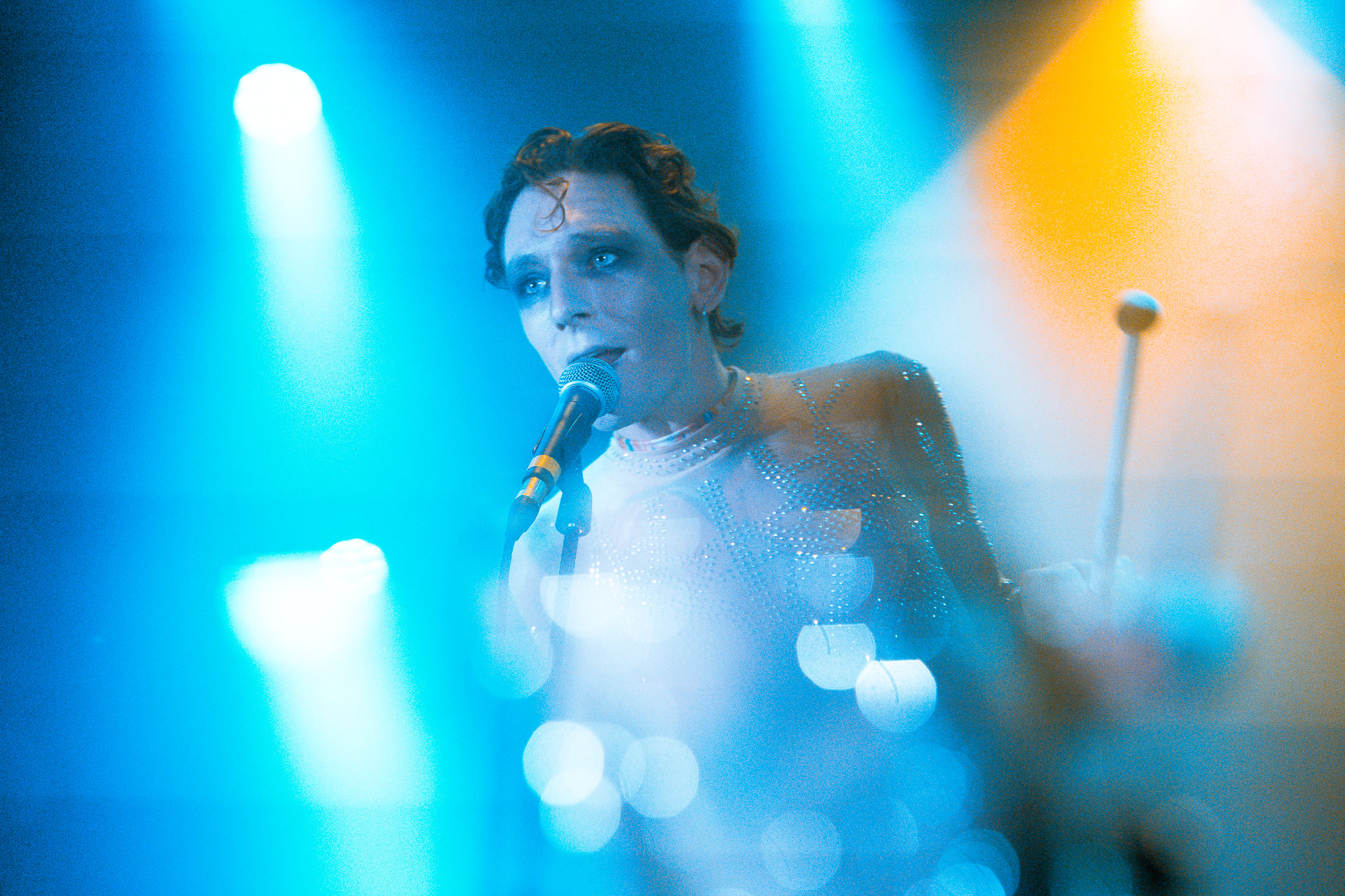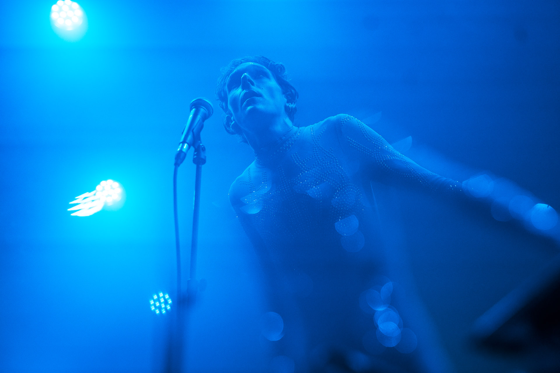 Jonglant entre claviers et percussions, il a captivé la foule via une voix puissante et inattendue. Peu couvert avec son body ultra moulant démontrant un physique des plus skinny, il est difficile de ne pas penser à Bowie période Ziggy Stardust à la fois par l’apparence mais aussi par un univers commun en termes d’esthétique visuel et d’équilibrisme musical.