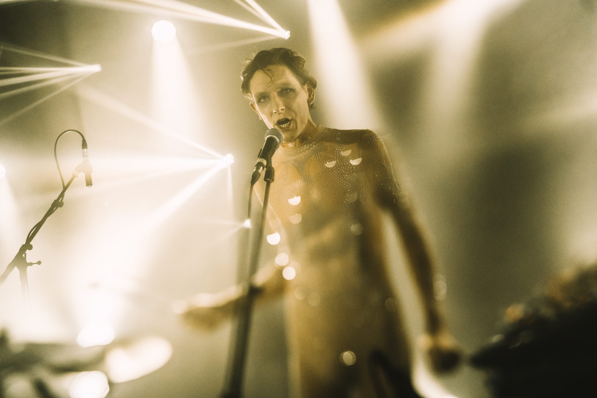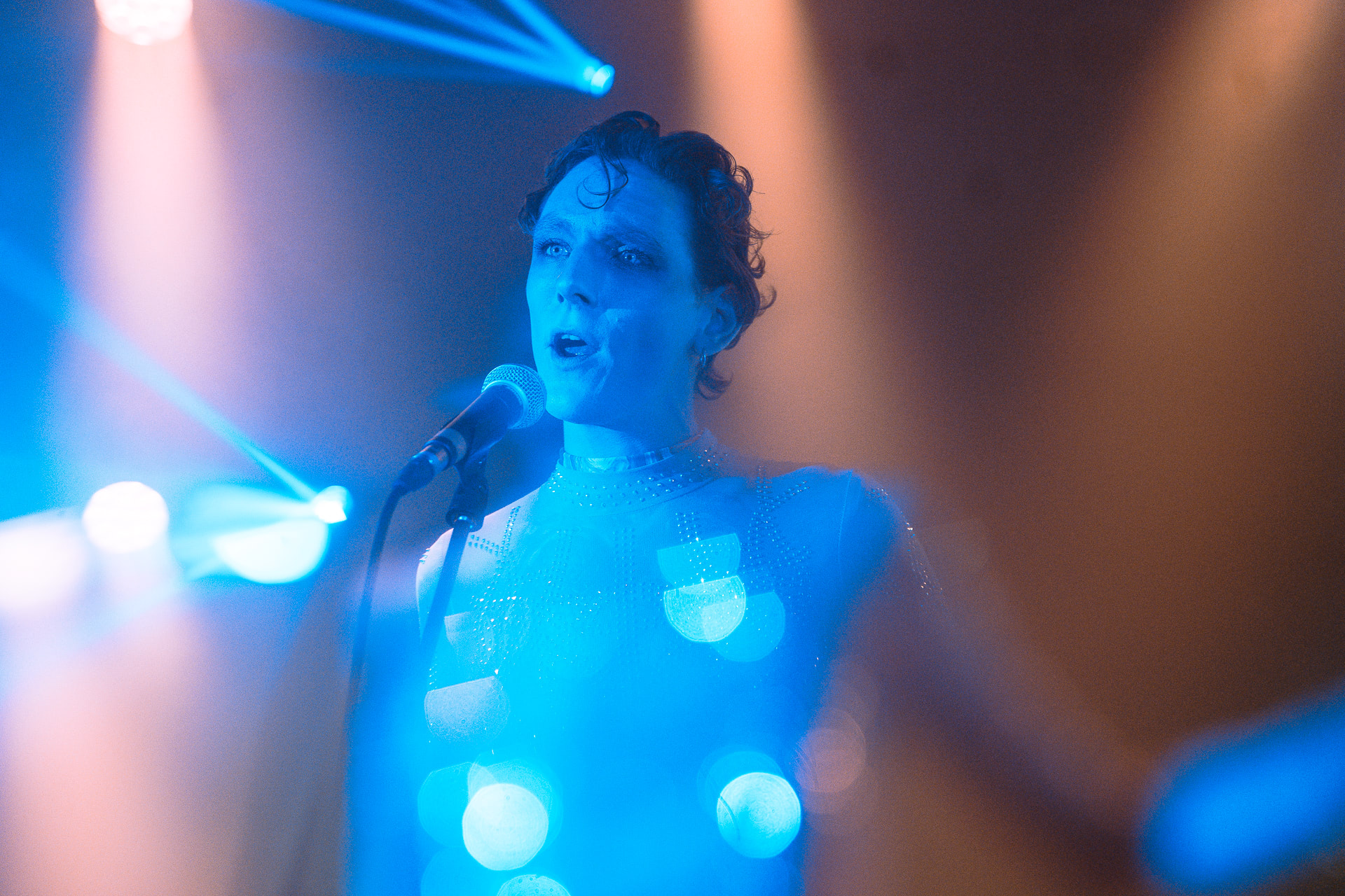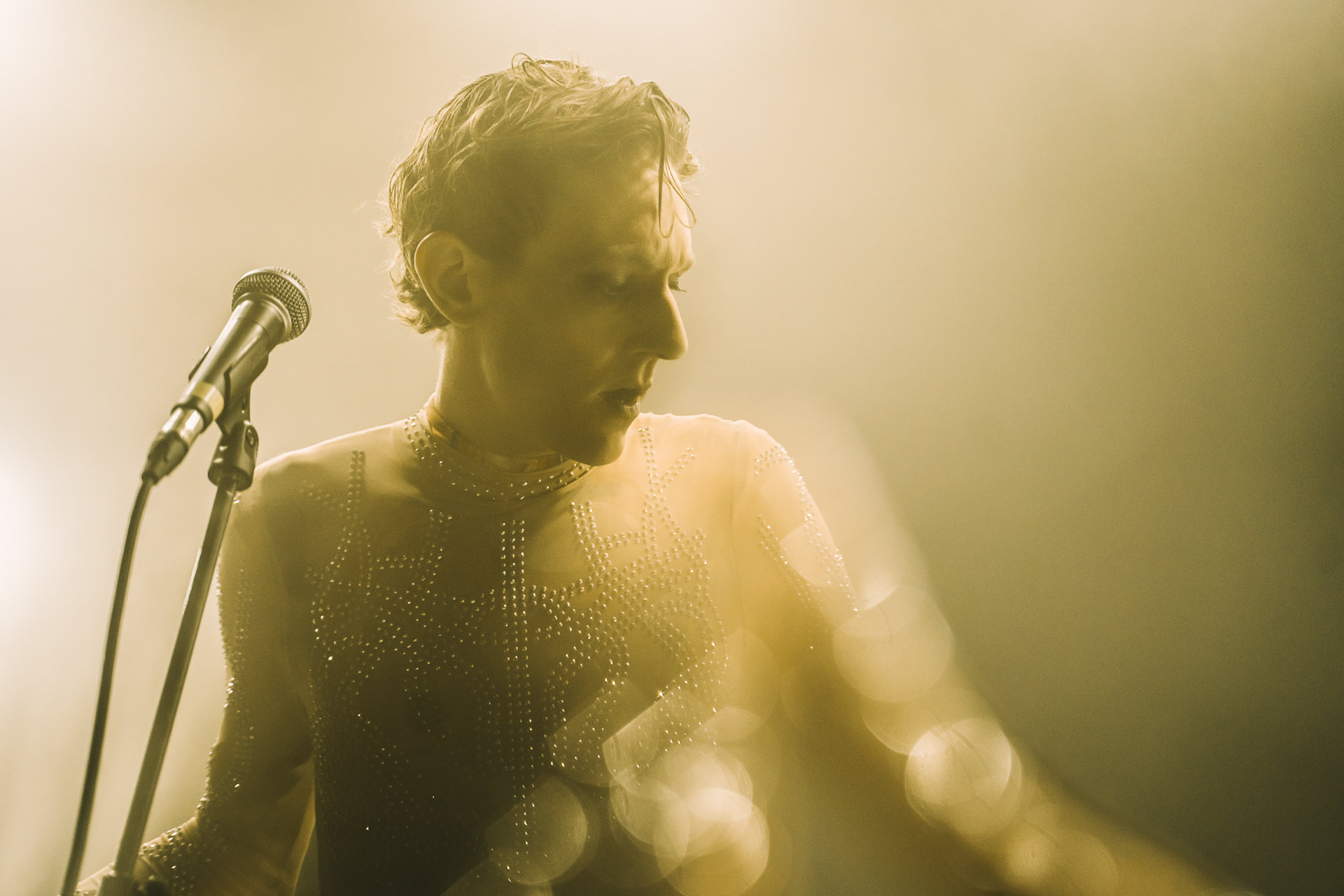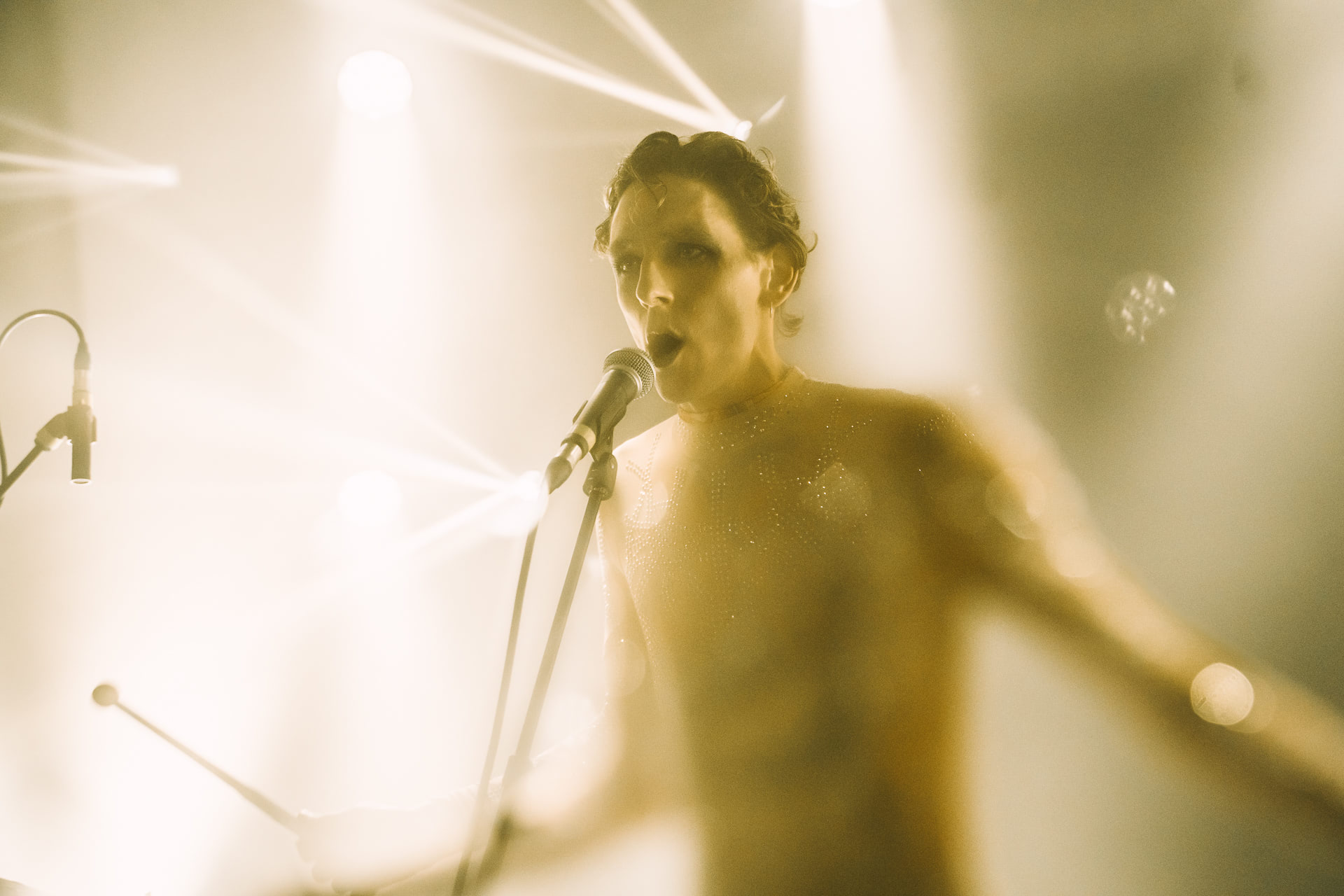 Jonglant entre claviers et percussions, il a captivé la foule via une voix puissante et inattendue. Peu couvert avec son body ultra moulant démontrant un physique des plus skinny, il est difficile de ne pas penser à Bowie période Ziggy Stardust à la fois par l’apparence mais aussi par un univers commun en termes d’esthétique visuel et d’équilibrisme musical.
