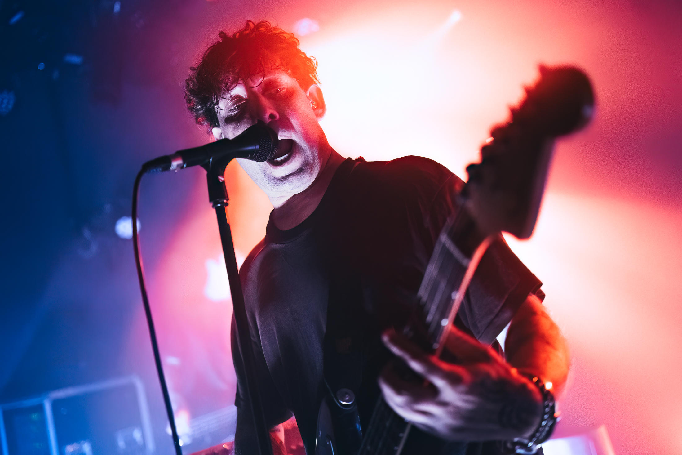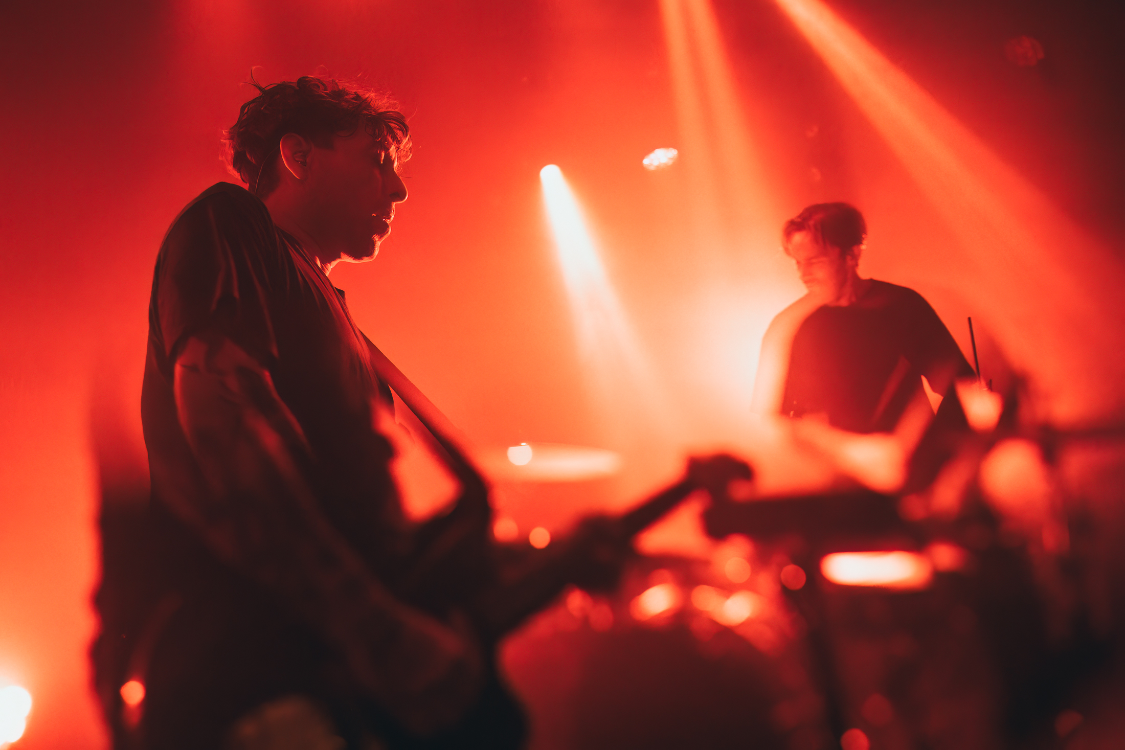 Un bassiste discret mais redoutable et un batteur à la frappe sèche et millimétrée, présent en live depuis 8 ans accompagnent remarquablement la tête et les jambes du groupe. Un supplément d’âme attendue sur scène qui décuple le coffre des compositions, bien aidée aussi par la générosité du chanteur très à l’aise aussi lorsqu’il faut donner plus de voix sur les titres plus mélodieux comme ‘Become The Lies‘. On pourrait presque reprocher au public de ne pas rendre les coups donnés avec une tendance à rester trop statique. Mais sur un style de musique très émo/cold wave, il n’y a rien d’étonnant à ce que les choses se passent plus à l’intérieur qu’à l’extérieur.