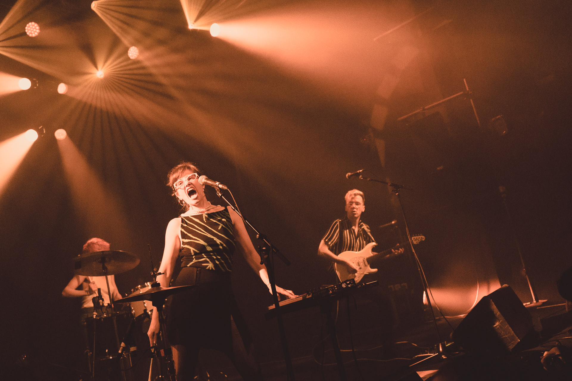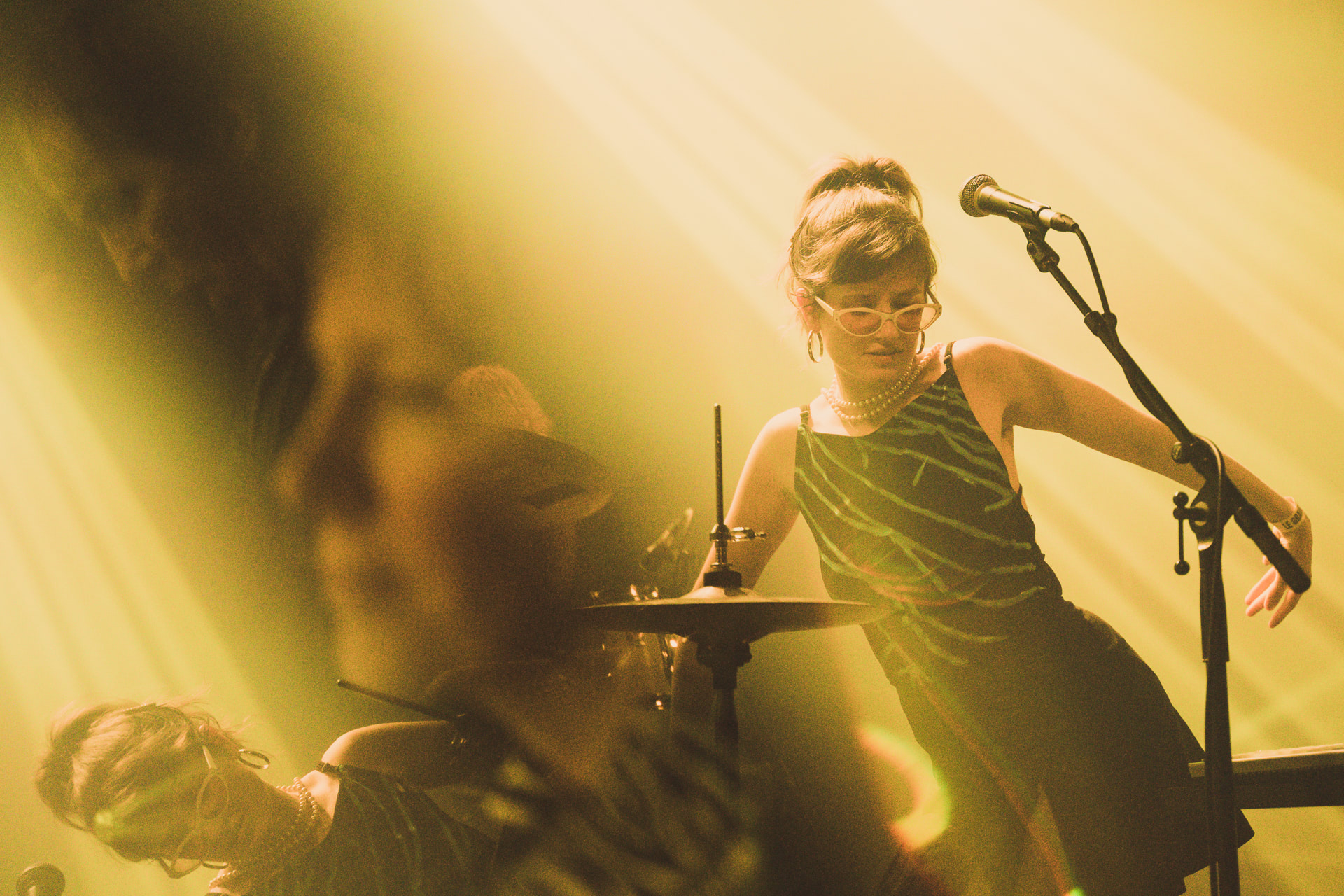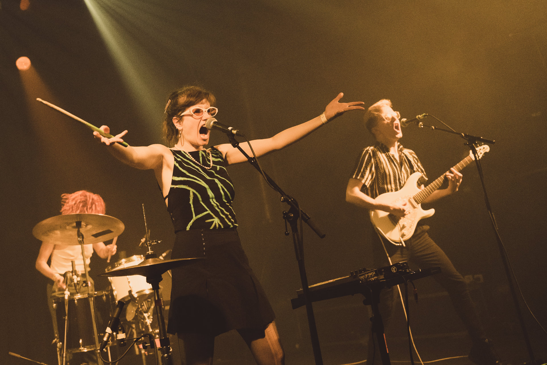 Très rapidement, on comprend quels groupe ne s’est pas coltiné plusieurs fuseaux horaires et le COVID (qui cause tant de tort aux tournées actuelles) pour se ménager. Nikki qui est au chant et batterie vient compléter de son chant la guitare débridée de Ben, couple en scène comme à la ville, les deux têtes pensantes ne s’accaparent pas seuls la lumière du show. Comment ne pas être épatée par l’énergie de Tai à la batterie, celle-ci passant les 80 minutes de concert, debout à frapper sa batterie tout en sautant dans tous les sens. Cette énergie, on en avait besoin et ce ne sont pas Adam et Dan qui en feront moins tant ils semblent se démener sur la basse et la guitare.