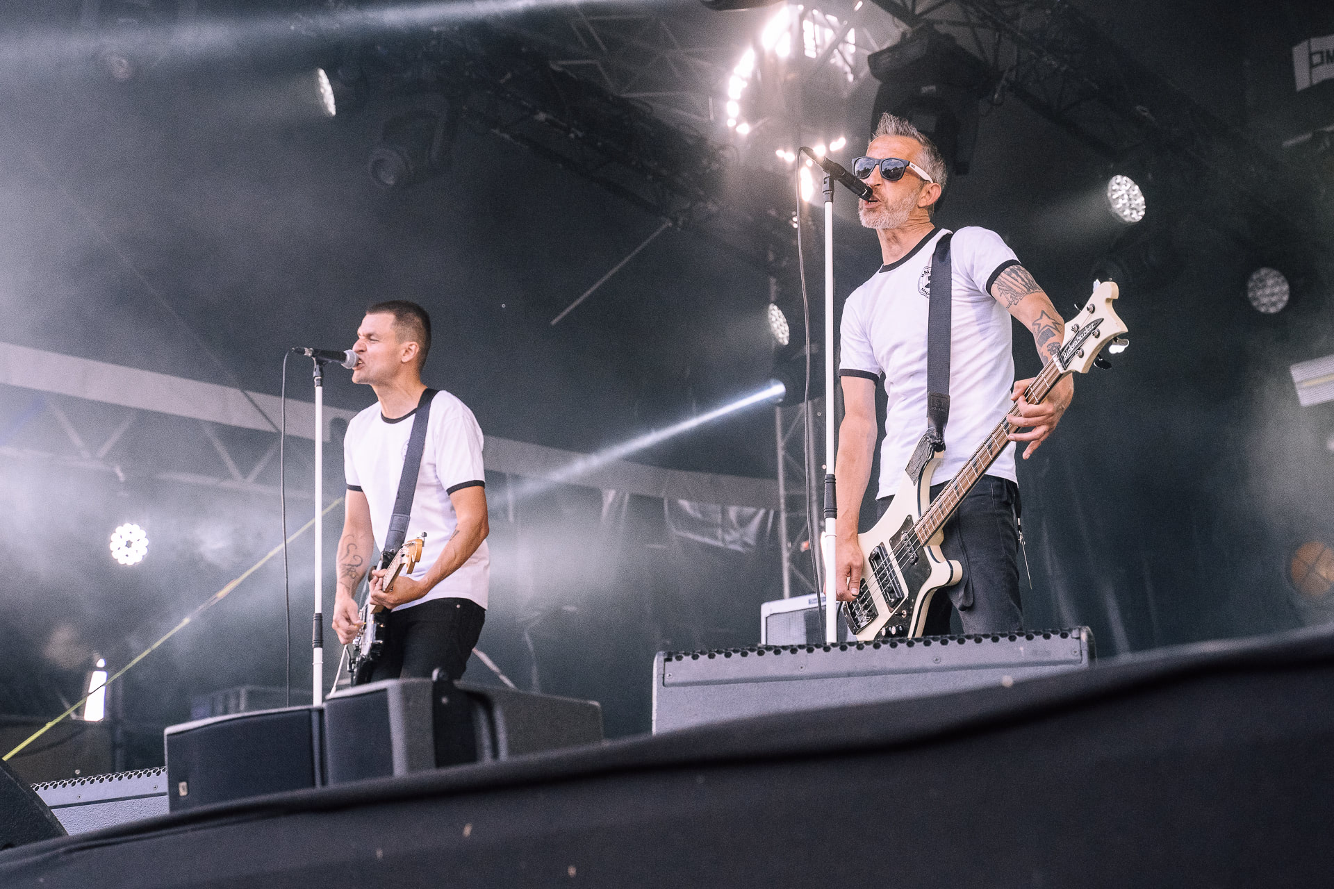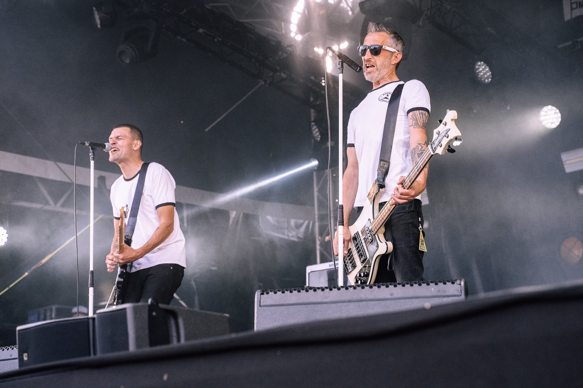 Alors, évacuons la chose, clairement, on est ultra déçus de ne pas avoir eu droit aux Pixies, tombés sur le champ d’honneur du COVID. De fait, LiveNation est allé chercher, dans les Landres, nos deux rocker farmers et qui ont la modestie de clamer « on ne remplace pas les Pixies, on ne peut QUE jouer à la place des Pixies ». Un duo bien français qui chante en anglais, et qui aura réussi à relever ce sacré défi en enflammant la scène avec une musique qui se veut authentique. En effet, comme l’annonce le chanteur, Laurent Lacrouts, accompagné à la batterie par son compère Mathieu Jourdain, rien n’est pré-enregistré ou électronique. Juste de la musique pure jouée en live !