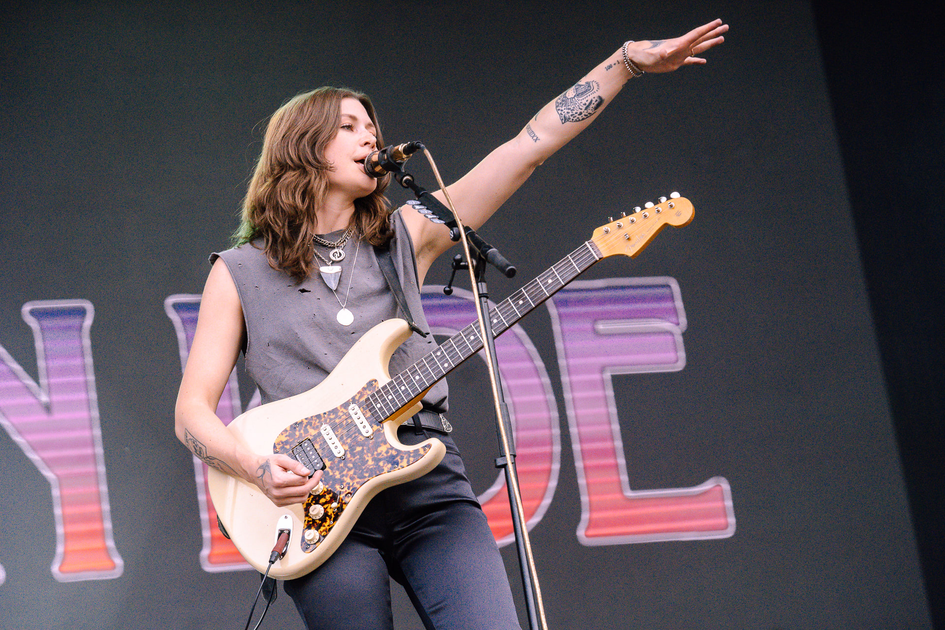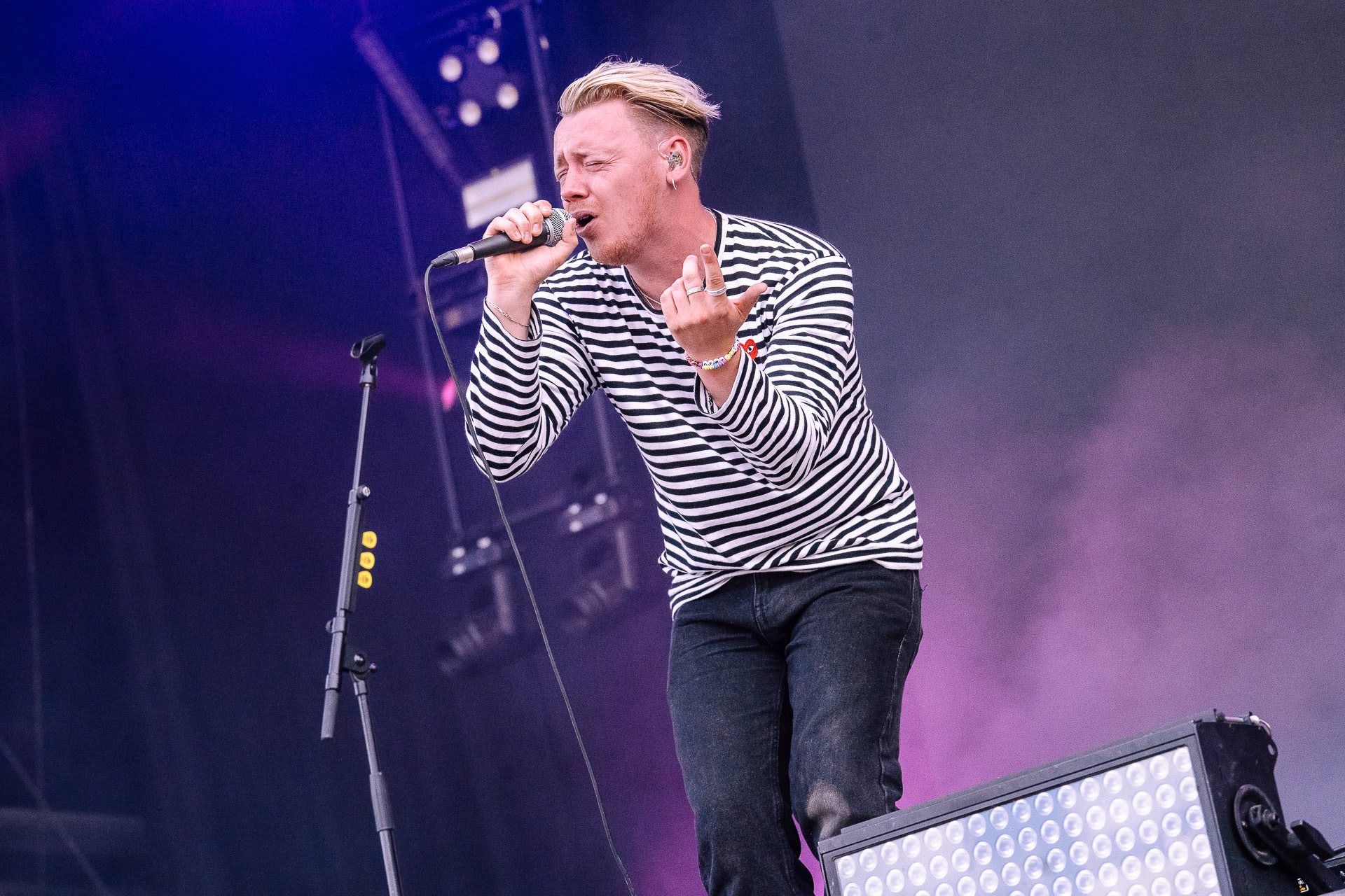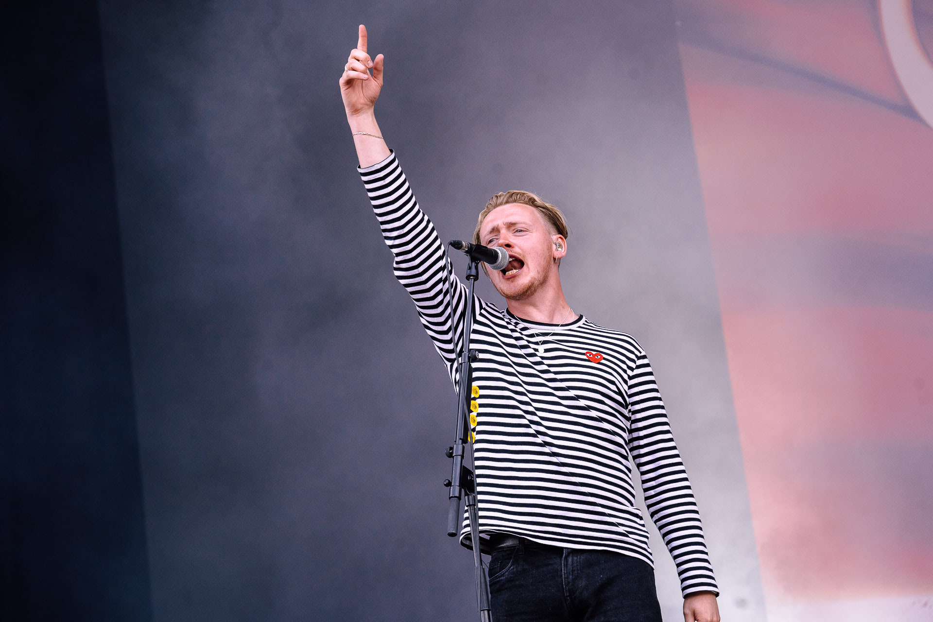 Jeune prodige originaire de la banlieue de Londres, le chanteur et guitariste Declan McKenna s’impose, avec le reste de son groupe, par ses mélodies originales, entraînantes et variées ainsi que ses textes engagés. Cet artiste talentueux nous joue des chansons écrites dès l’âge de 15 ans. Au même âge, nous, on apprenait seulement à cuire des pâtes. Il fait le show et l’unanimité dans les cœurs du public arrageois. Bravo à lui même si l’artiste est clairement le couteau suisse de festival. Les mélodies sont maîtrisées, le sens du spectacle aussi, on comprend alors mieux pourquoi l’artiste enchaine les tournées complètes dans les salles de concerts.