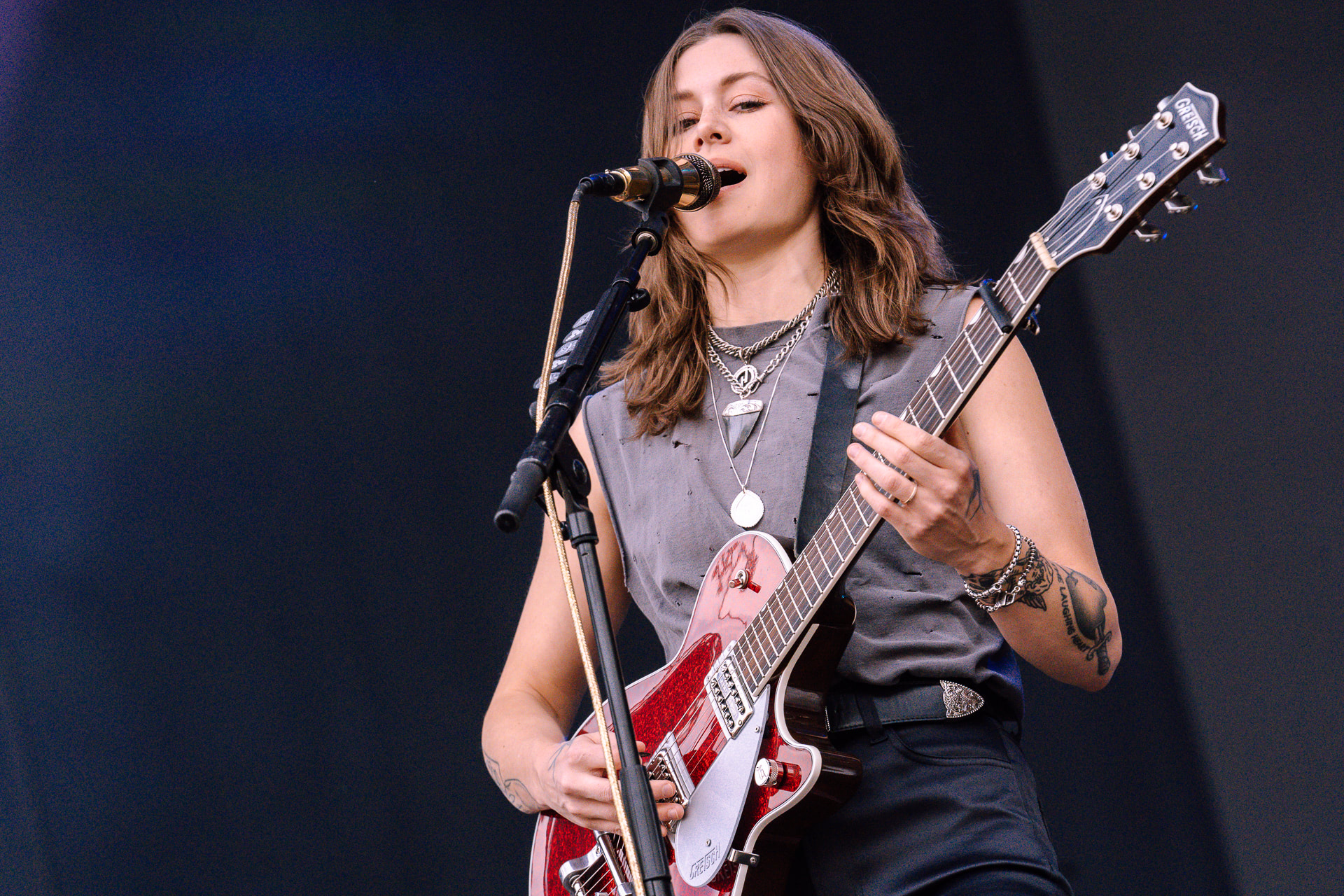 Deux sisters du Sud des États-Unis, bien décidées à faire bouger le public du Main Square avec leur rythmes sauce barbecue ribs. A la croisée du rock, du blues et du folk, les guitares se déchaînent pour faire hurler la foule transcendée par cette musique typique de Nashville. On se croirait effectivement en plein cœur du Tennessee et ça fait du bien de voyager, guidé(e)s par ces deux nanas qui en ont dans le bide. Quelle énergie ! Toutes les générations et tous les types de publics semblent séduits et montrent leur totale adhésion en tapant à l’unisson dans leurs mains. Même les mecs de la sécurité ne résistent pas et s’autorisent à secouer légèrement la tête tout en tapotant le rythme du bout des doigts. Des voix envoûtantes, du lap steel debout (coucou Ben Harper, tu peux ranger ta chaise) pour une musique féminine puissante qui aura conquis la Green Room ! Merci de nous avoir embarqués ! Une belle surprise que l’on attendait clairement pas.