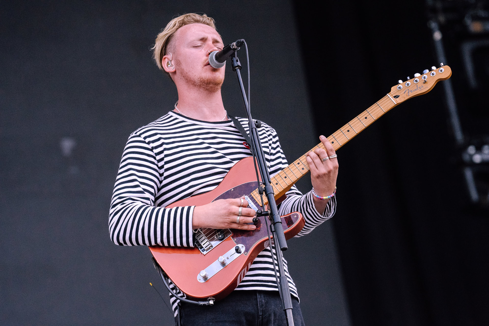 Groupe d’English guys dans le vent qui nous lance leur indie rock dans les oreilles. Indie rock, chez Visual, forcément, on s’est imaginés que ça allait potentiellement nous parler maaaaaais en fait, on définira cela comme une musique sympa à écouter si l’on veut être replongés dans nos chambres d’ado à l’époque où l’on se découvrait une tendance à kiffer du bon son rock. Le chanteur, Tommy (et non pas celui des Peaky fuck*** Blinders, l’accent est bien différent) nous partage le fait que c’est leur premier festival européen et ils ont tous l’air bien contents d’être là. Tommy donne tout, accompagné de ses trois acolytes musiciens mais force aura été de constater que le son est assez random et aura surtout suscité les cris d’un public fort jeune.
