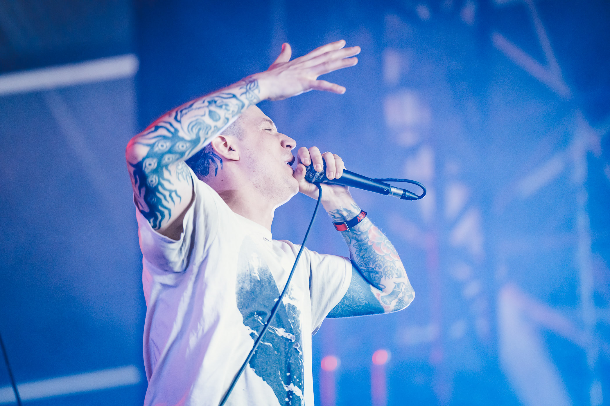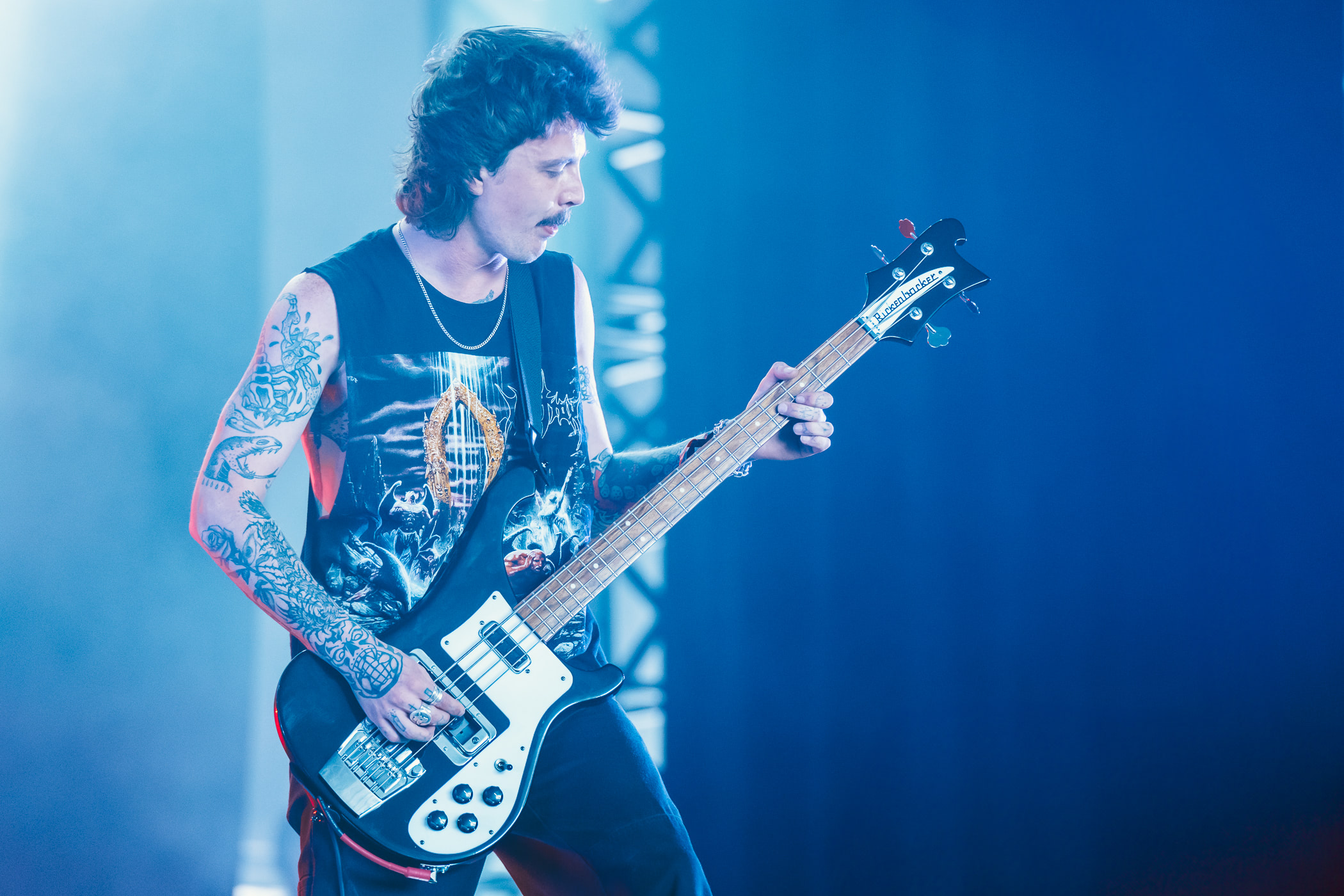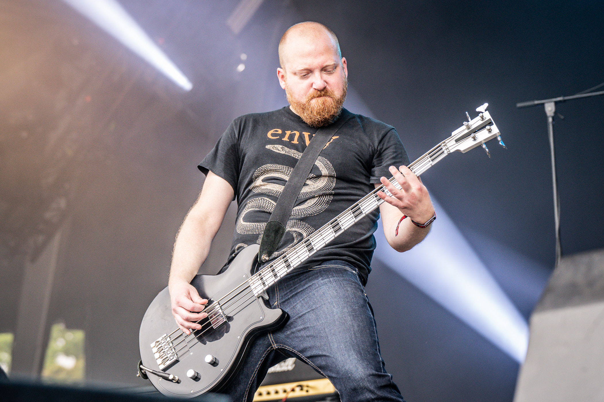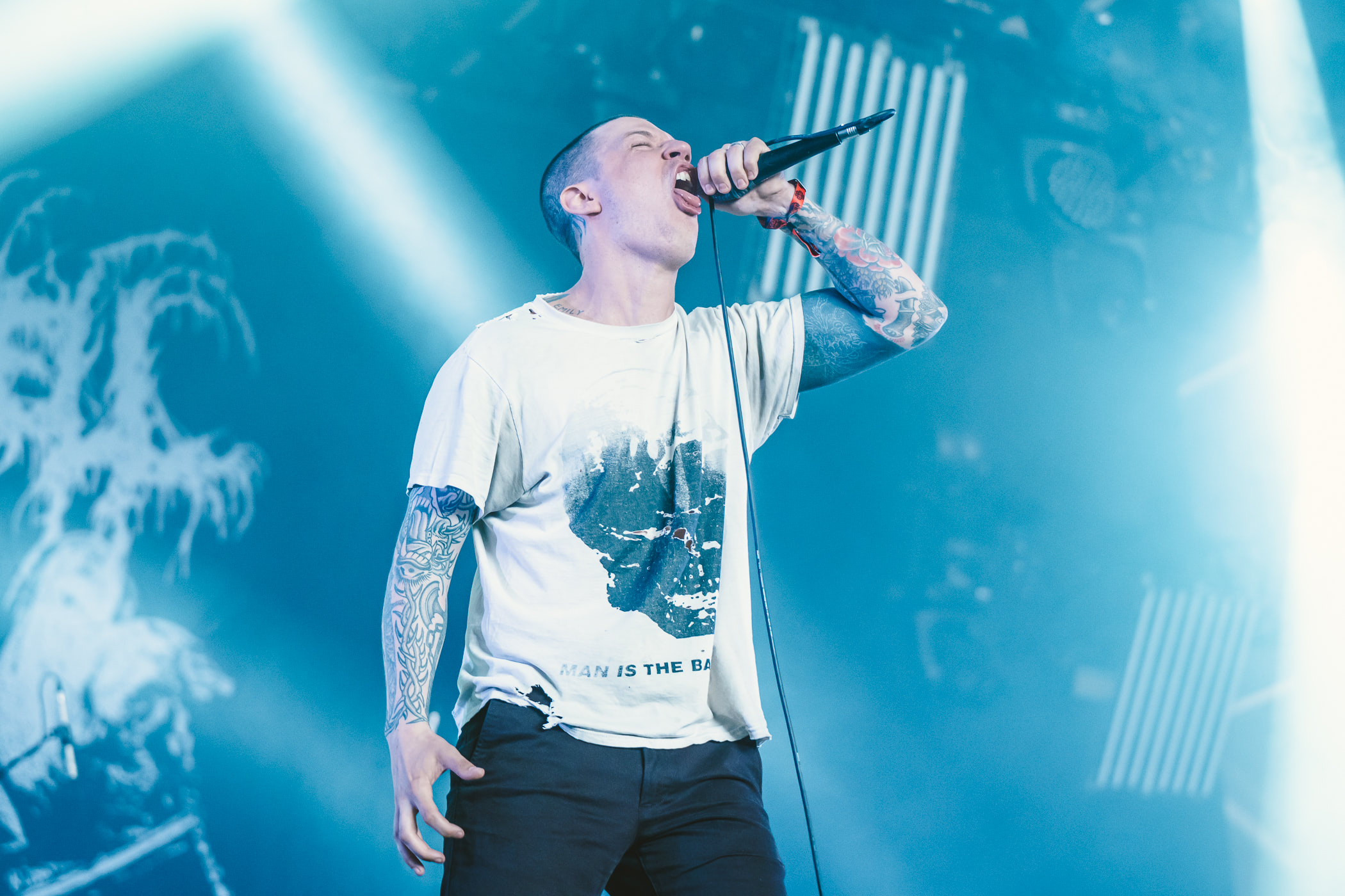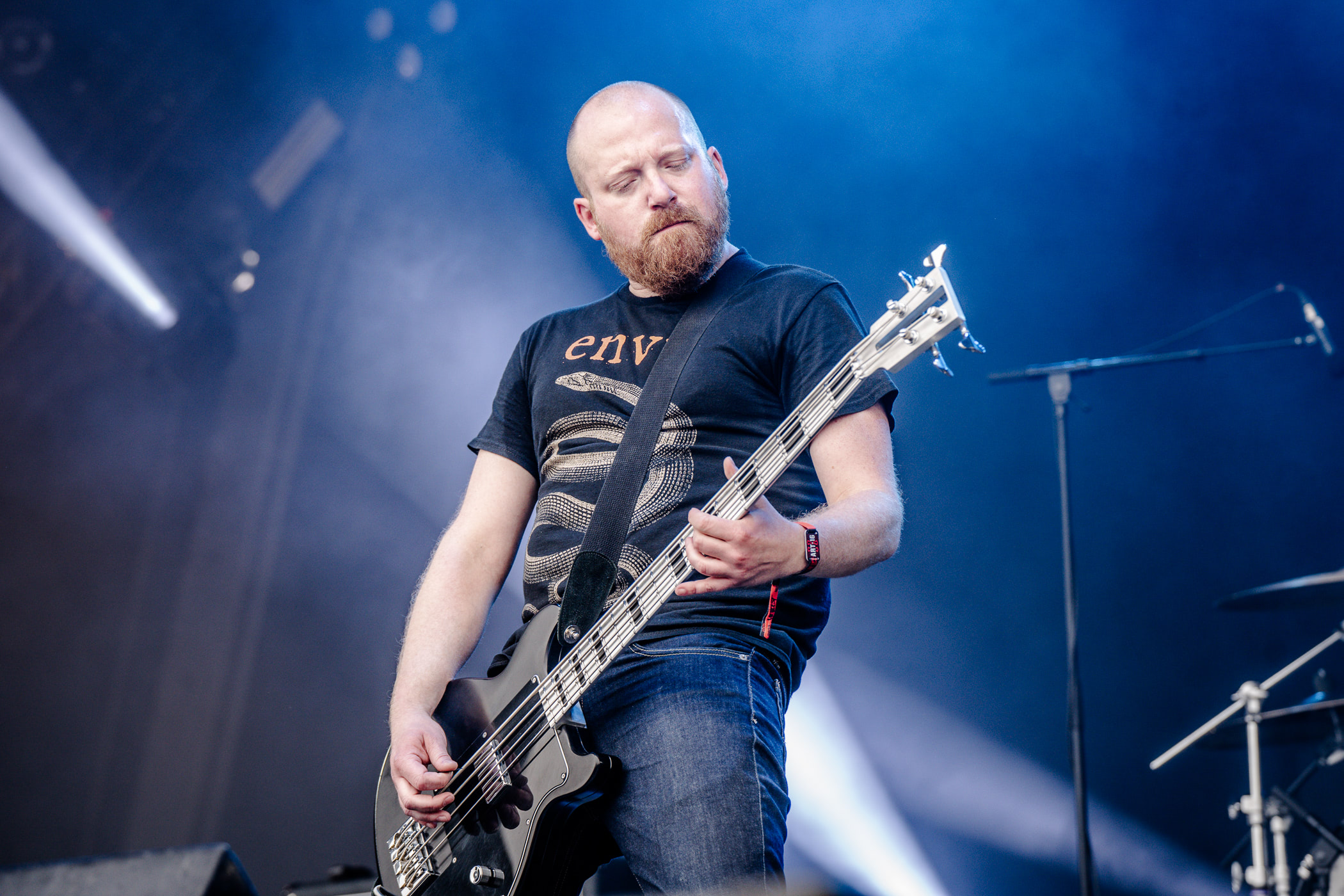 Petite mise en jambe matinale avec le retour d’Escape The Fate. N’ayant pas connu ce délire babylissé à l’époque, je n’ai même pas l’excuse de la nostalgie. D’un autre côté les premiers fans ne sont peut-être pas là non-plus vu que du line up original la formation ne conserve que le batteur. En tout cas, les plus heureux étaient certainement sur scène ce matin. Le chanteur Craig Mabbitt, dont la qualité principale est de ne pas être Ronnie Radke, a sorti son plus beau t-shirt Elden Ring et déverse toute sa joie de vivre sur un public à peine consentant. Musicalement, absolument rien de plus ou de moins qu’il y a quinze ans mais on ne demandait pas autre chose. Puis le groupe lance son single de retour qui clame que « I h8 U more than I h8 myself » et les cheveux des dix premiers rangs se lissent instantanément. Passé le premier couplet, un flot continu d’eyeliner se met à suinter de leurs yeux. Les plus réticents s’enfuient aux toilettes pour se rincer le visage mais la majorité embrasse la vague emocorisante et répond par de multiples cœurs avec leurs doigts, dont les ongles sont désormais recouverts d’un vernis noir.